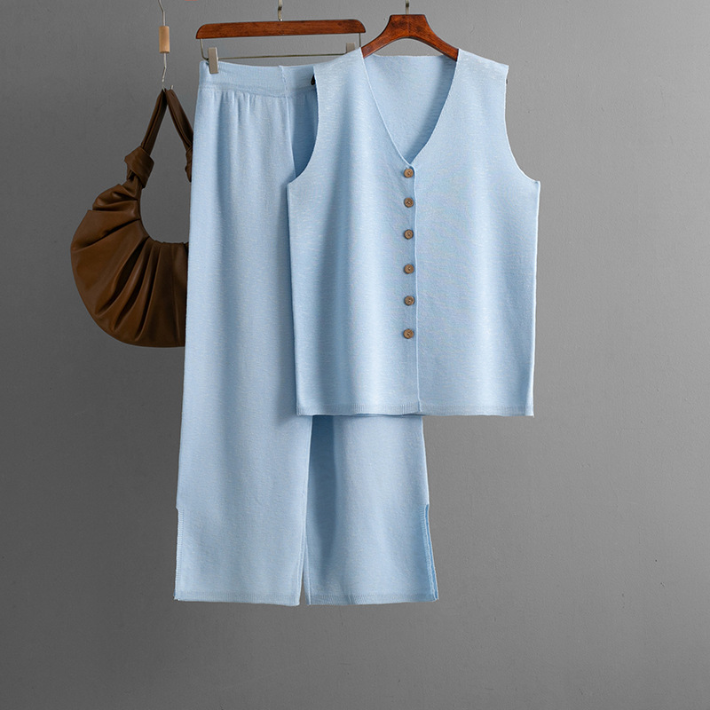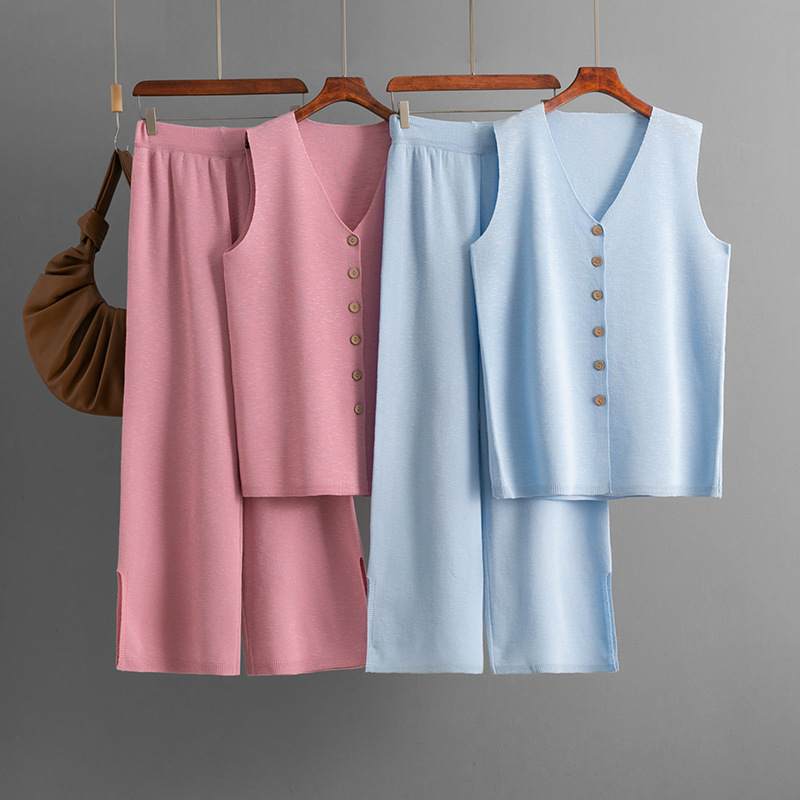 Solid Color Loose Casual Wide Leg Pants Two Piece Set for Women