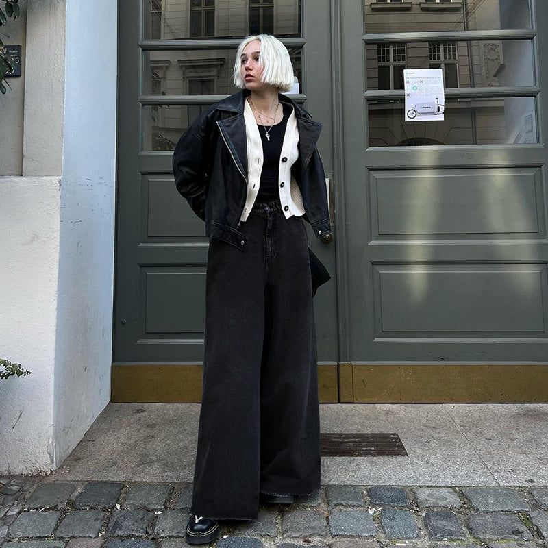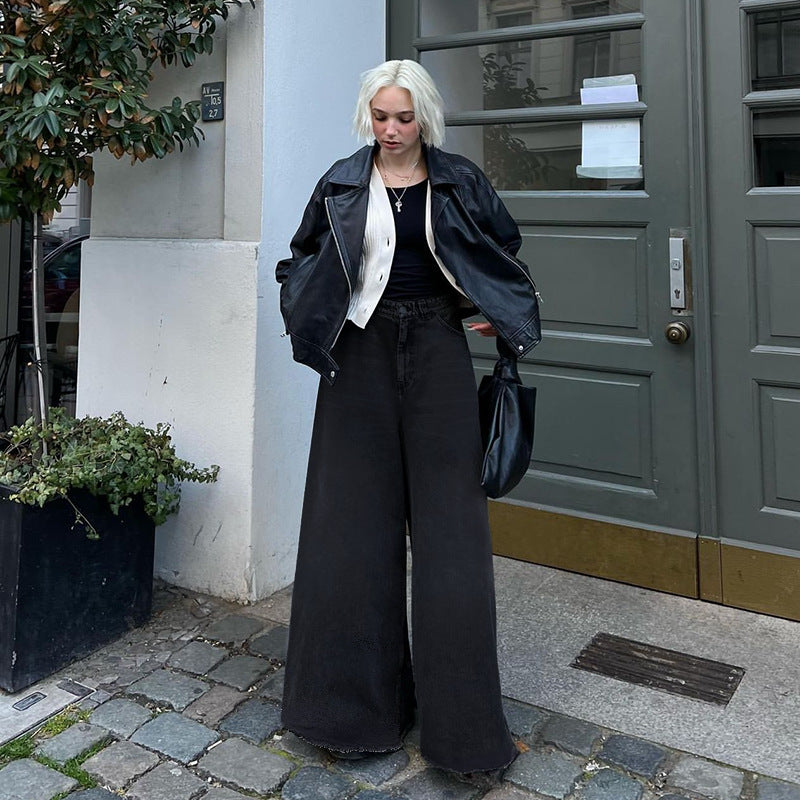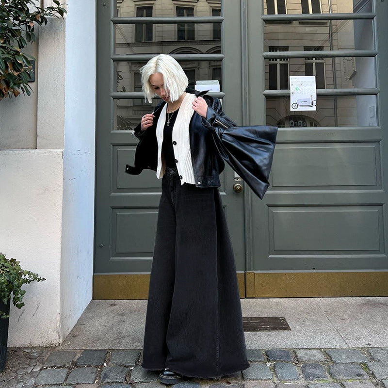 Spicy Jeans Frayed Mop Black Minority All Match Loose Street Bell Bottoms Slimming