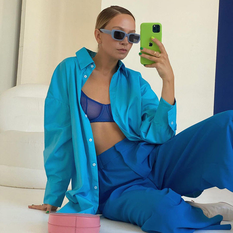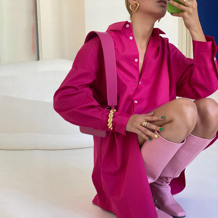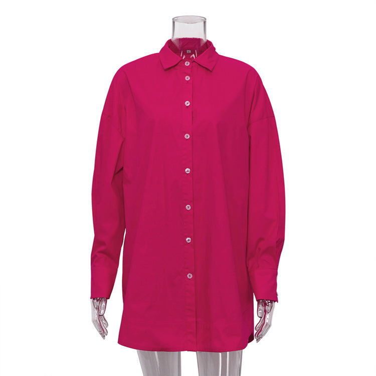 Spring Autumn Long Sleeve Office Cotton Solid Color Cardigan Soft Casual Shirt Women Mid-Length