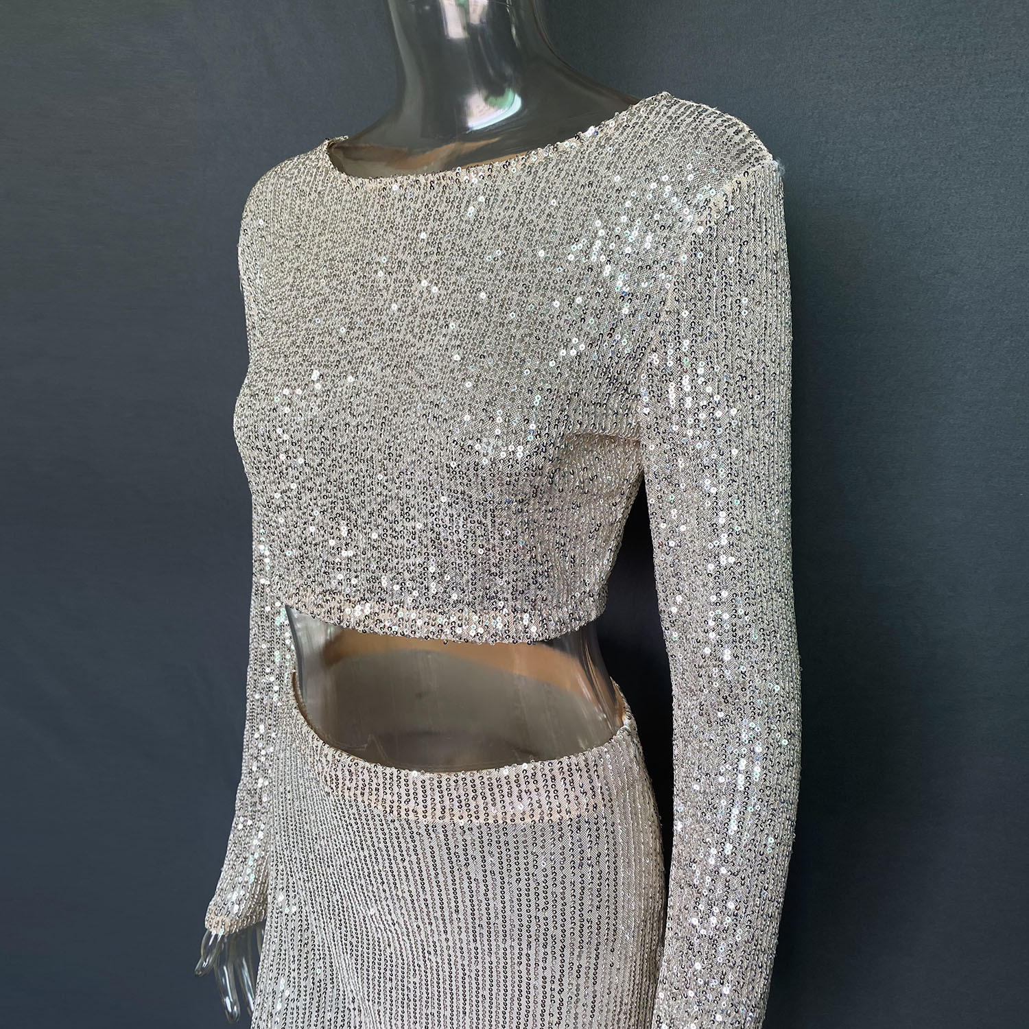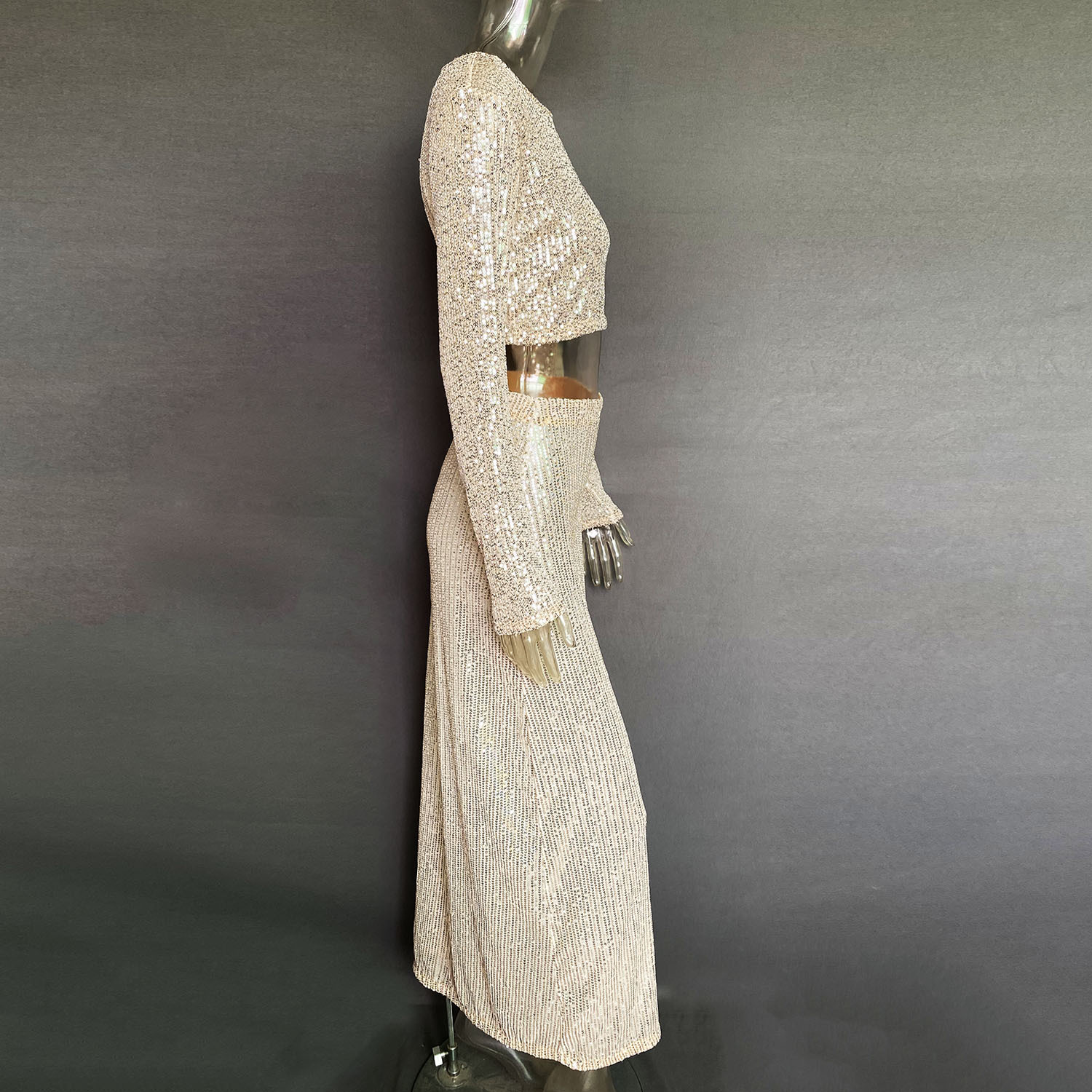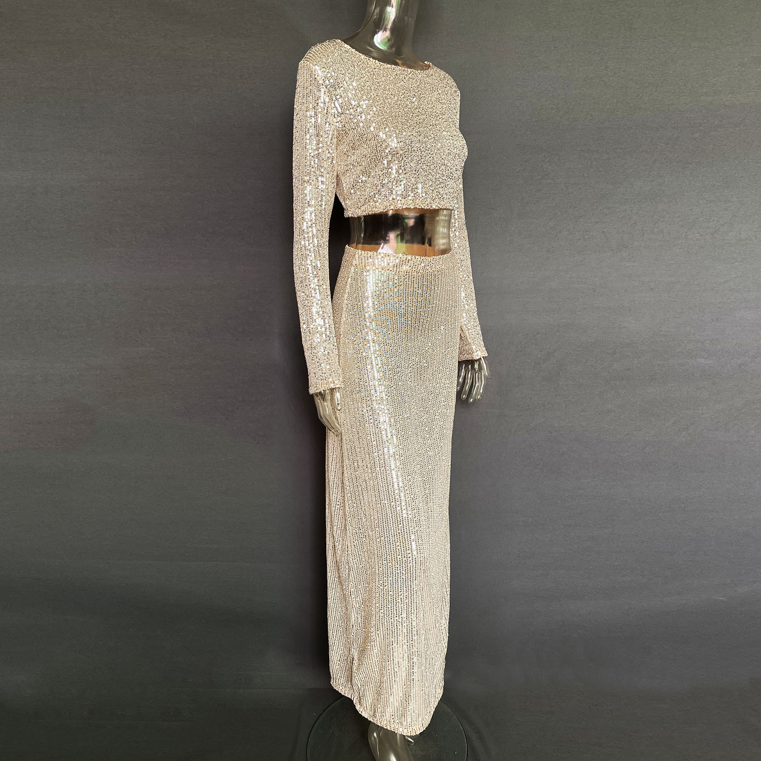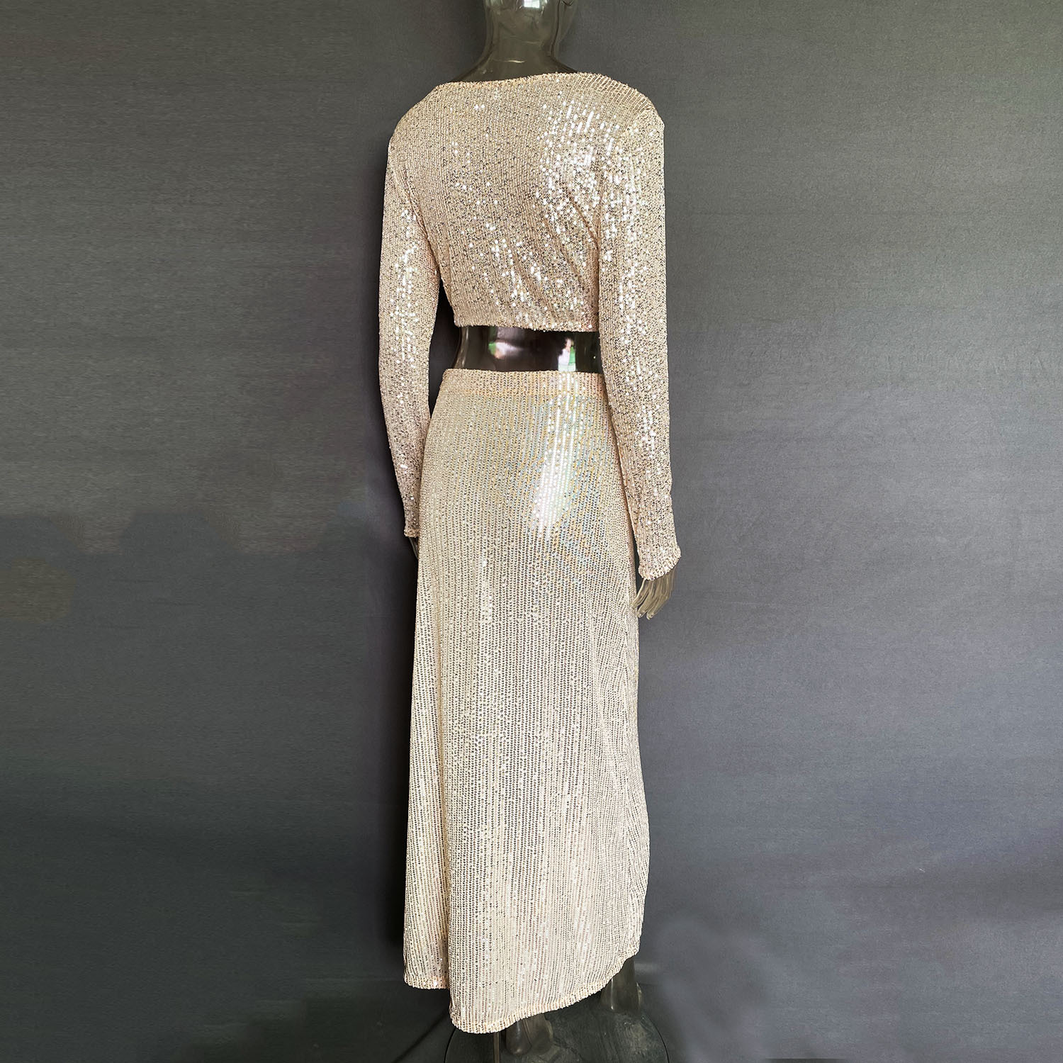 Spring Autumn Popular Women Long Sleeve Blouse Long Skirt Sequined Set
