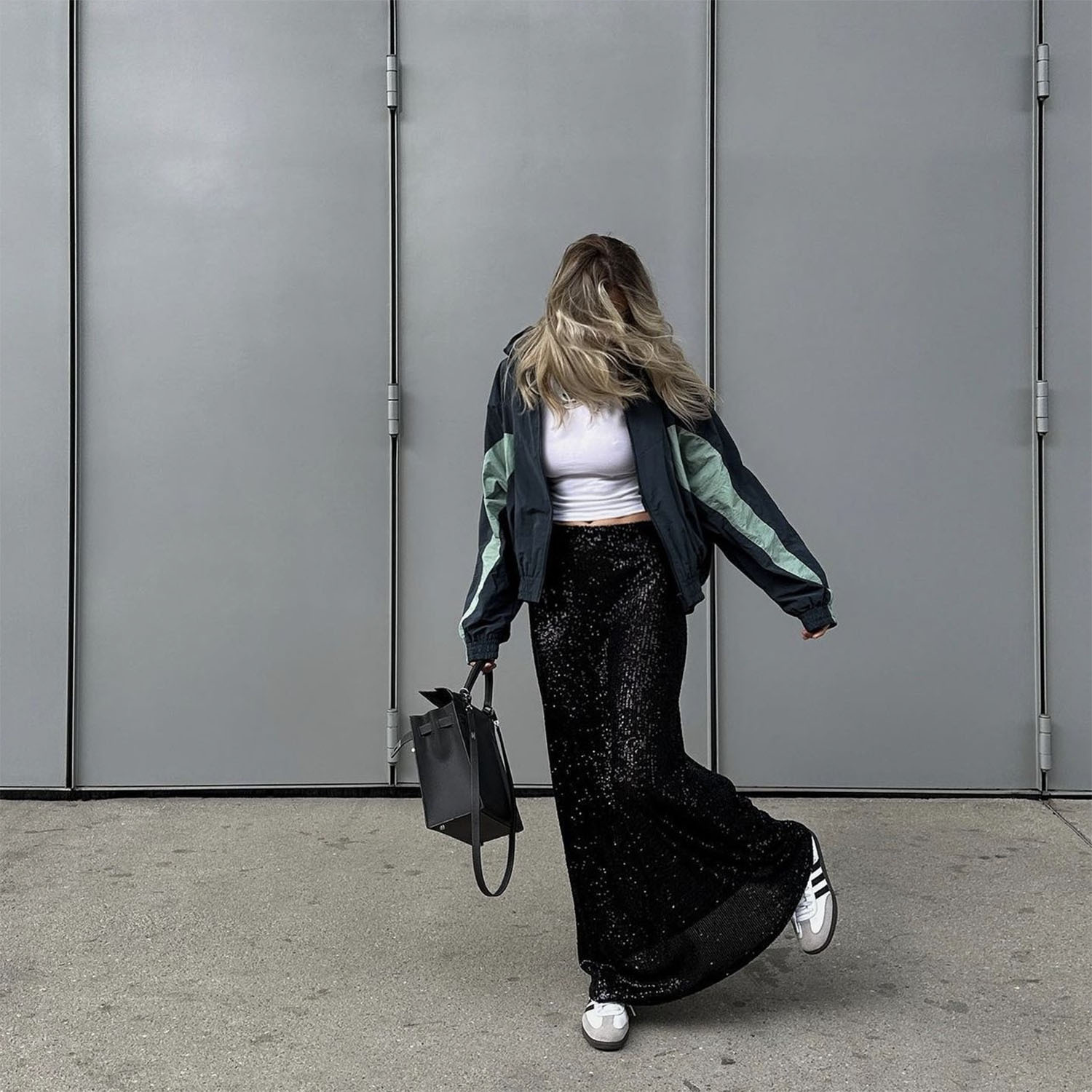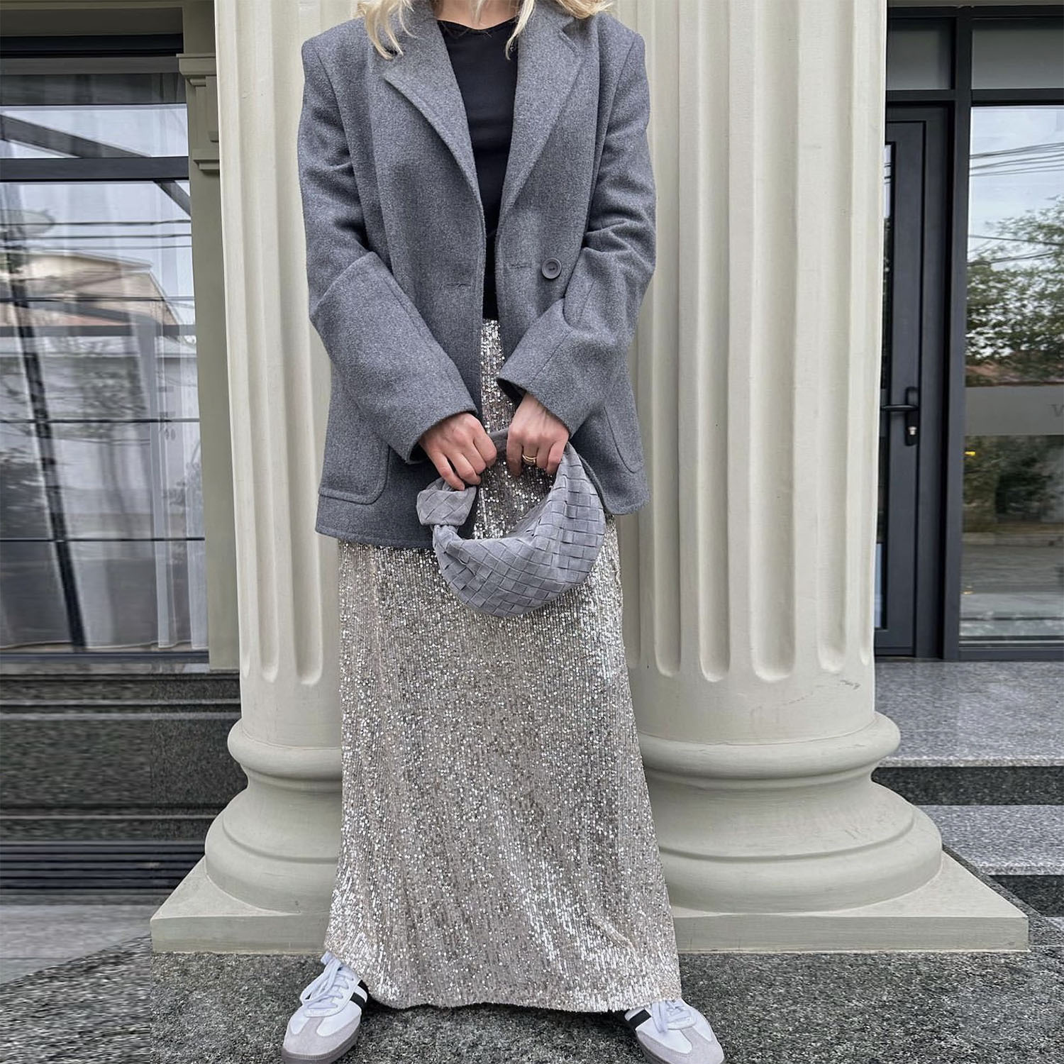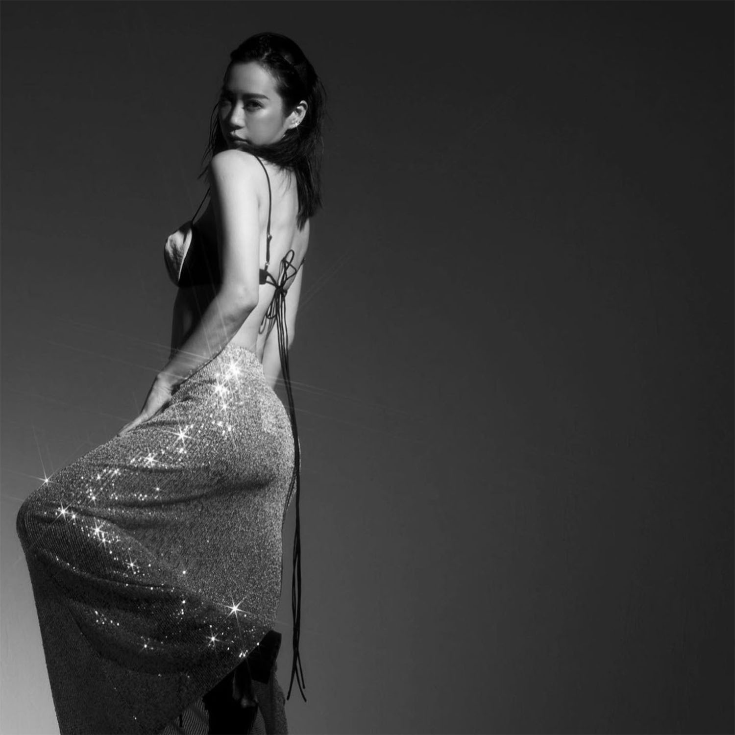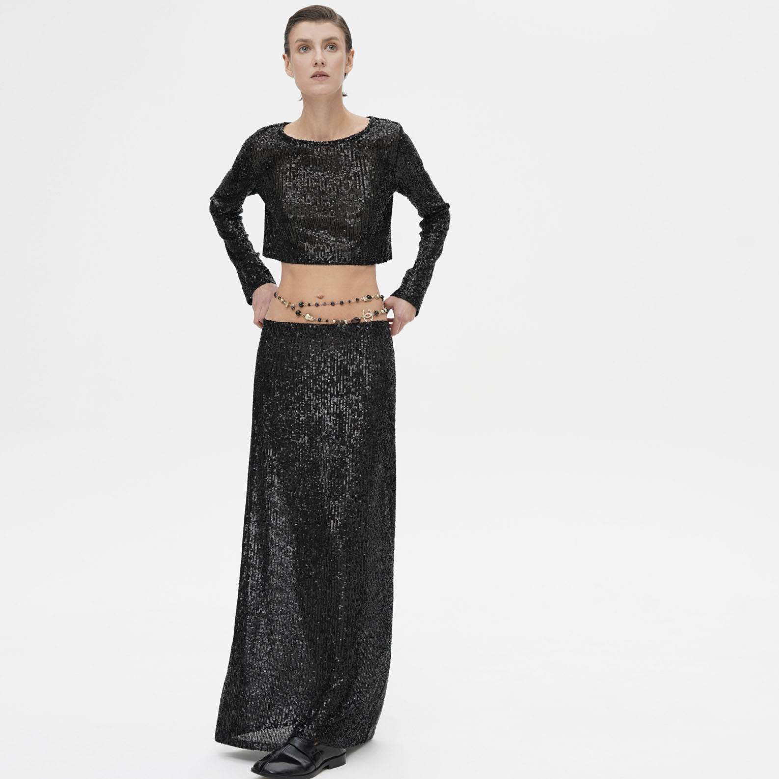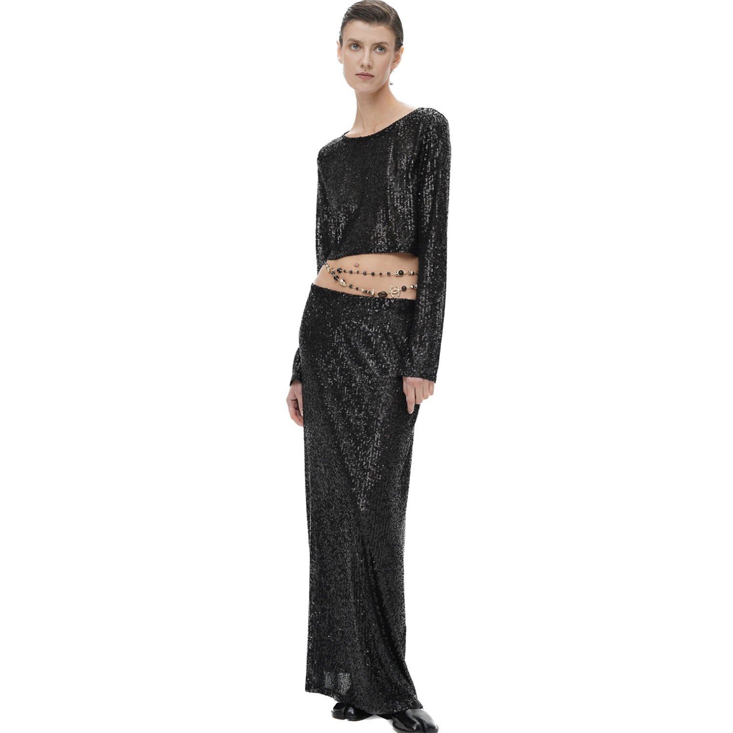 Spring Autumn Popular Women Long Sleeve Blouse Long Skirt Sequined Set