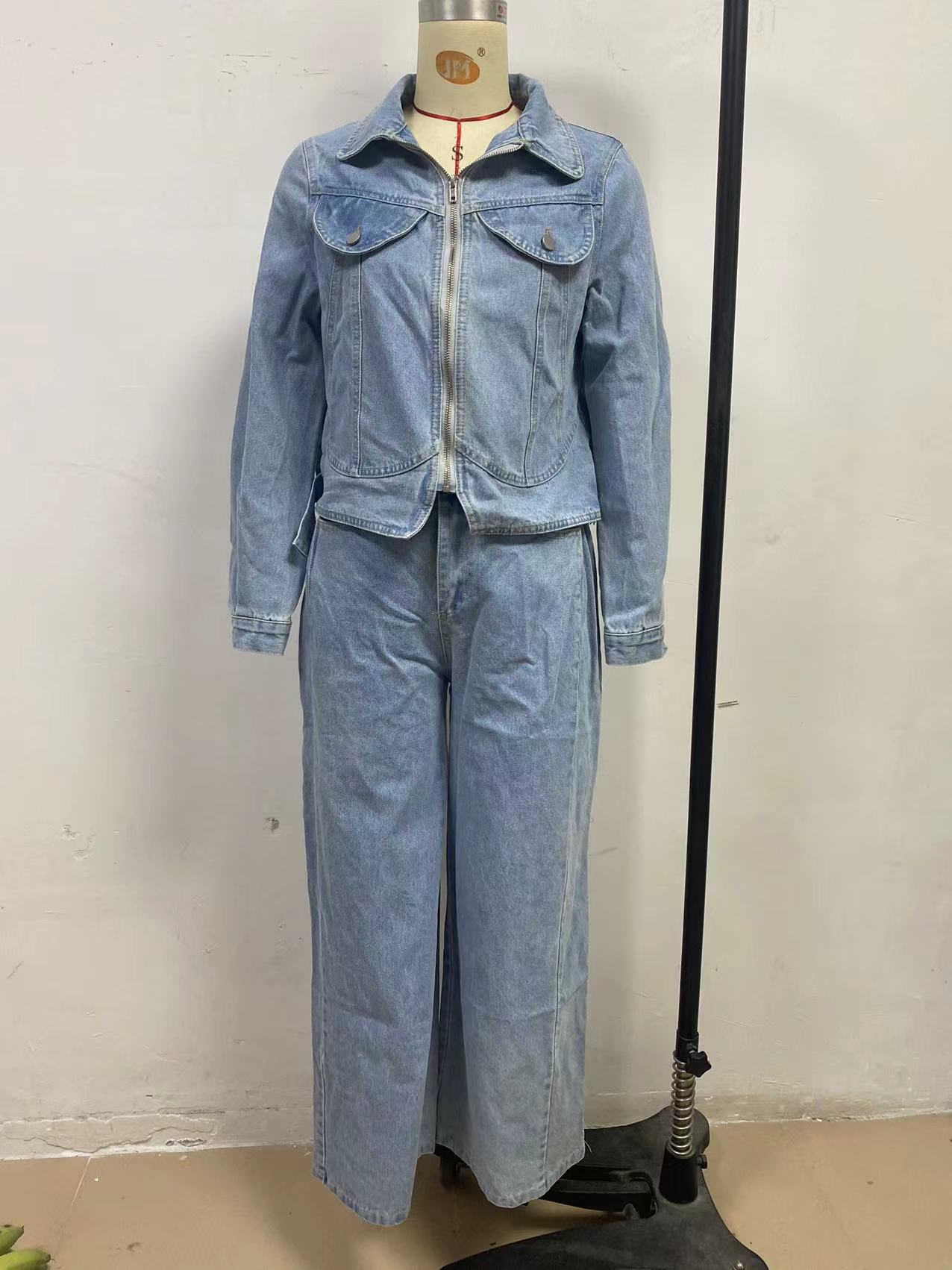 Spring Casual Loose Lady Denim Jacket Trousers Two Piece Sets