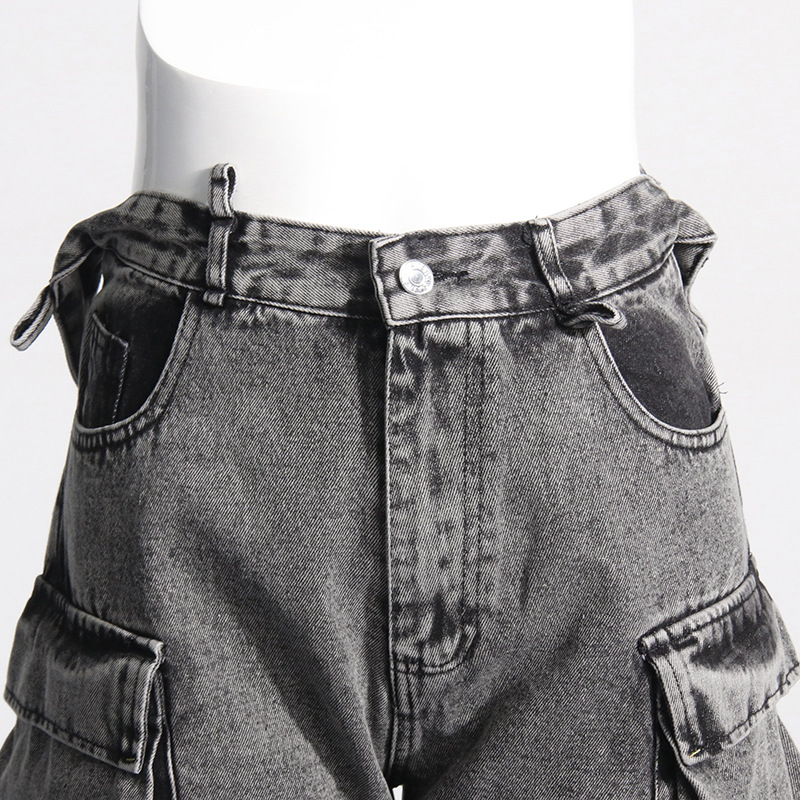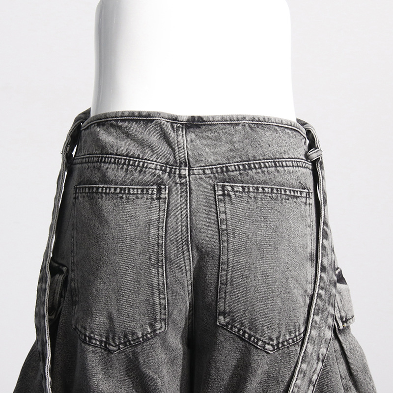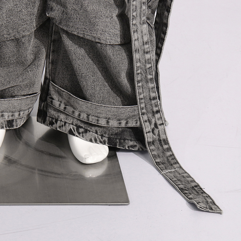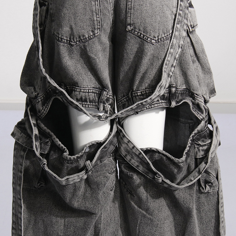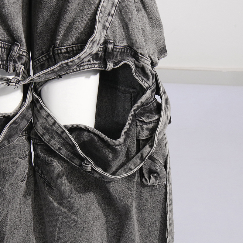 Spring Street Hipster Multi Pocket Decorative Ribbon Design Jeans Women Hollow Out Cutout Out Overalls