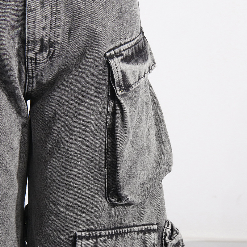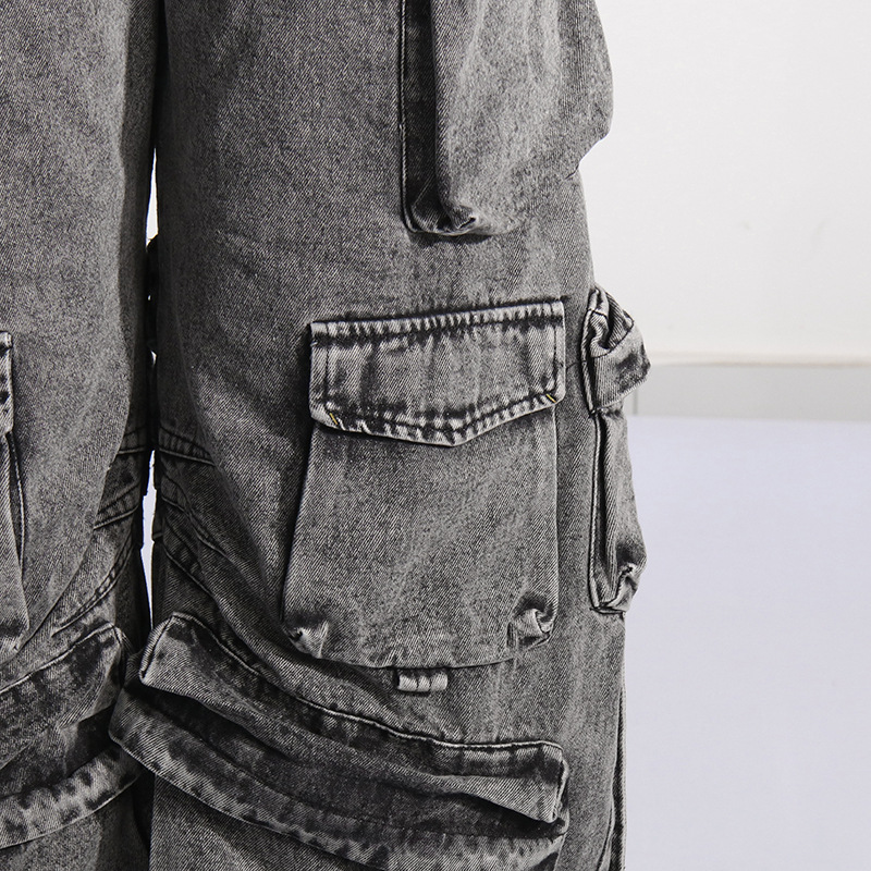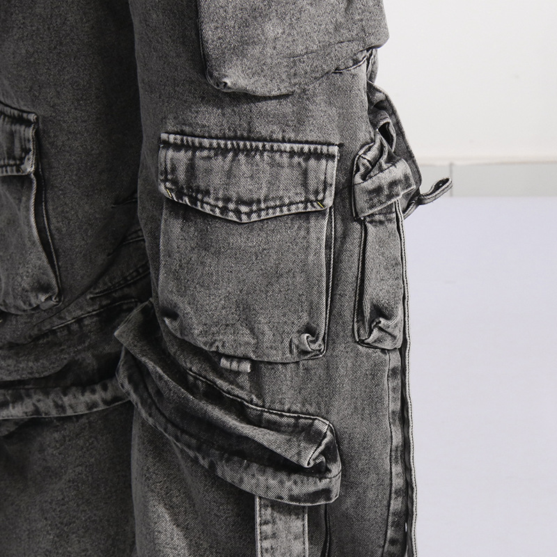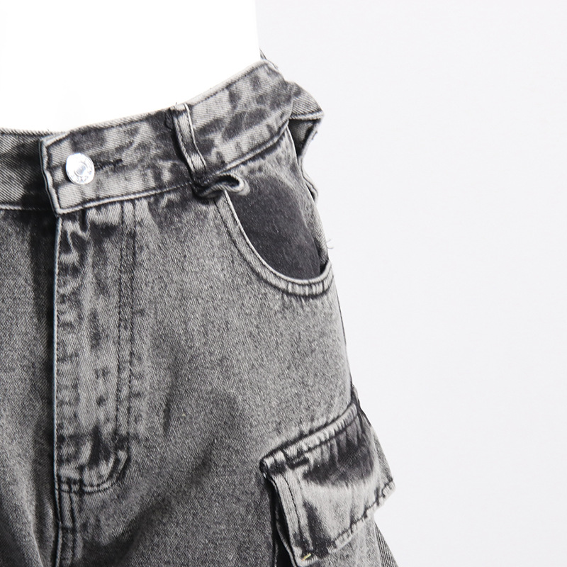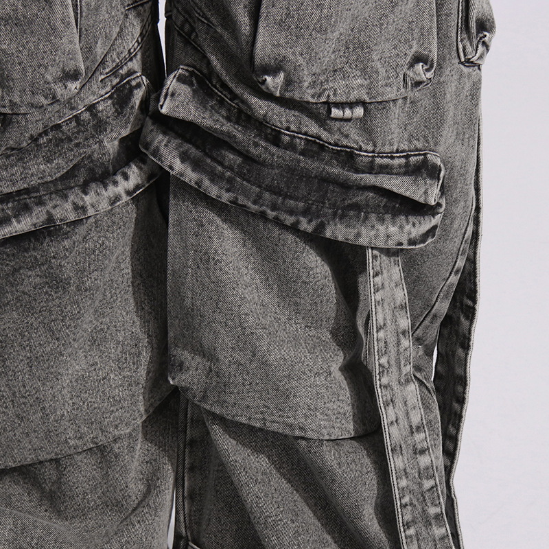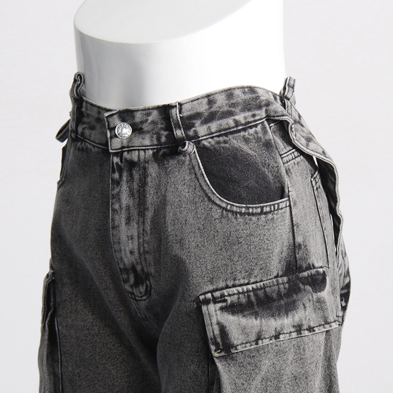 Spring Street Hipster Multi Pocket Decorative Ribbon Design Jeans Women Hollow Out Cutout Out Overalls