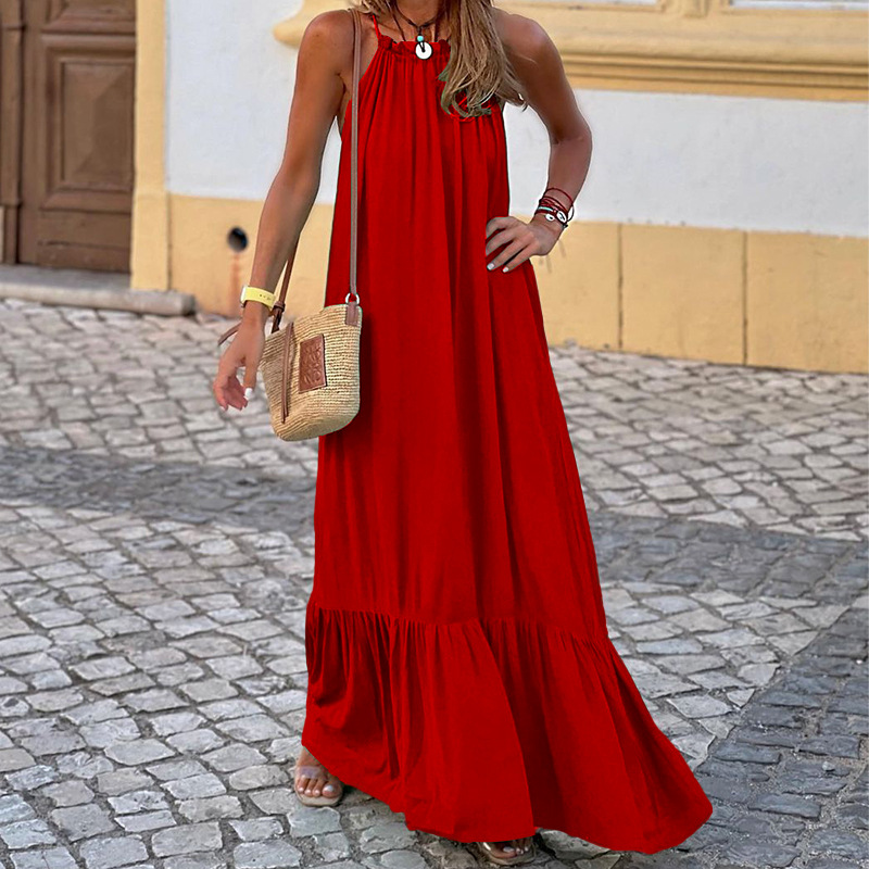 Spring Summer Ladies Sleeveless Halter Long Beach Dress