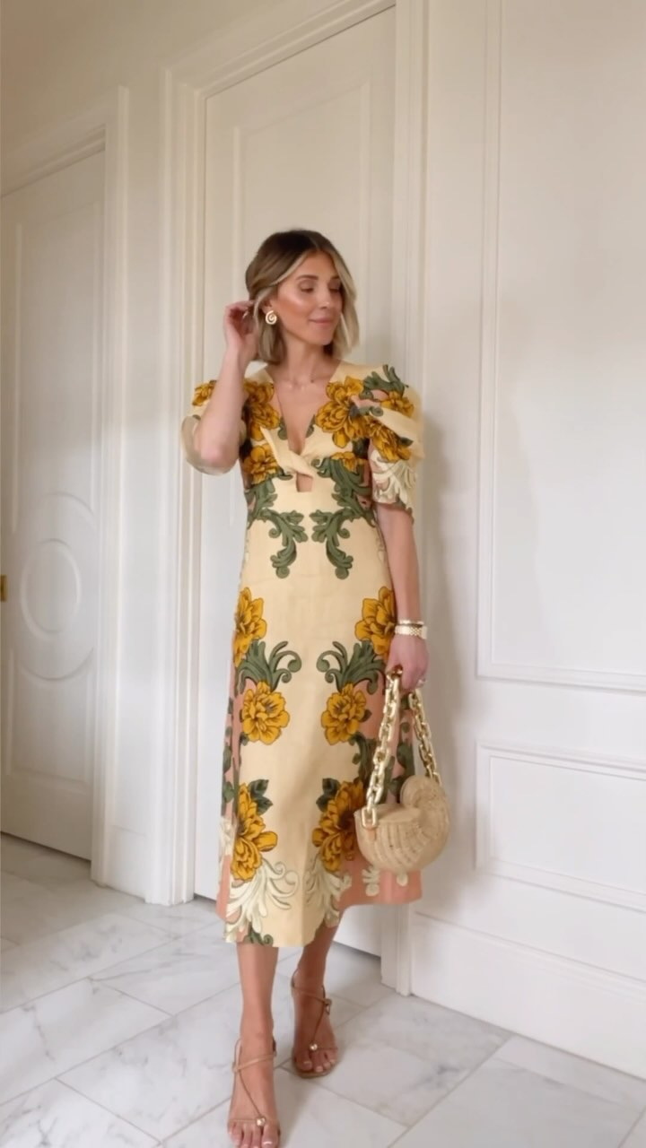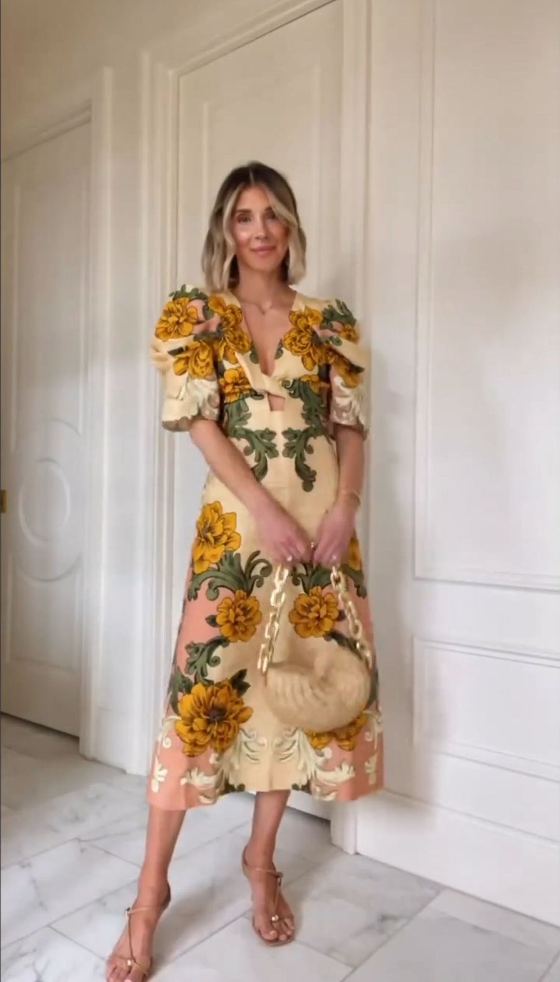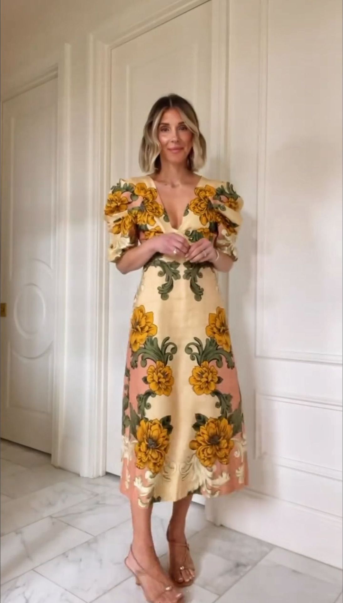 Spring Summer Linen Positioning Printing Dress Loose Vacation Women Clothing Dress