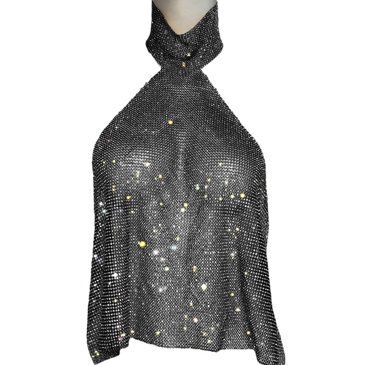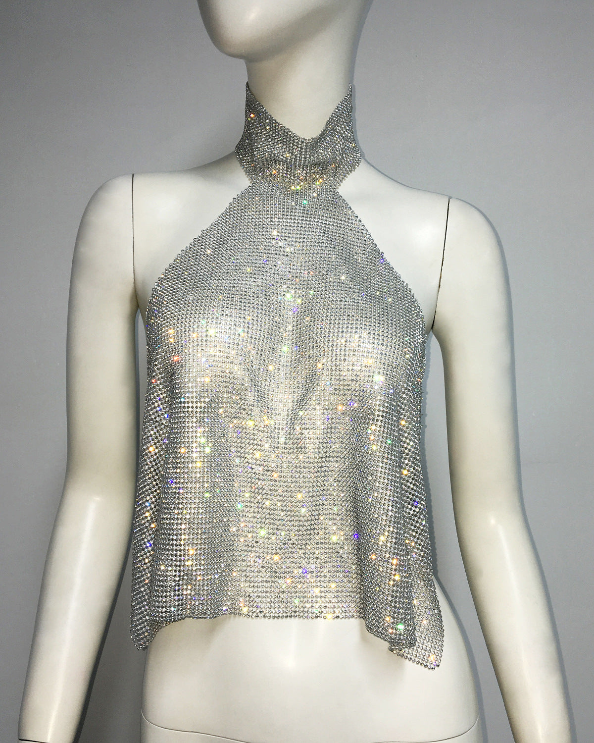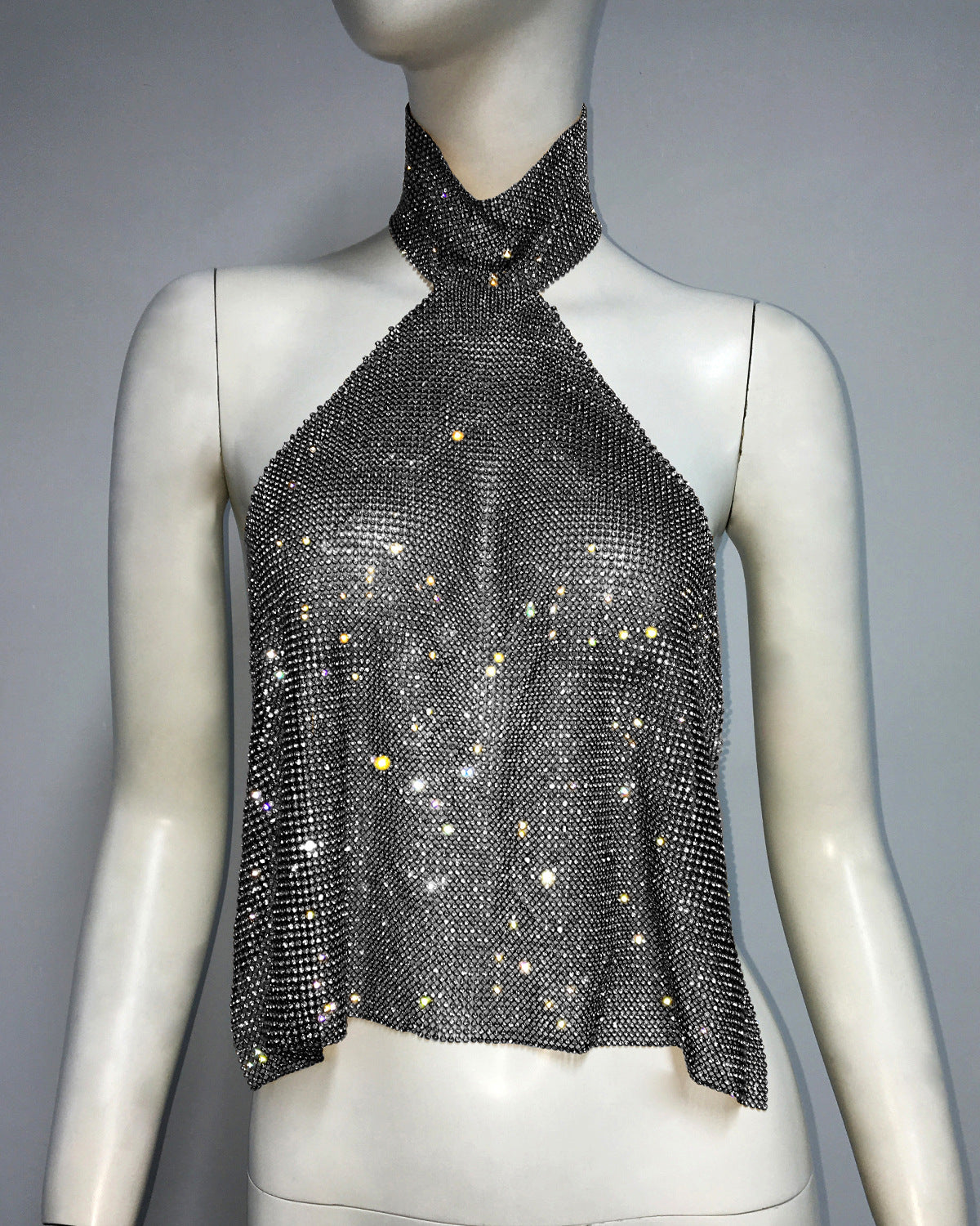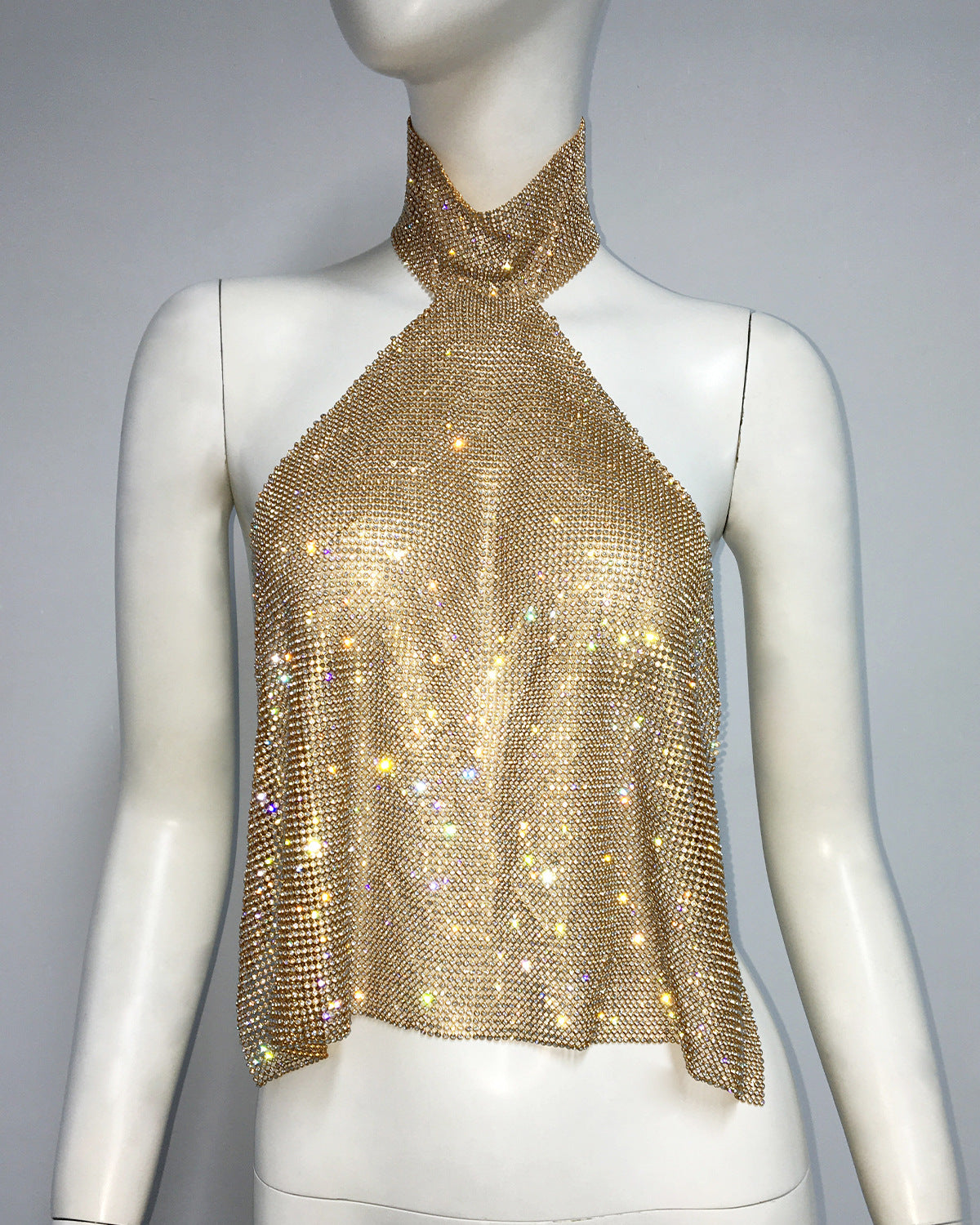 Spring Summer Metal Mesh Diamond Halter Top Sequined Vest Camisole for Women