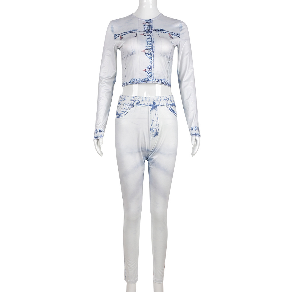 Spring Summer Personalized Printed T shirt Trousers Two Pieces Casual Set