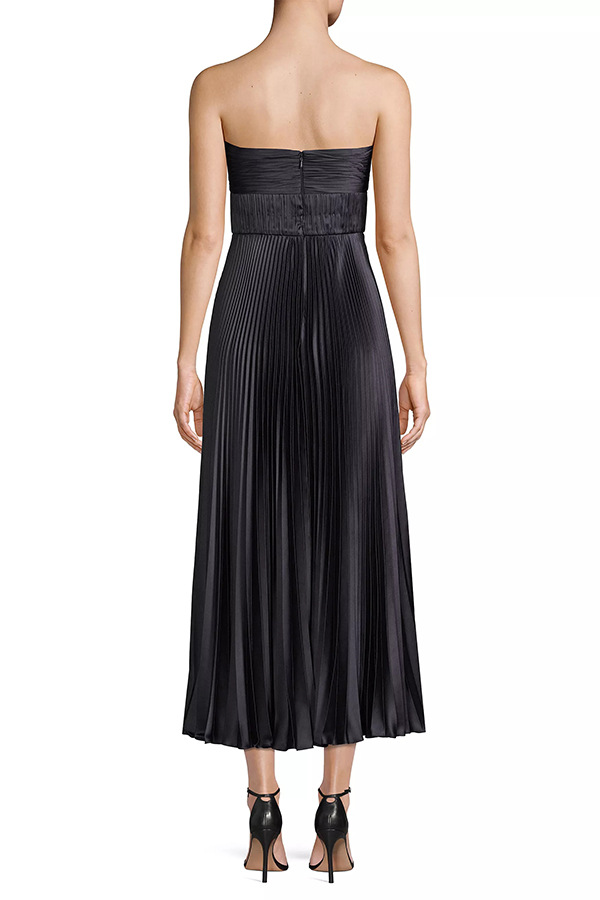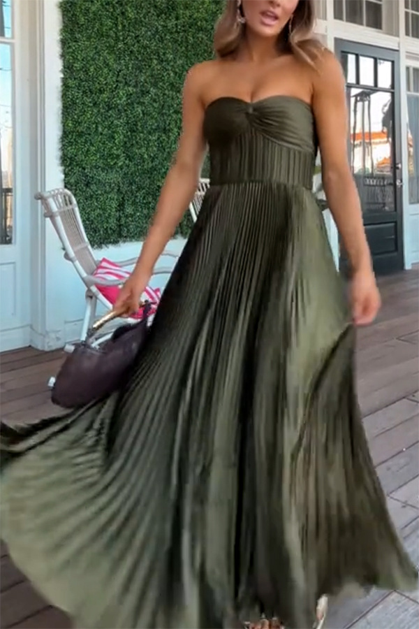 Spring Summer Pleated Wrapped Chest Satin Dress Casual Vacation Zipper Dress