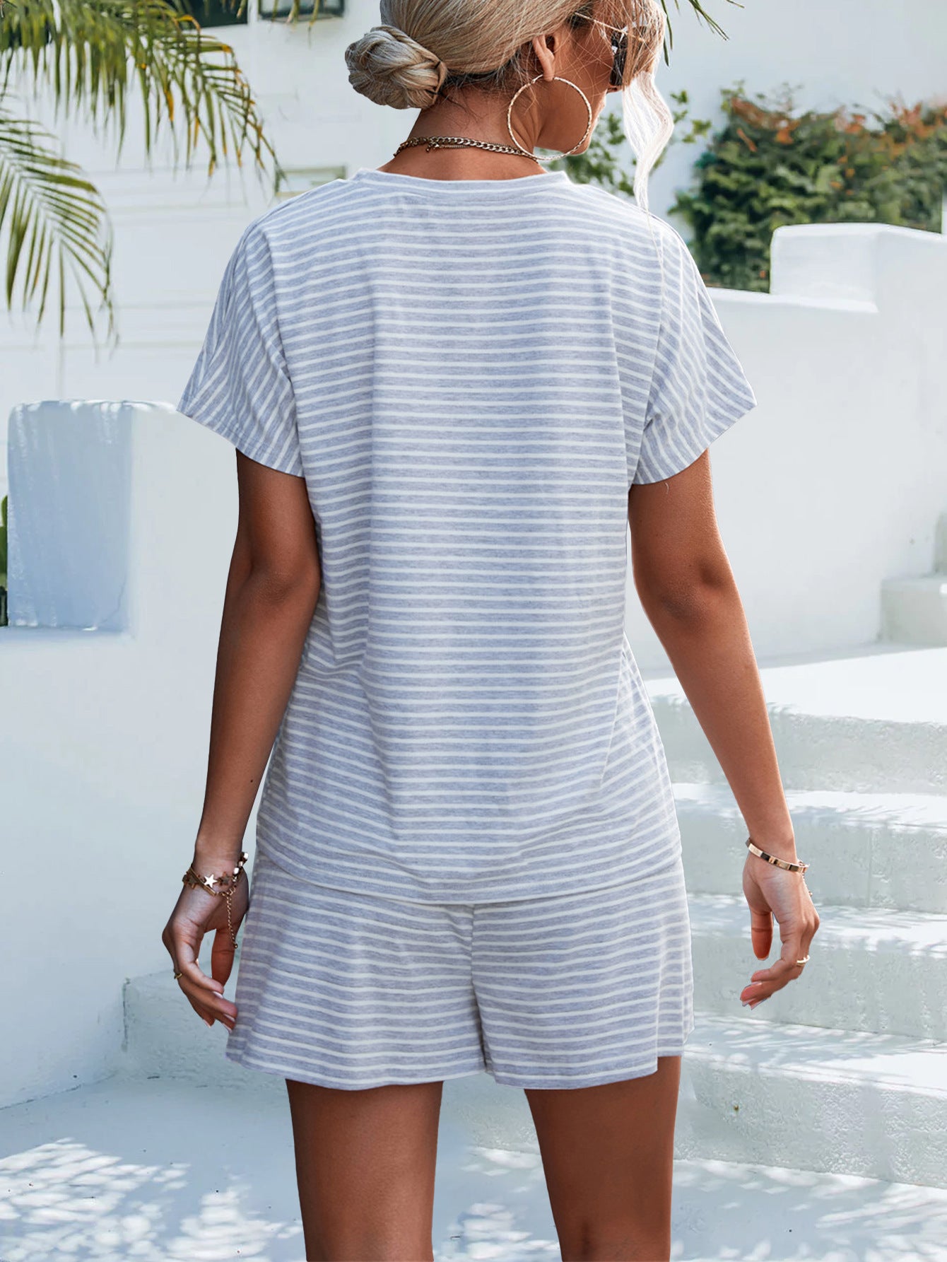 Spring Summer Popular Classic Striped T shirt Shorts Casual Suit Women