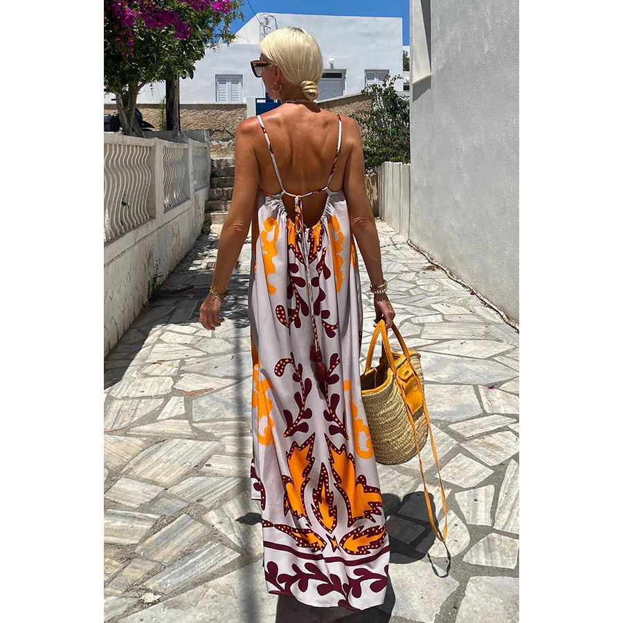 Spring Summer Sexy Spaghetti Strap Floral Print Dress Casual Loose Vacation Dress