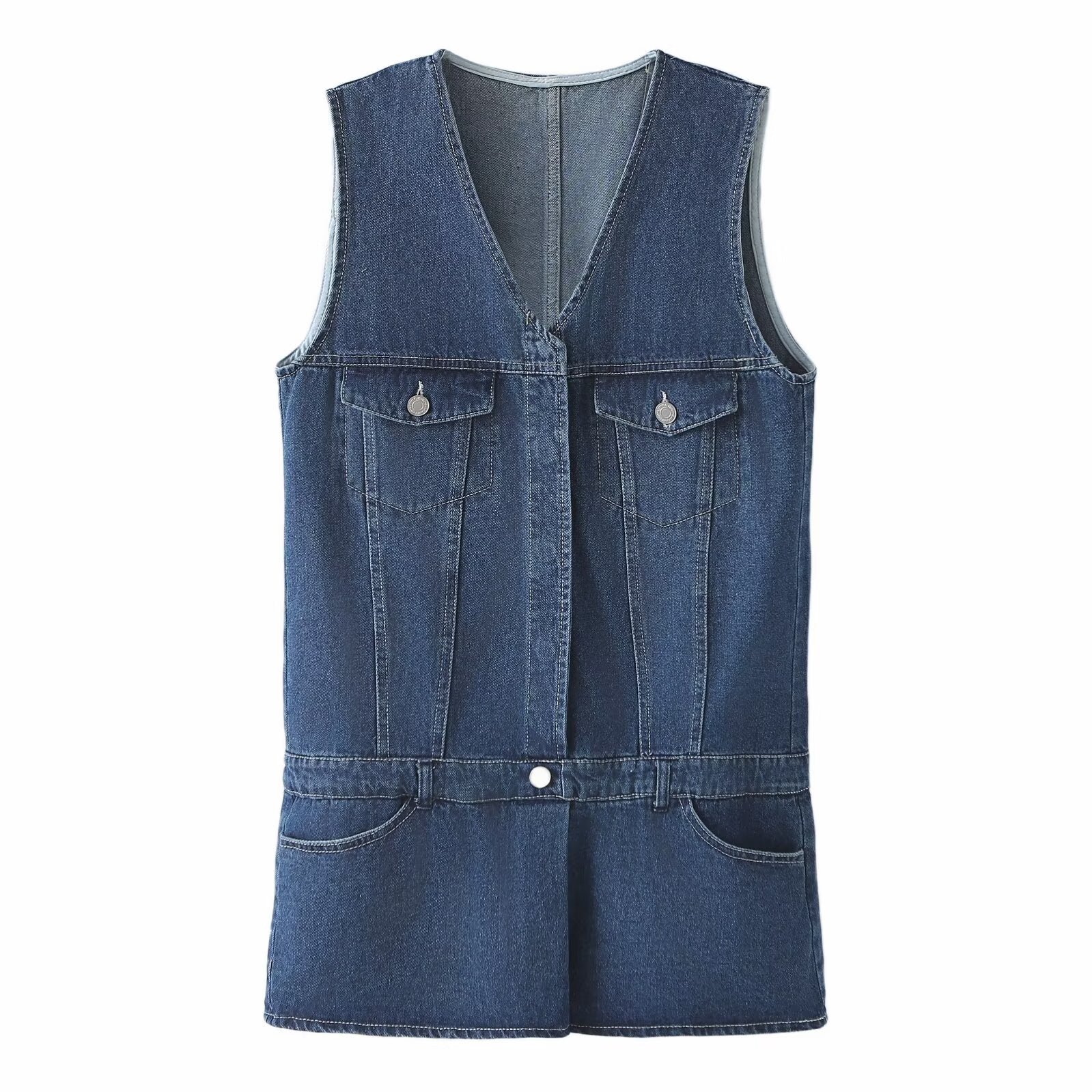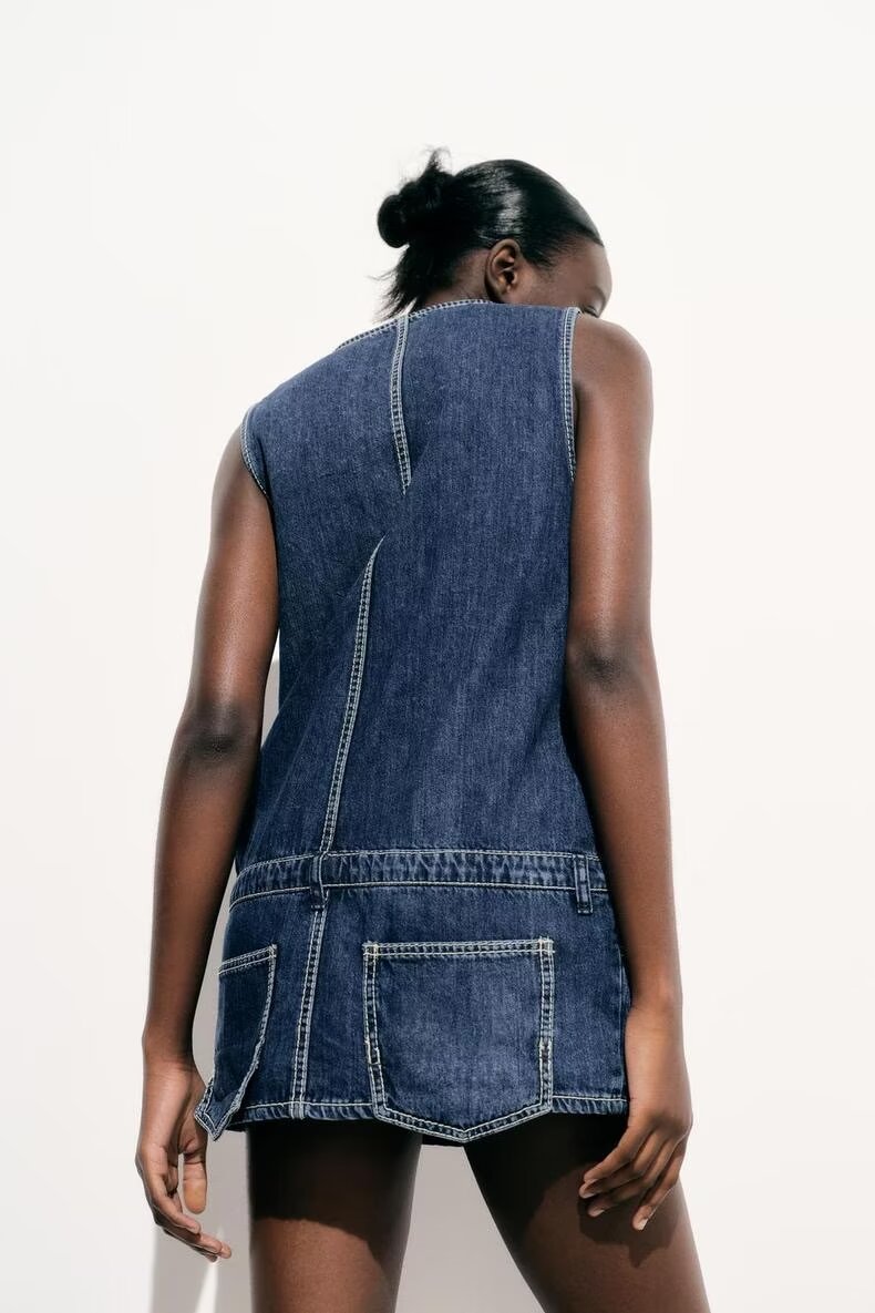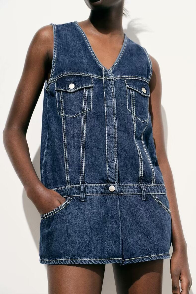 Spring Summer Women Clothing Jumpsuit Loose Casual Sweet Washed Denim Short Dress