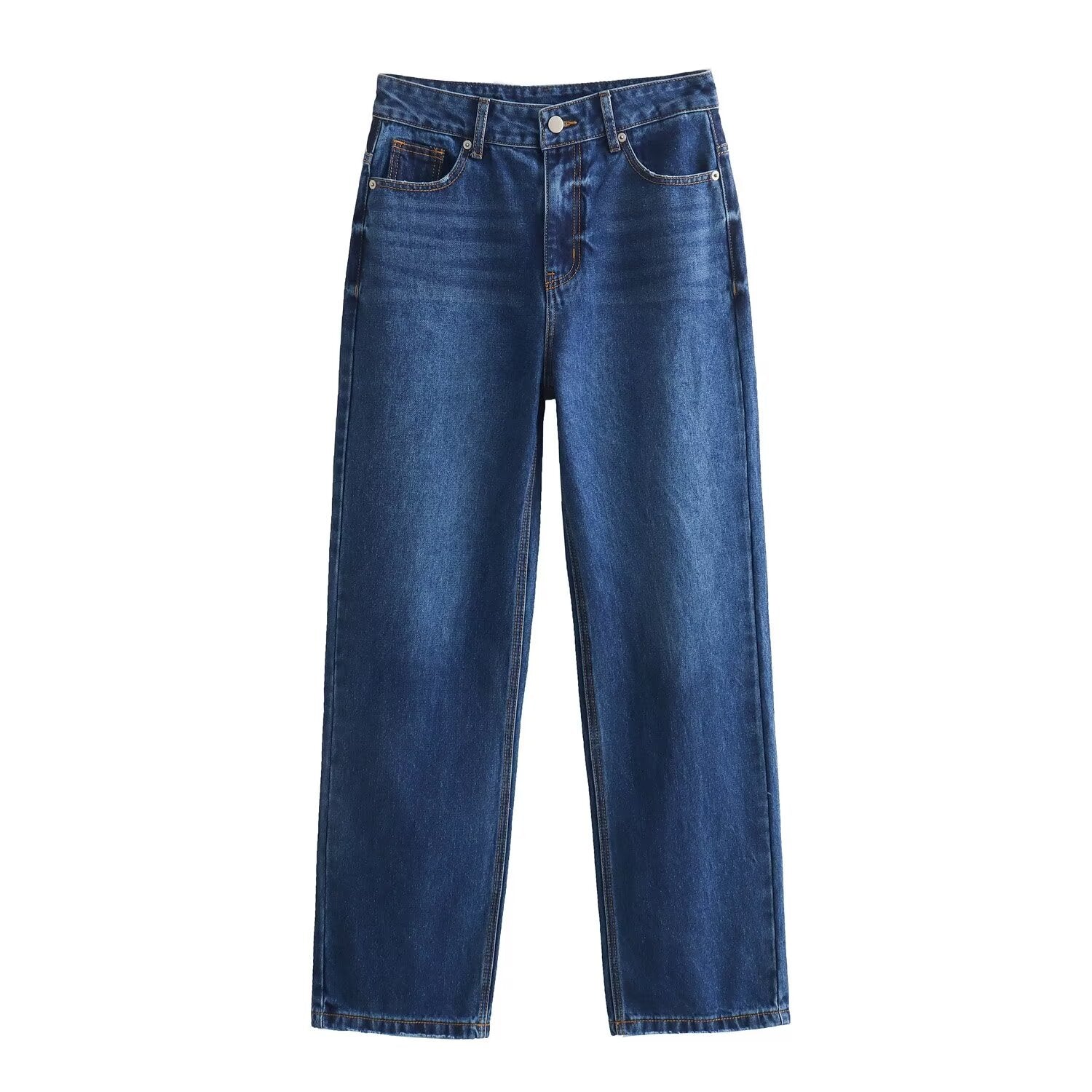 Spring Women Clothing Casual Straight Leg Retro Blue High Waist Wide Leg Pants Mop Pants