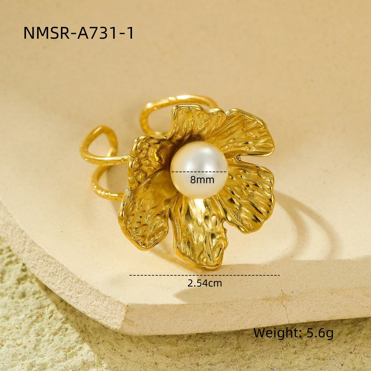 Stainless Steel Ring Exaggerated Irregular Asymmetric Geometric Abstract Plated 18K Gold Titanium Steel Ring Bracelet