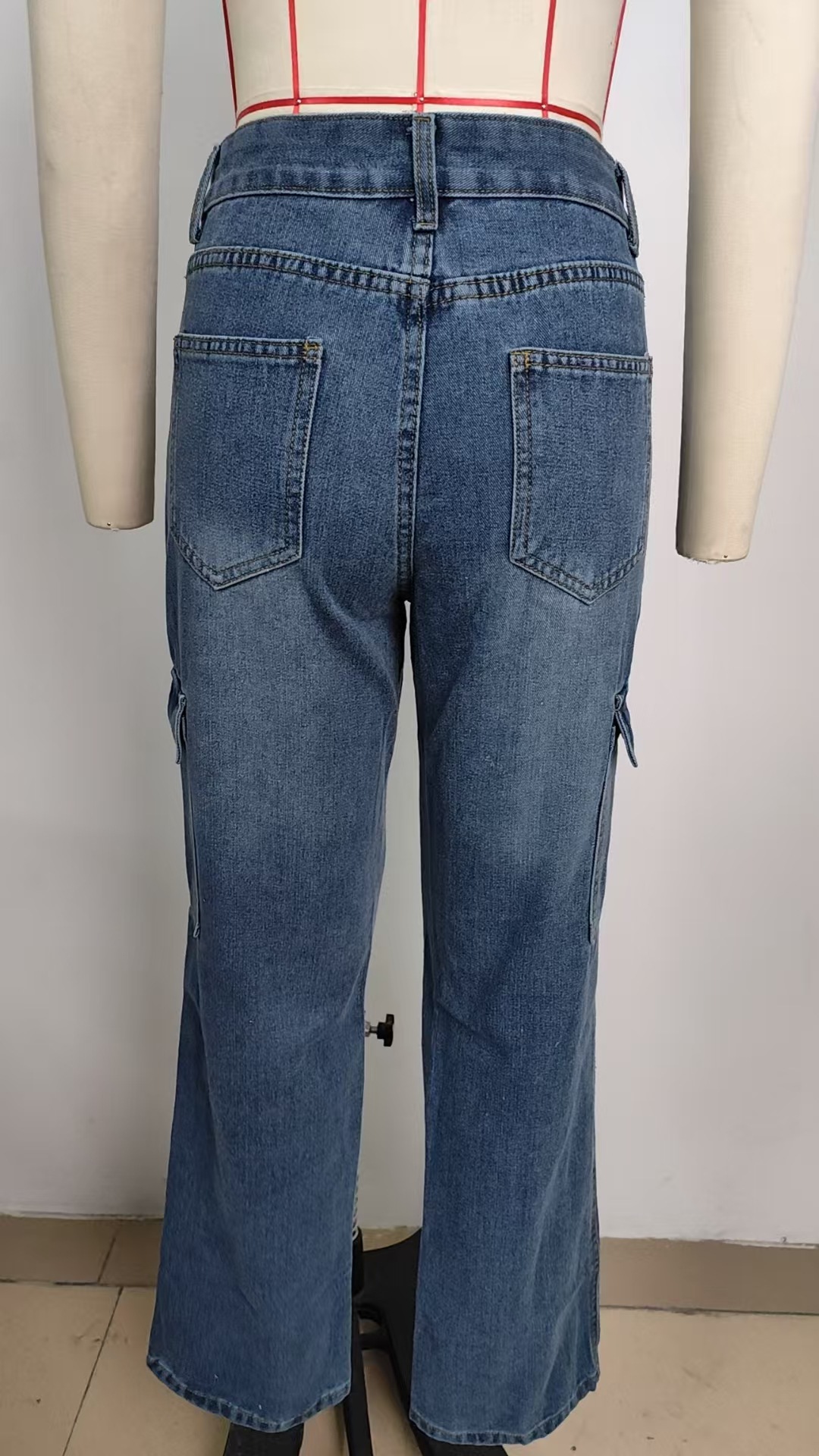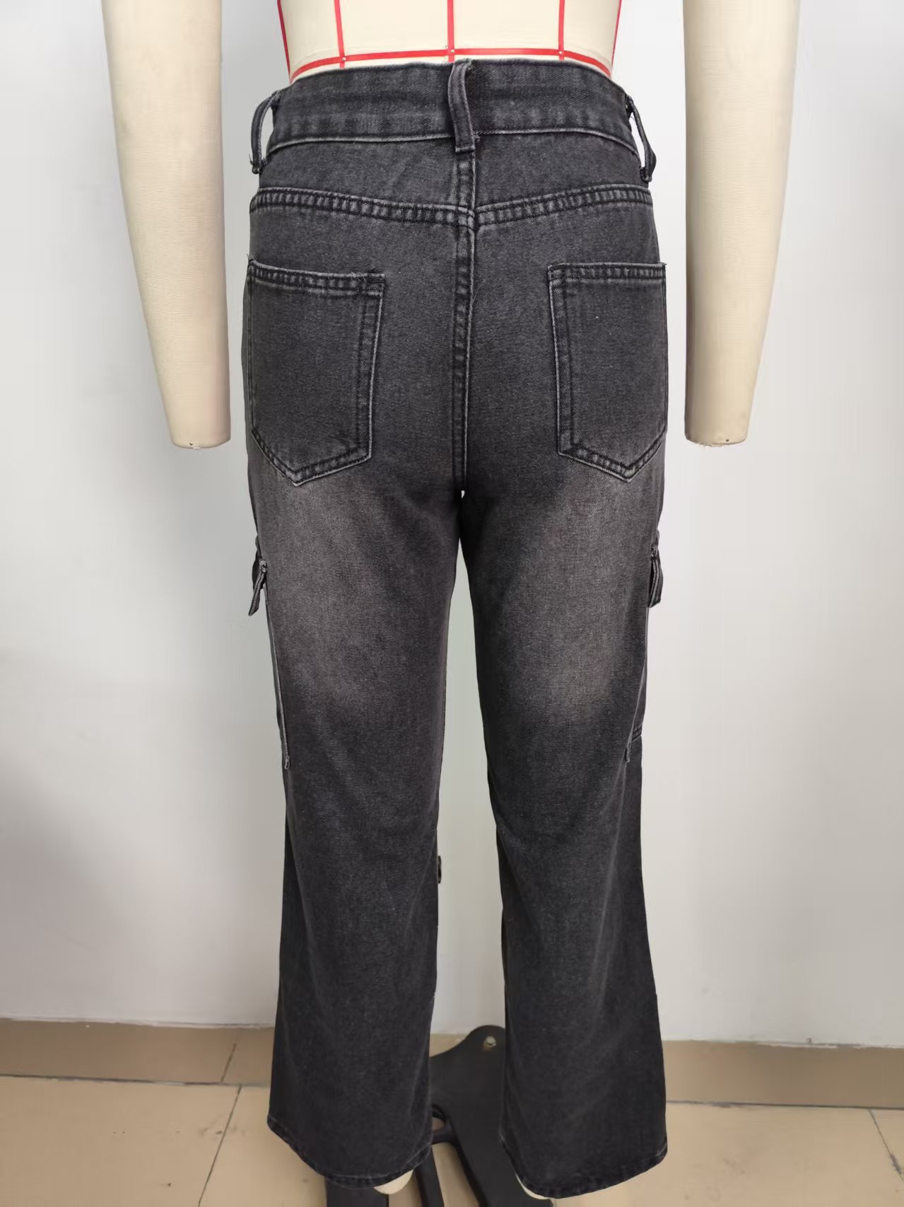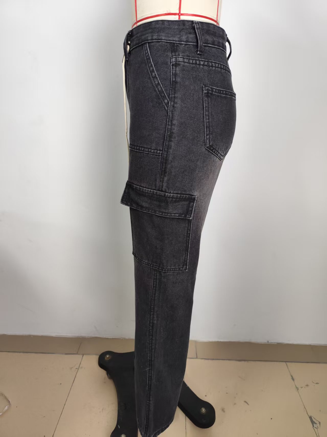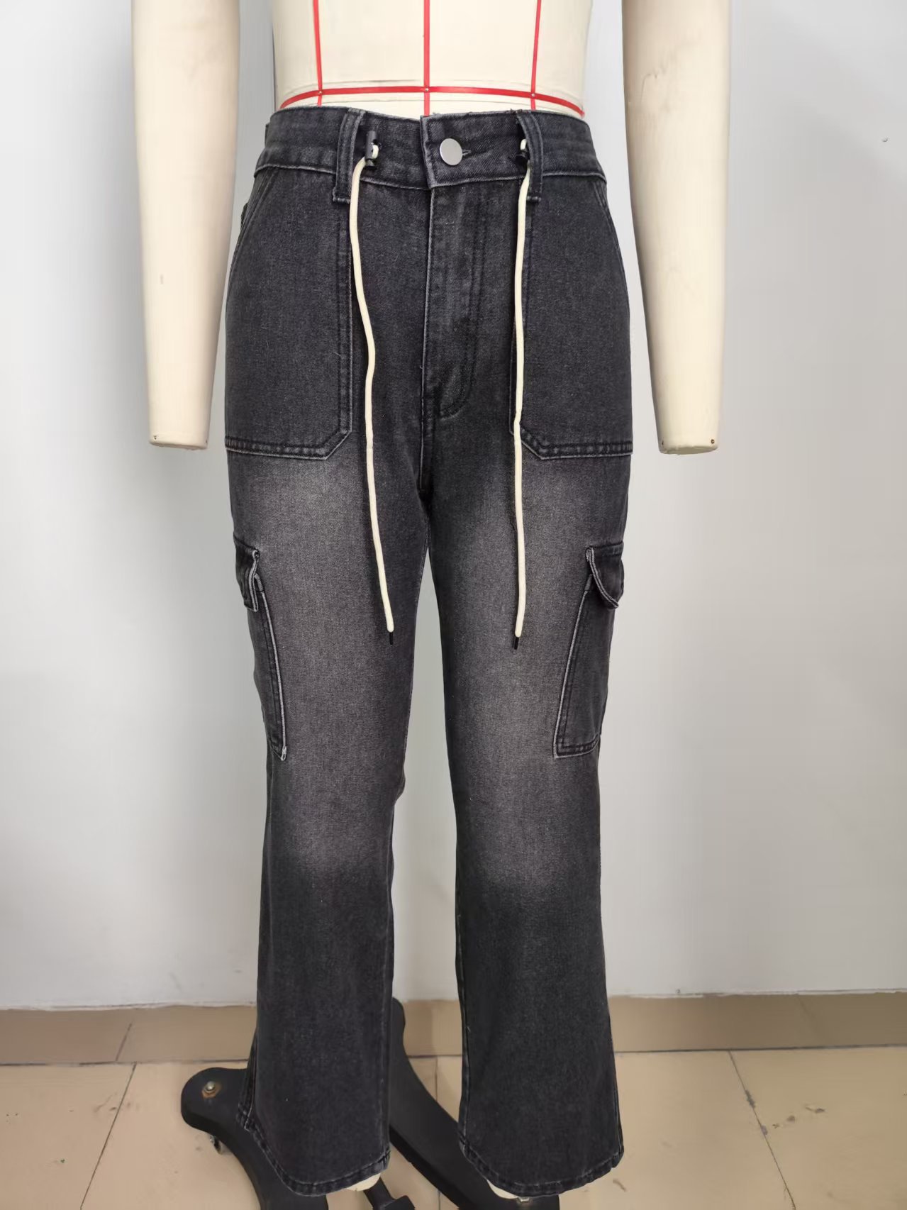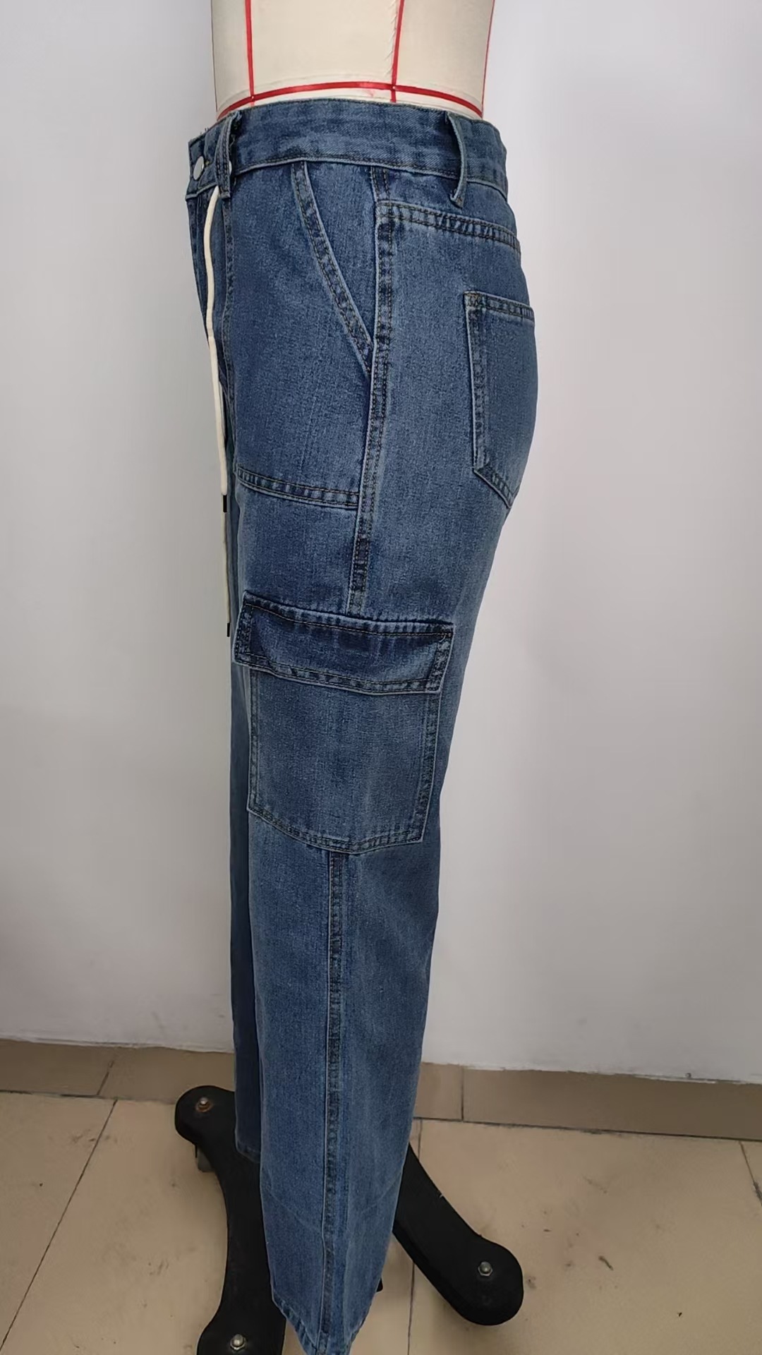 Straight Jeans Women Casual Lace up Multi Pocket Work Pants Jeans
