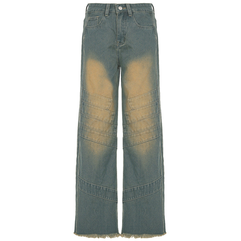 Street Vintage Retro Blue Washed Loose Jeans Striped Split Straight Leg Trousers Women