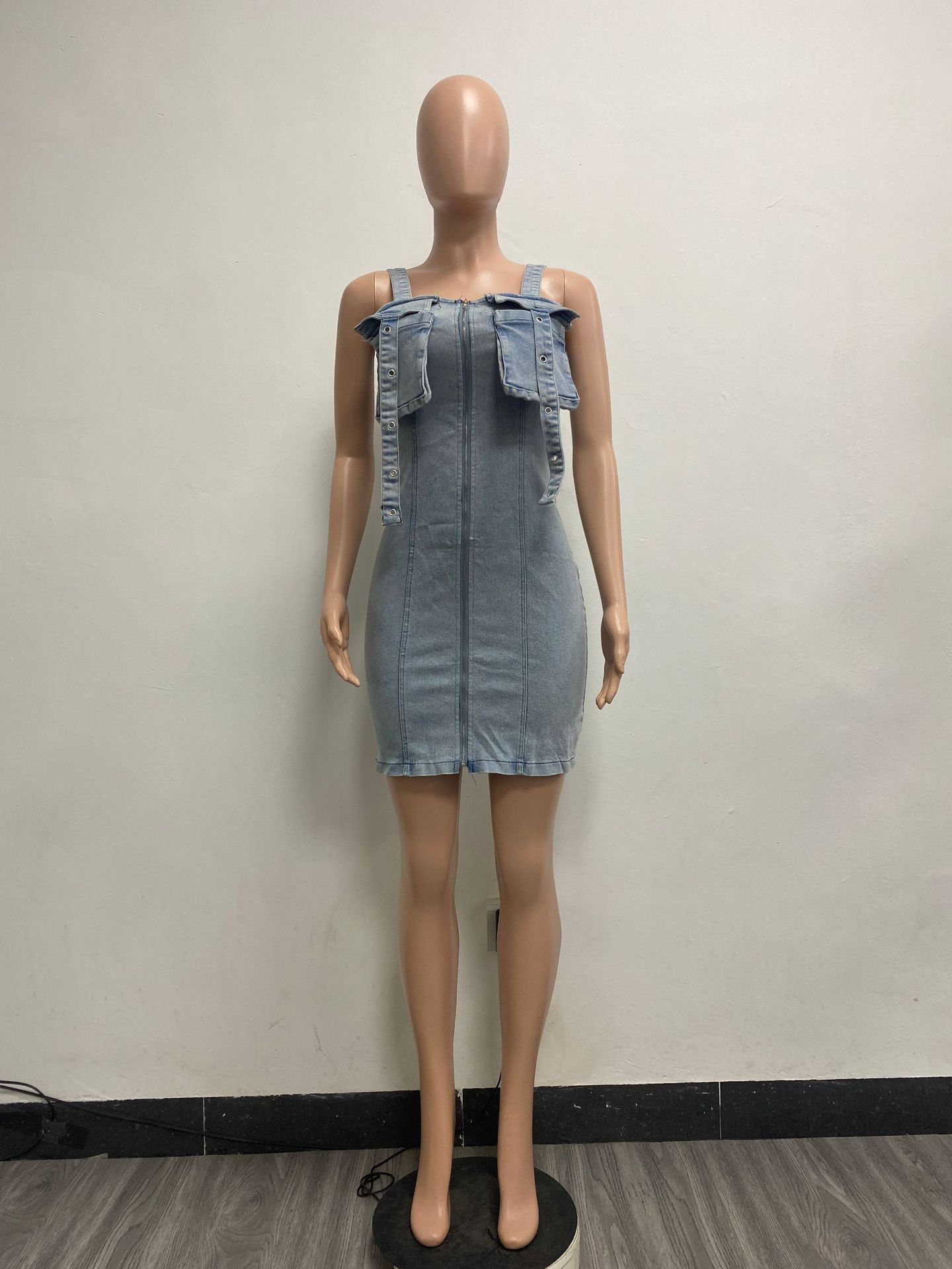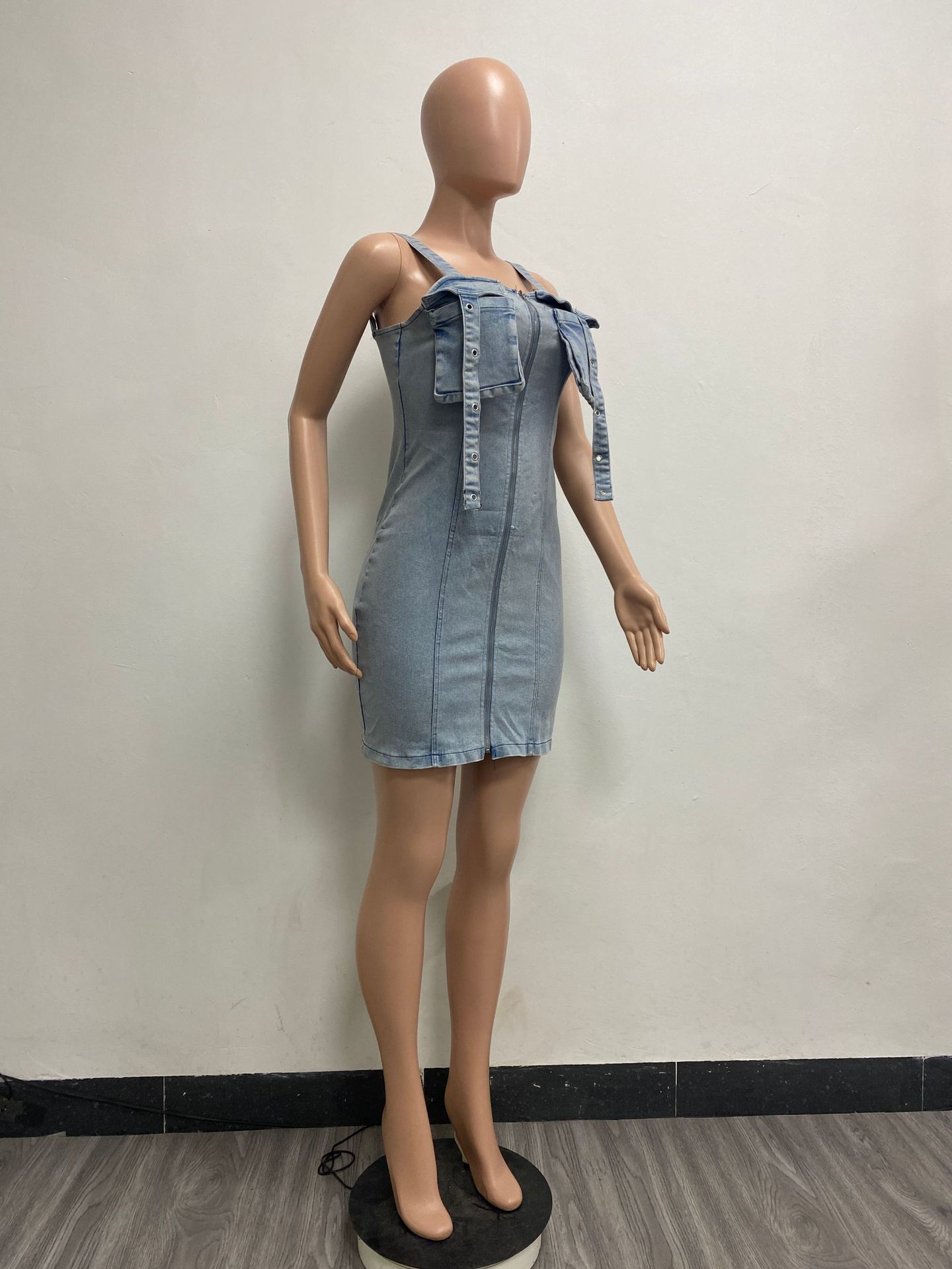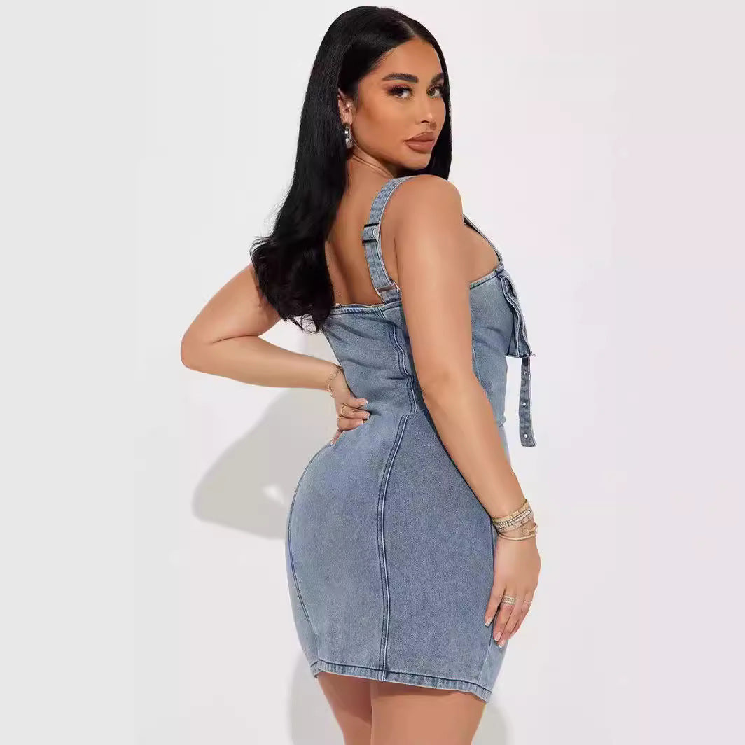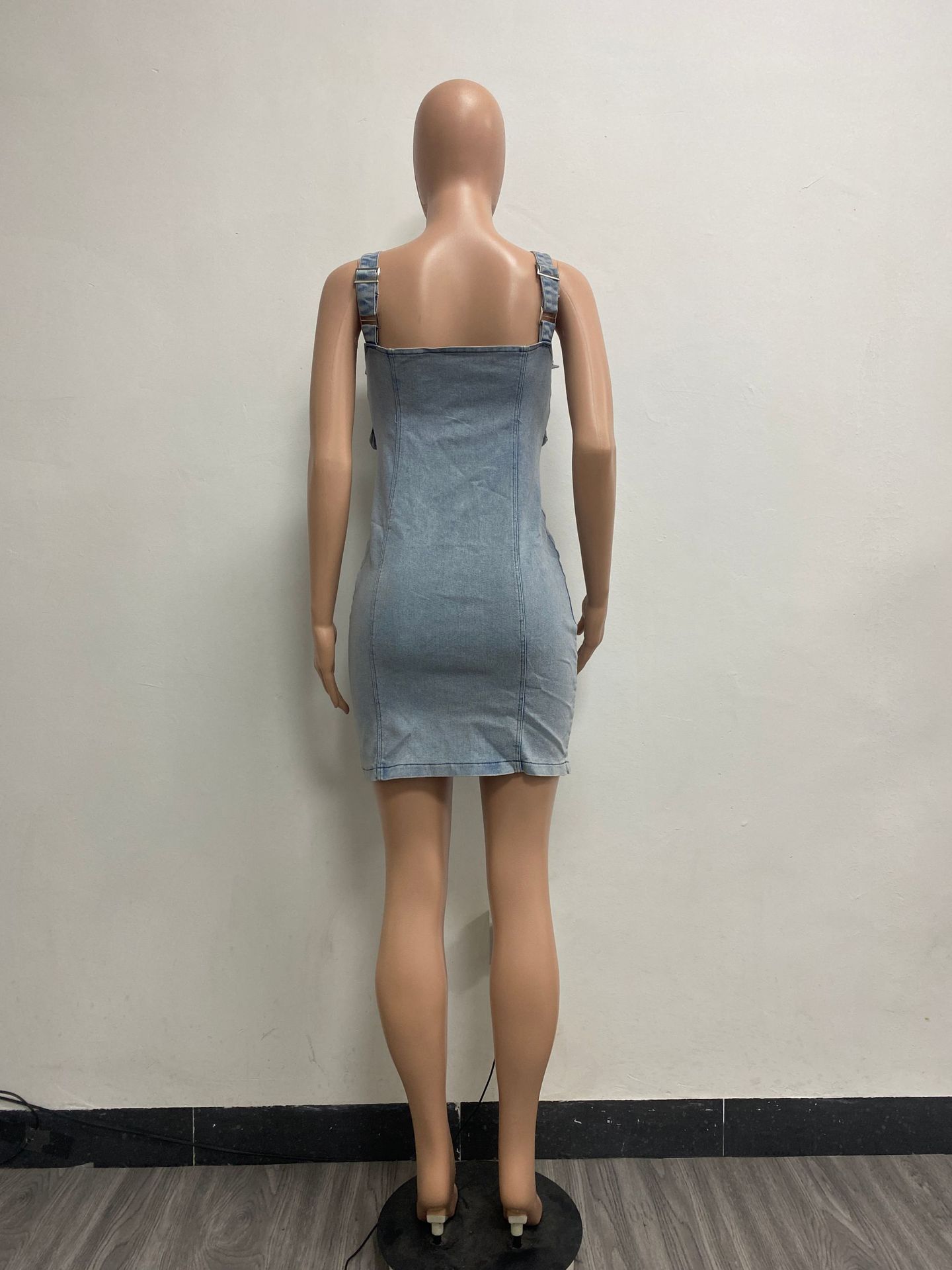 Stretch Denim Stitching Dress Shoulder Strap Buckle Regulator