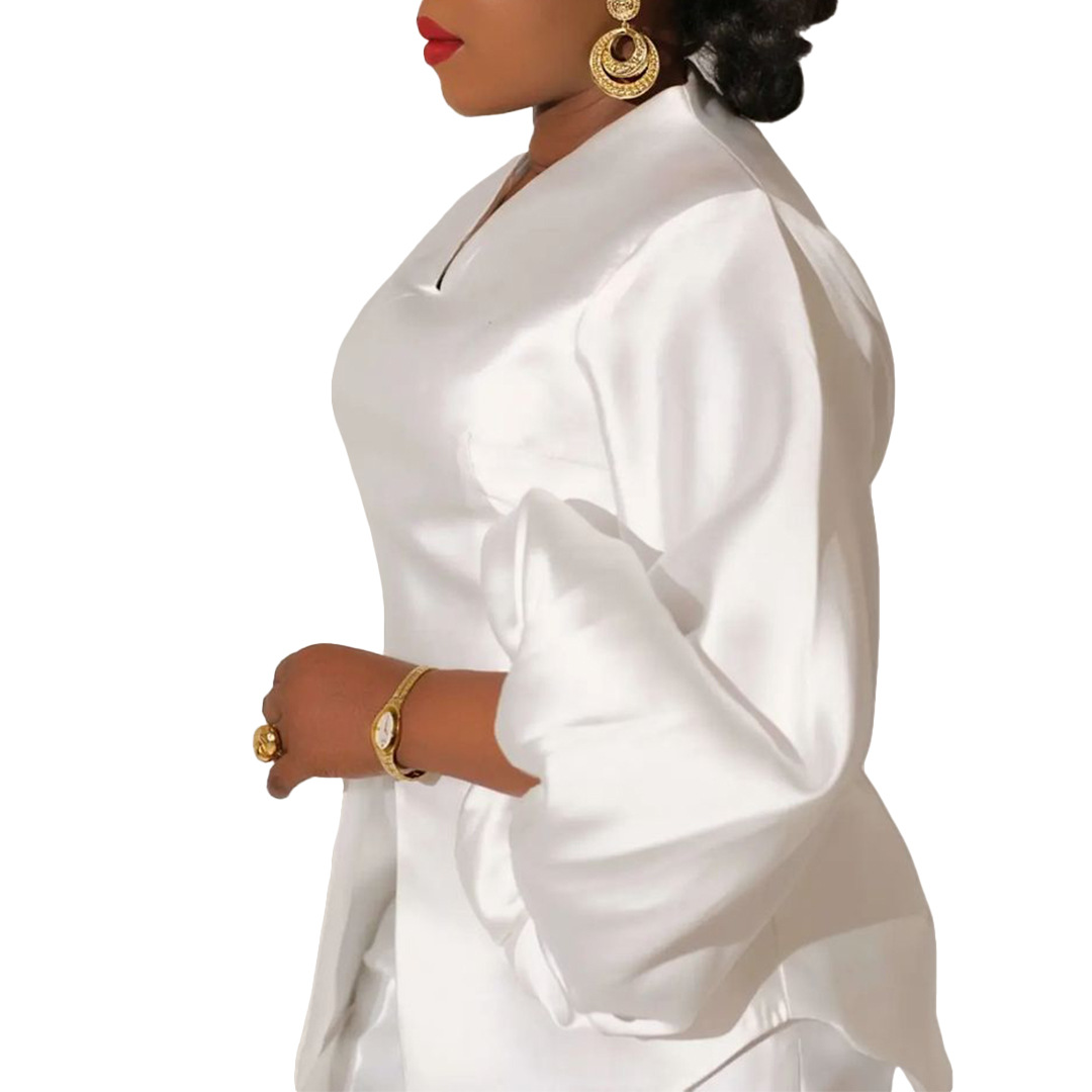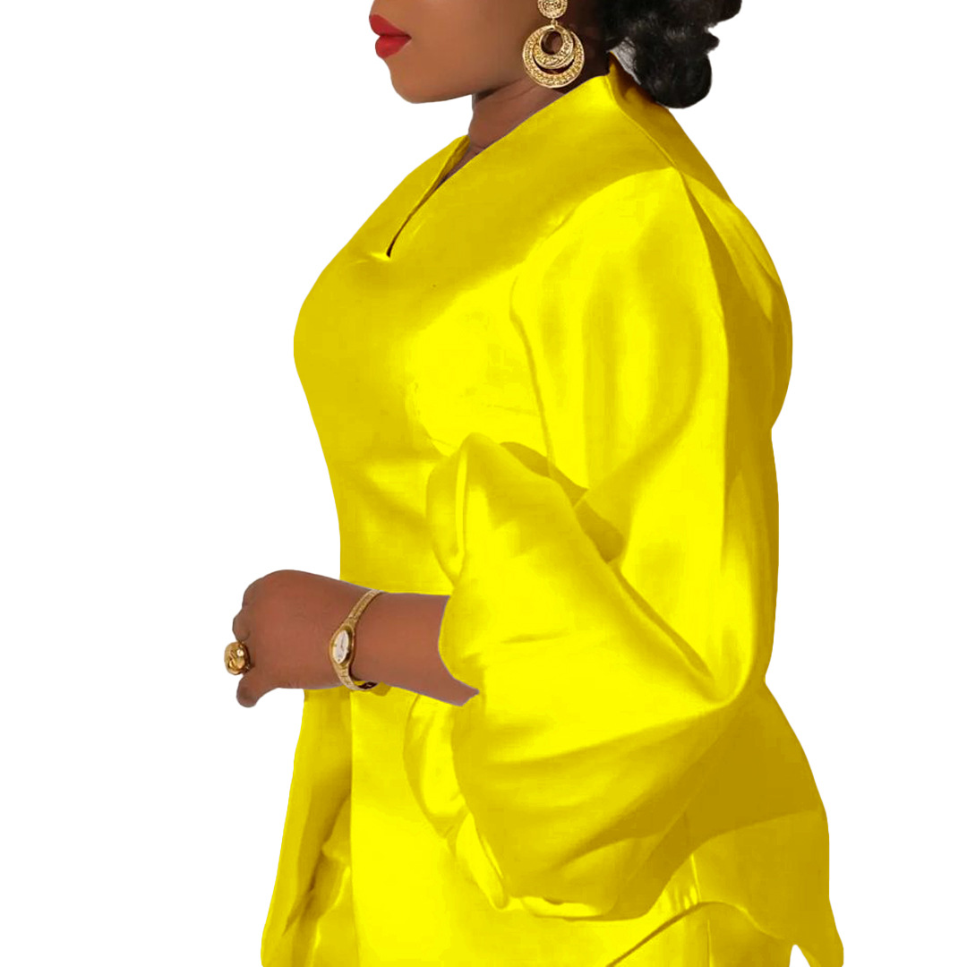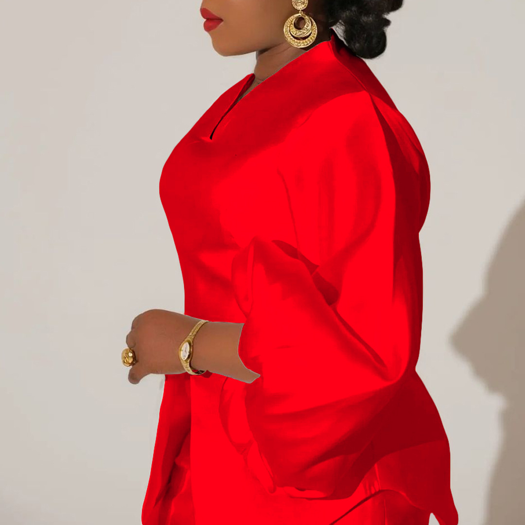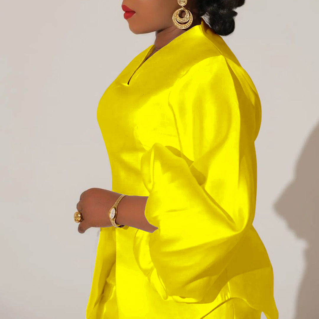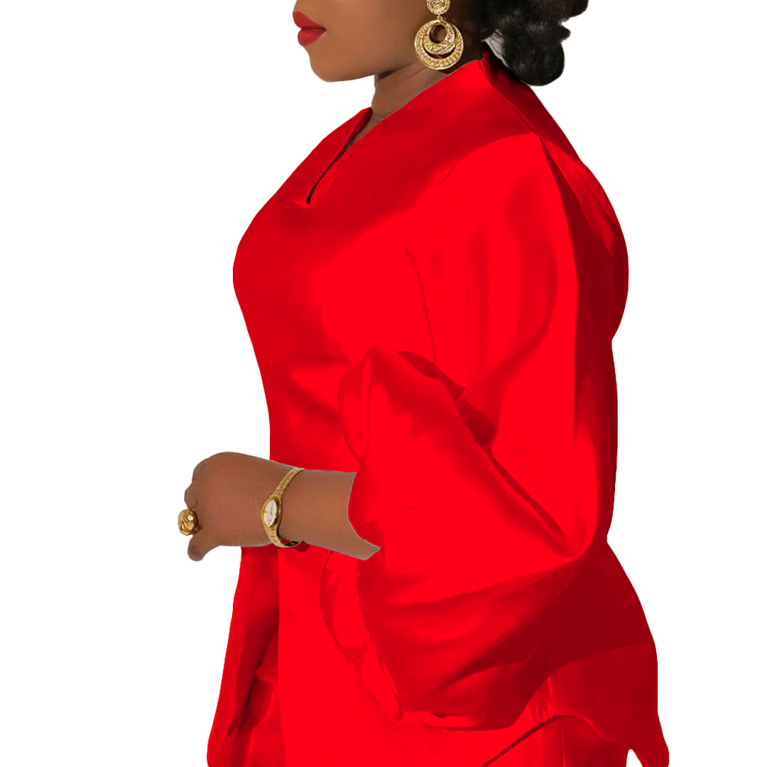 Suit Elegant Office Solid Color African plus Size Two Piece Set