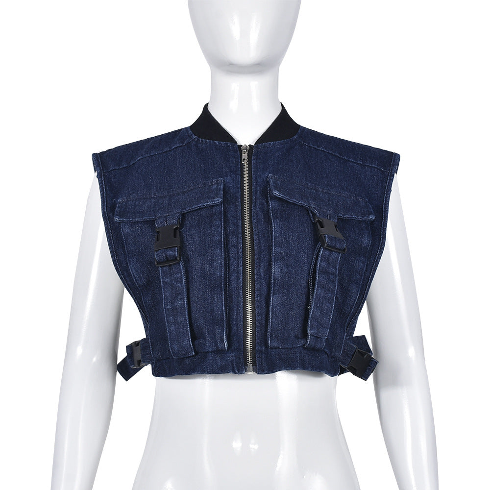 Summer Denim Wash School Bag Buckle Trendy Overalls Vest Top