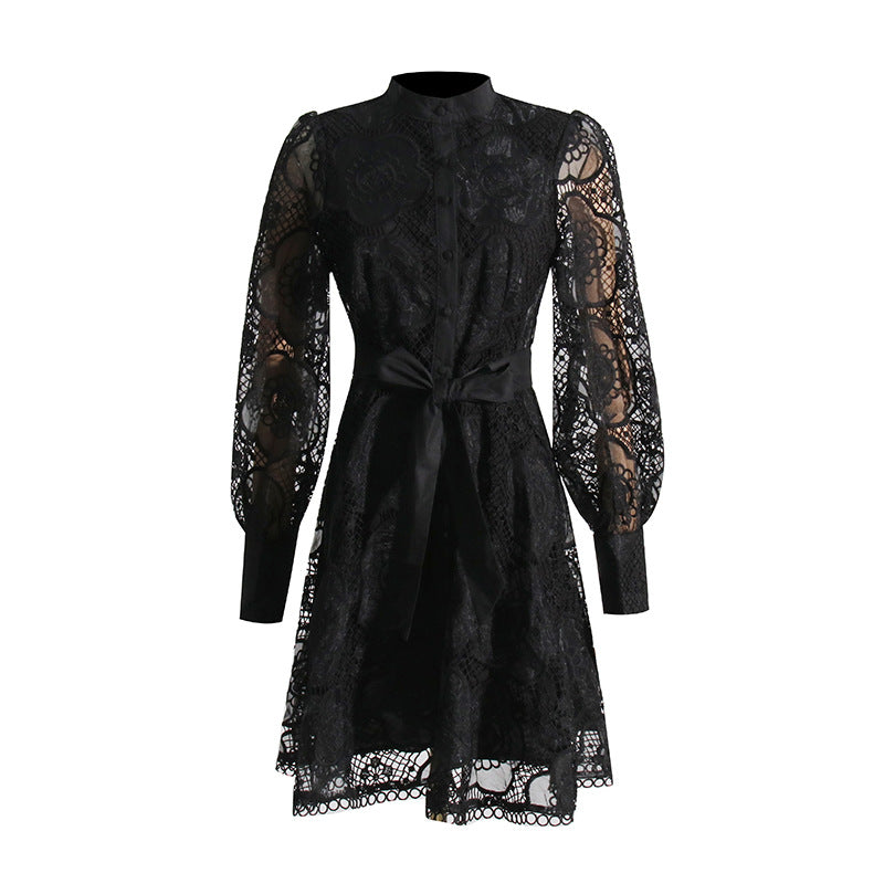 Element: Embroidery,Lace/Tulle/Fishnet,Belted,Button