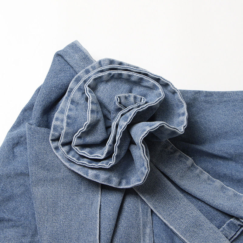 Summer Personalized Three Dimensional Floral Stitching Ribbon High Waist All-Matching Sheath Denim Skirt for Women