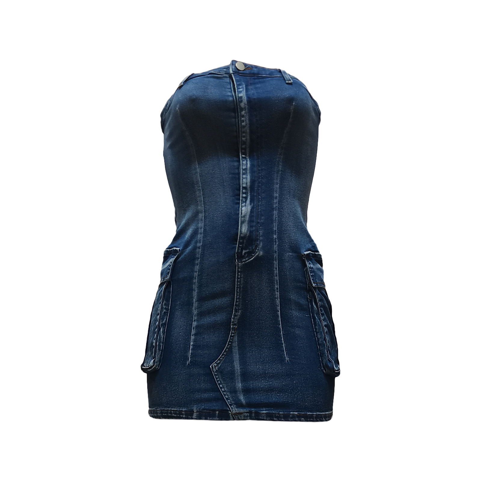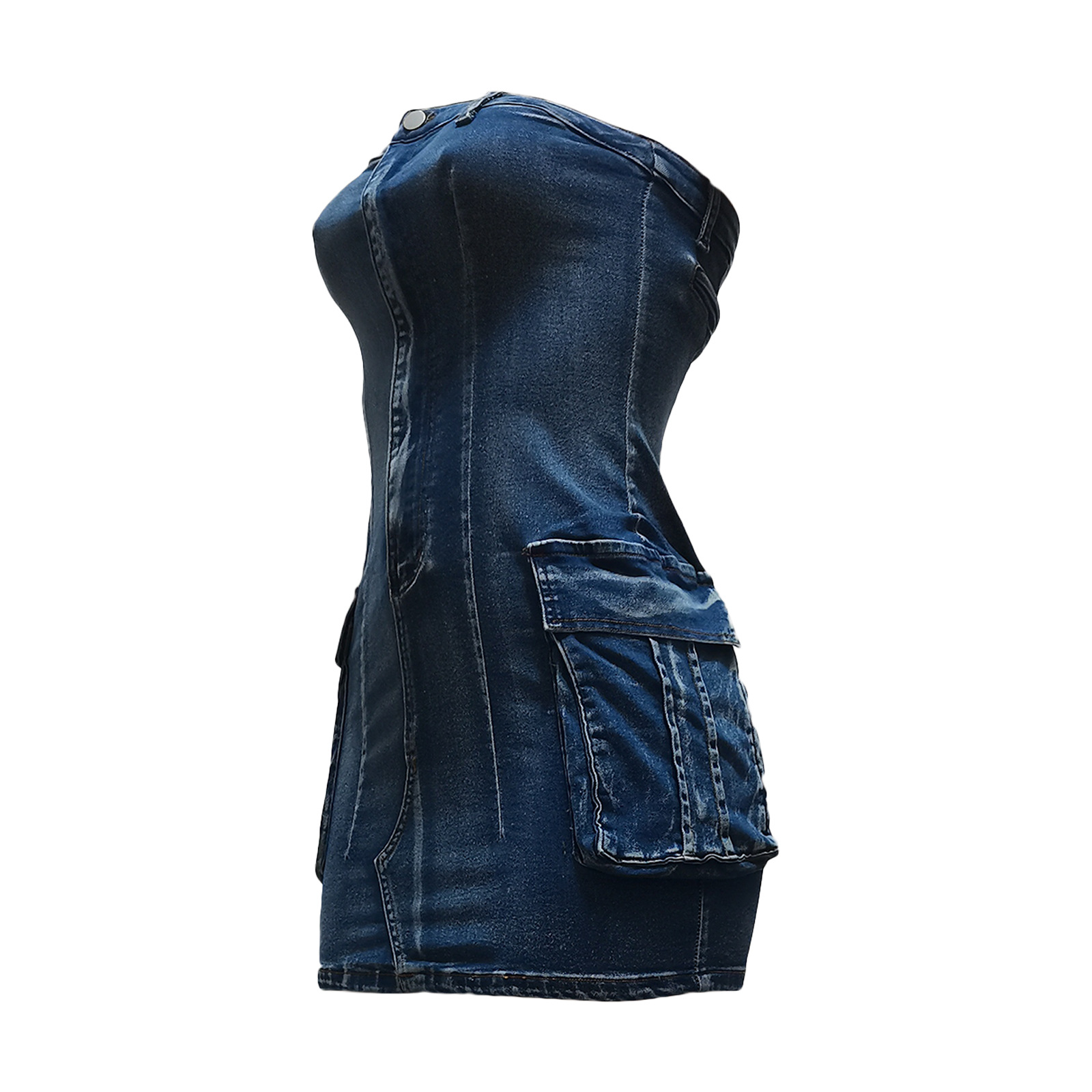 Summer Spring Summer Sexy Tube Top Wash Button Stretch Denim Dress