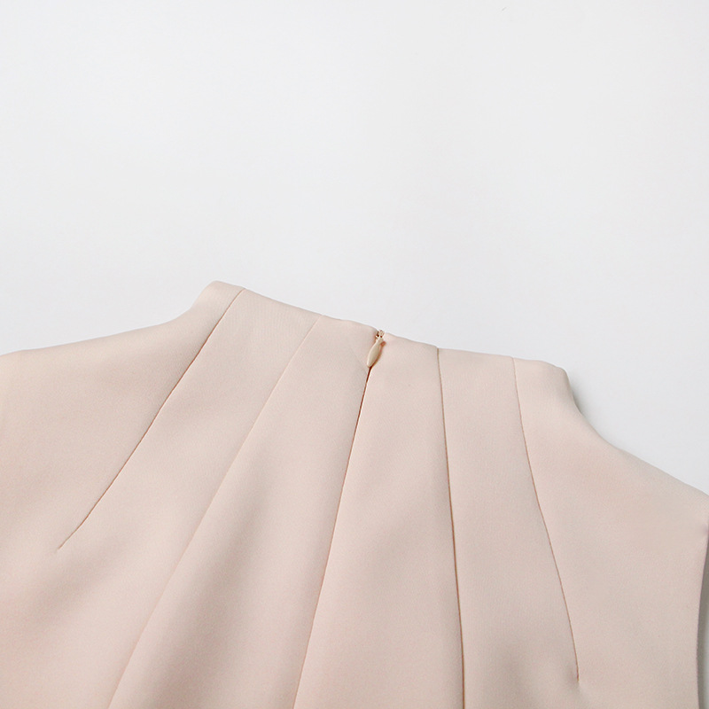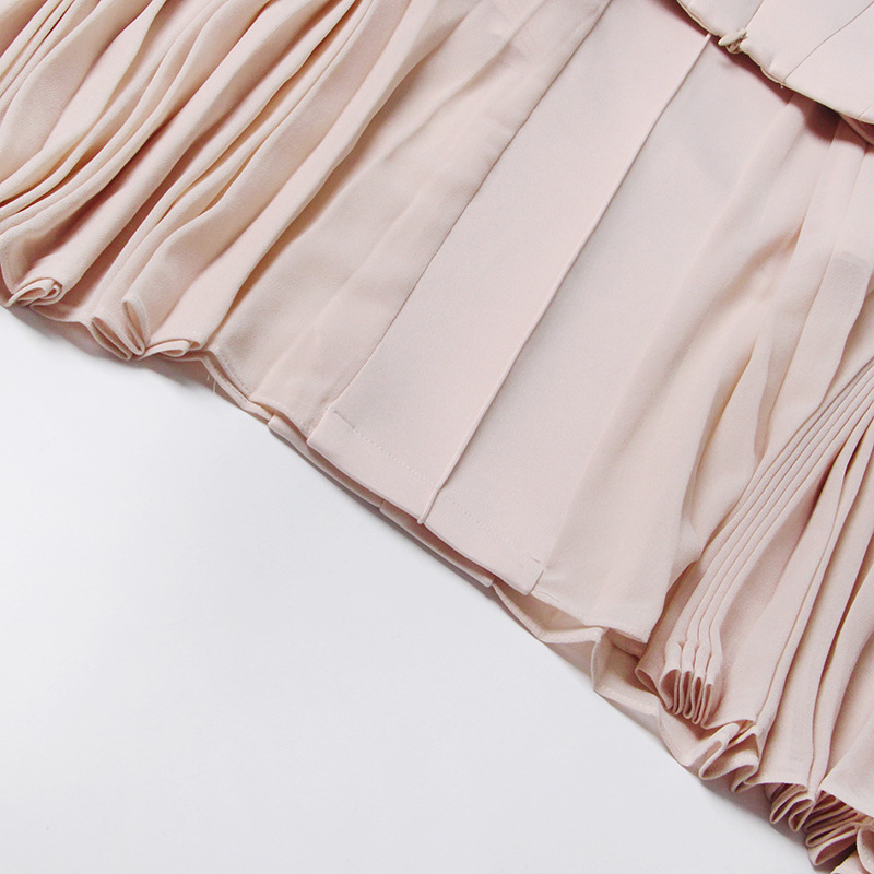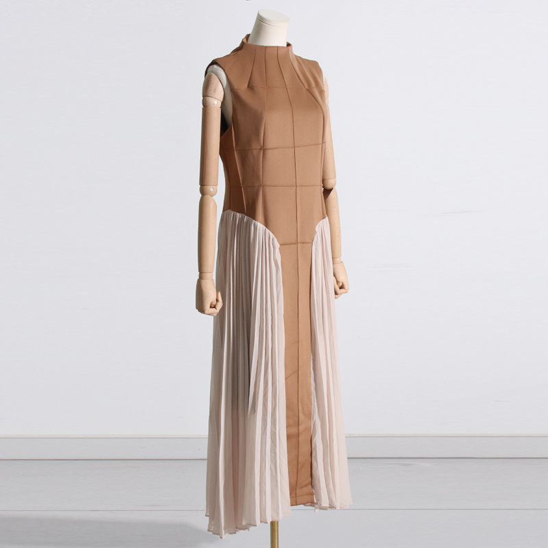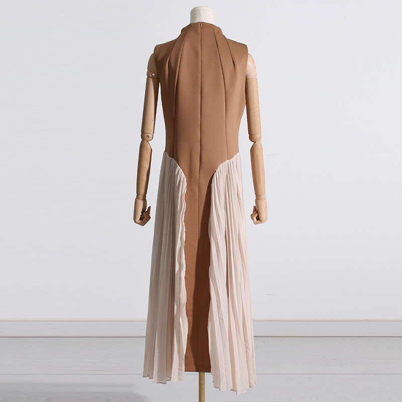 Summer Stand Collar Elegant Slightly Mature Dress Design Pleated Patchwork Waist Slimming Slimming Dress Long Dress