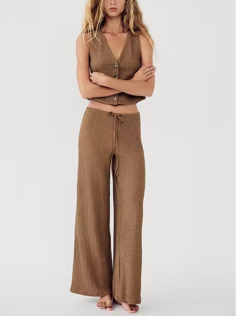 Summer Texture Vest Top Texture Straight-Leg Pants Set