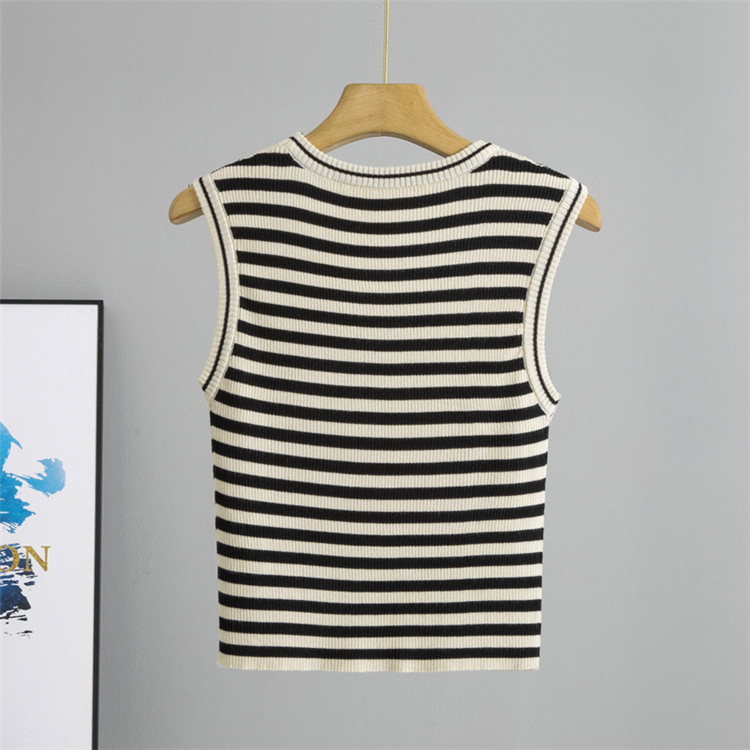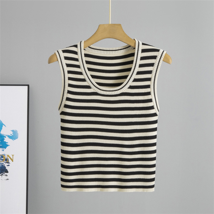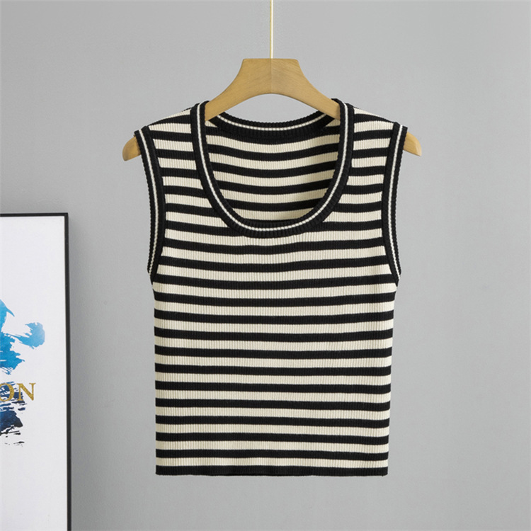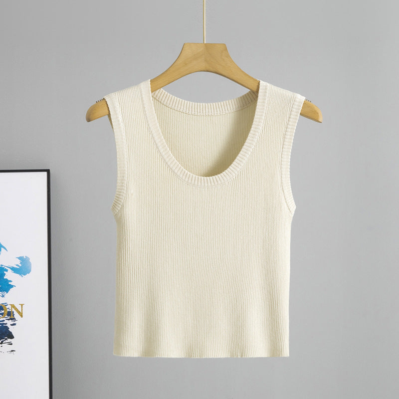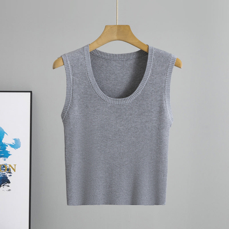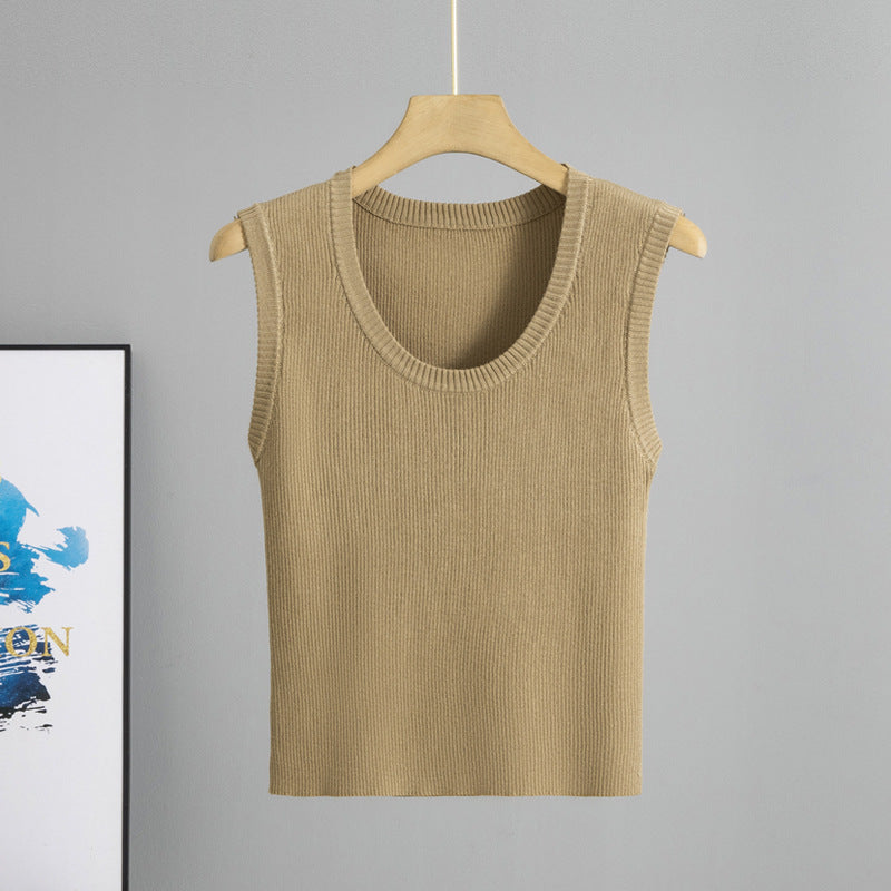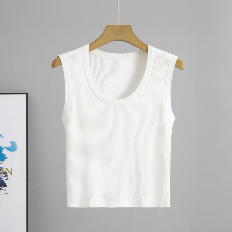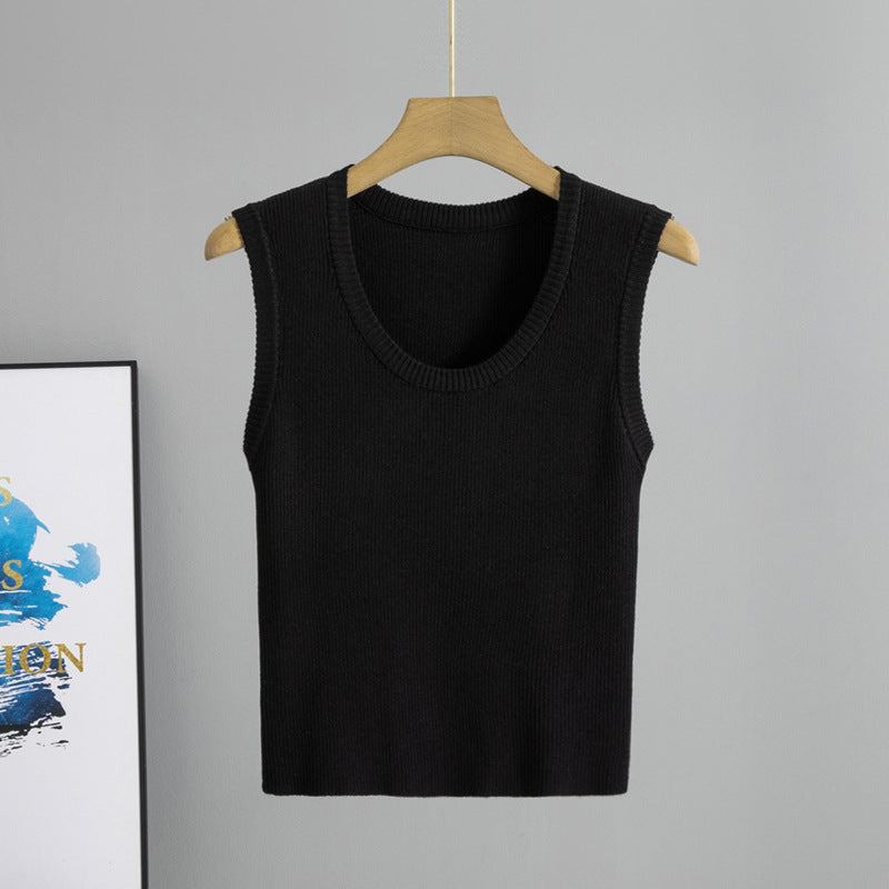 Summer Wild round Neck Vest Chic Strap Basic Stretch Slim Fit Knitted Top Sleeveless Base