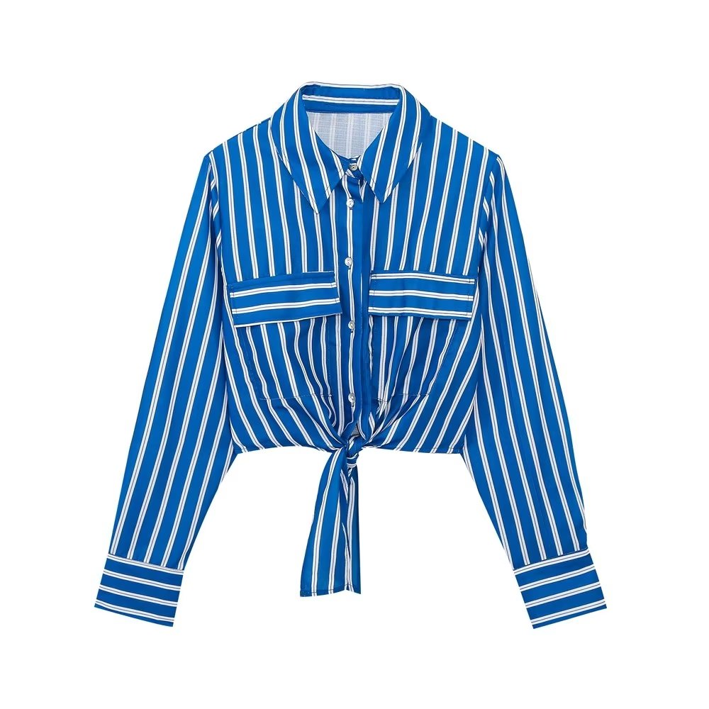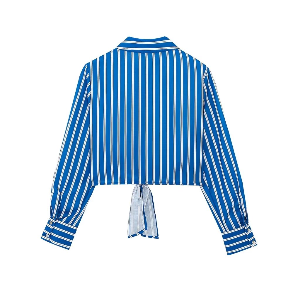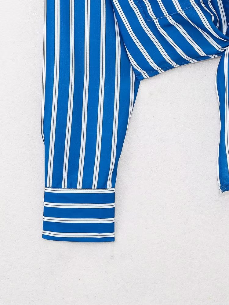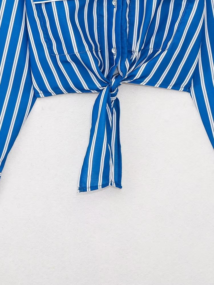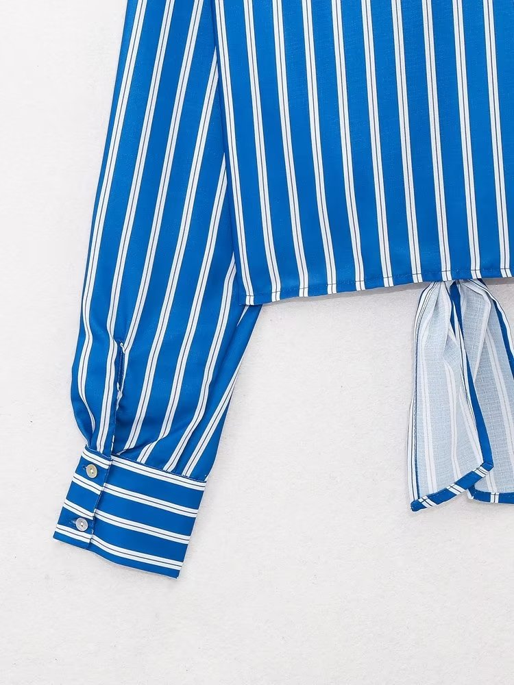 Summer Wind Women Long Sleeve Bow Tie Striped Shirt