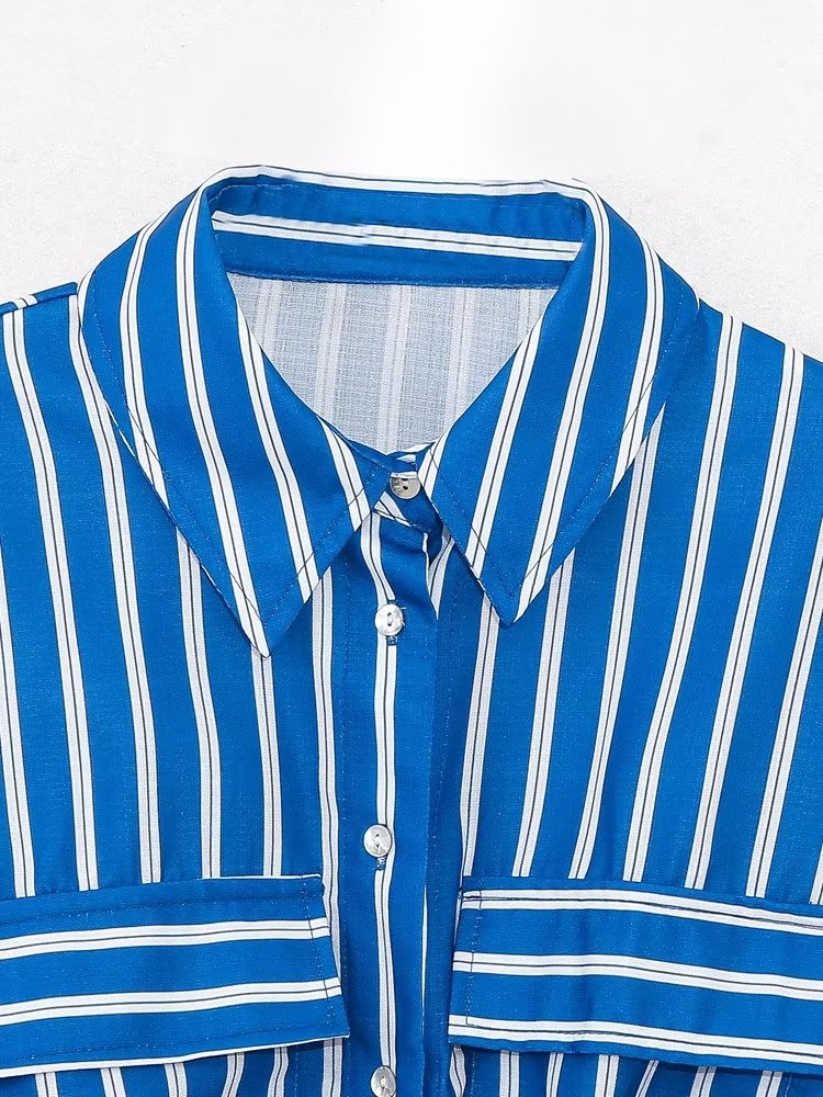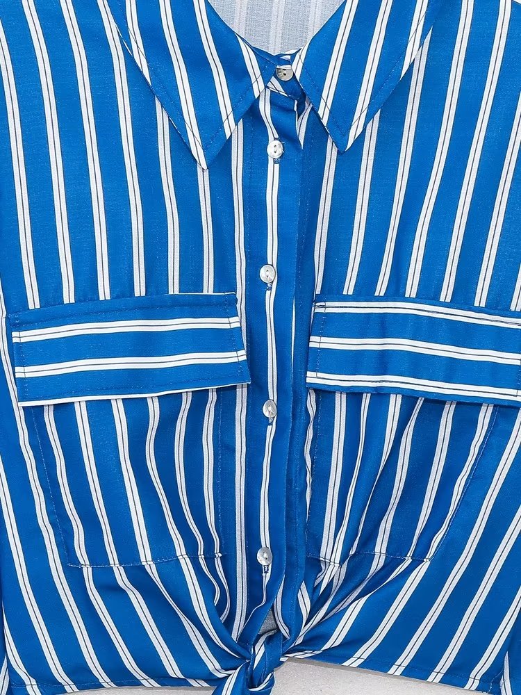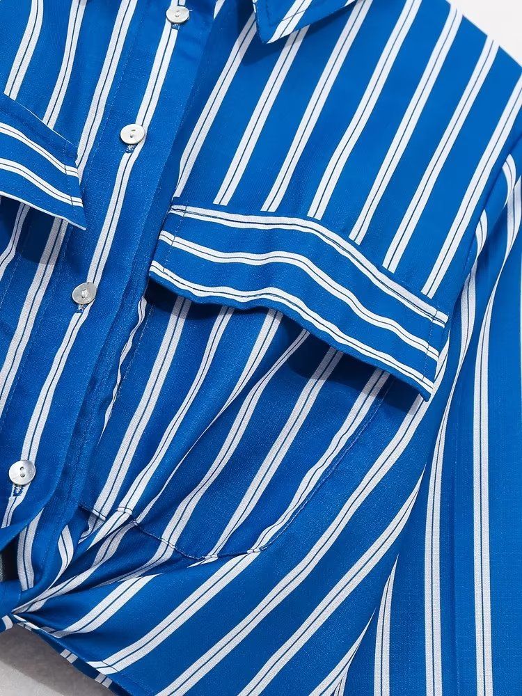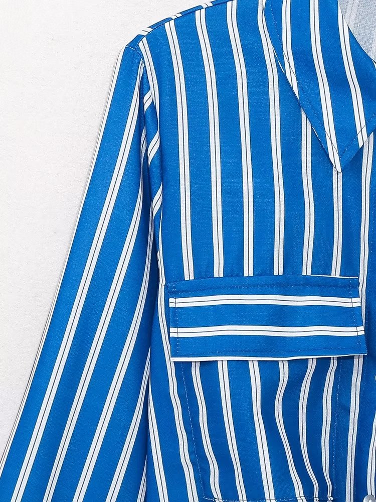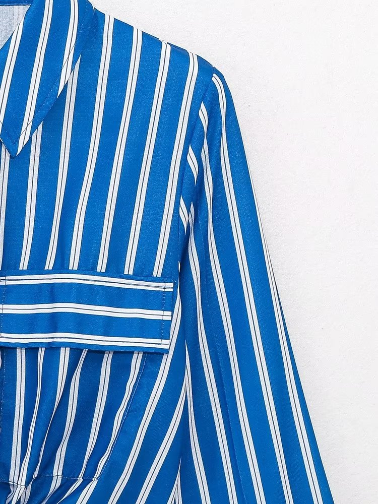Summer Wind Women Long Sleeve Bow Tie Striped Shirt
