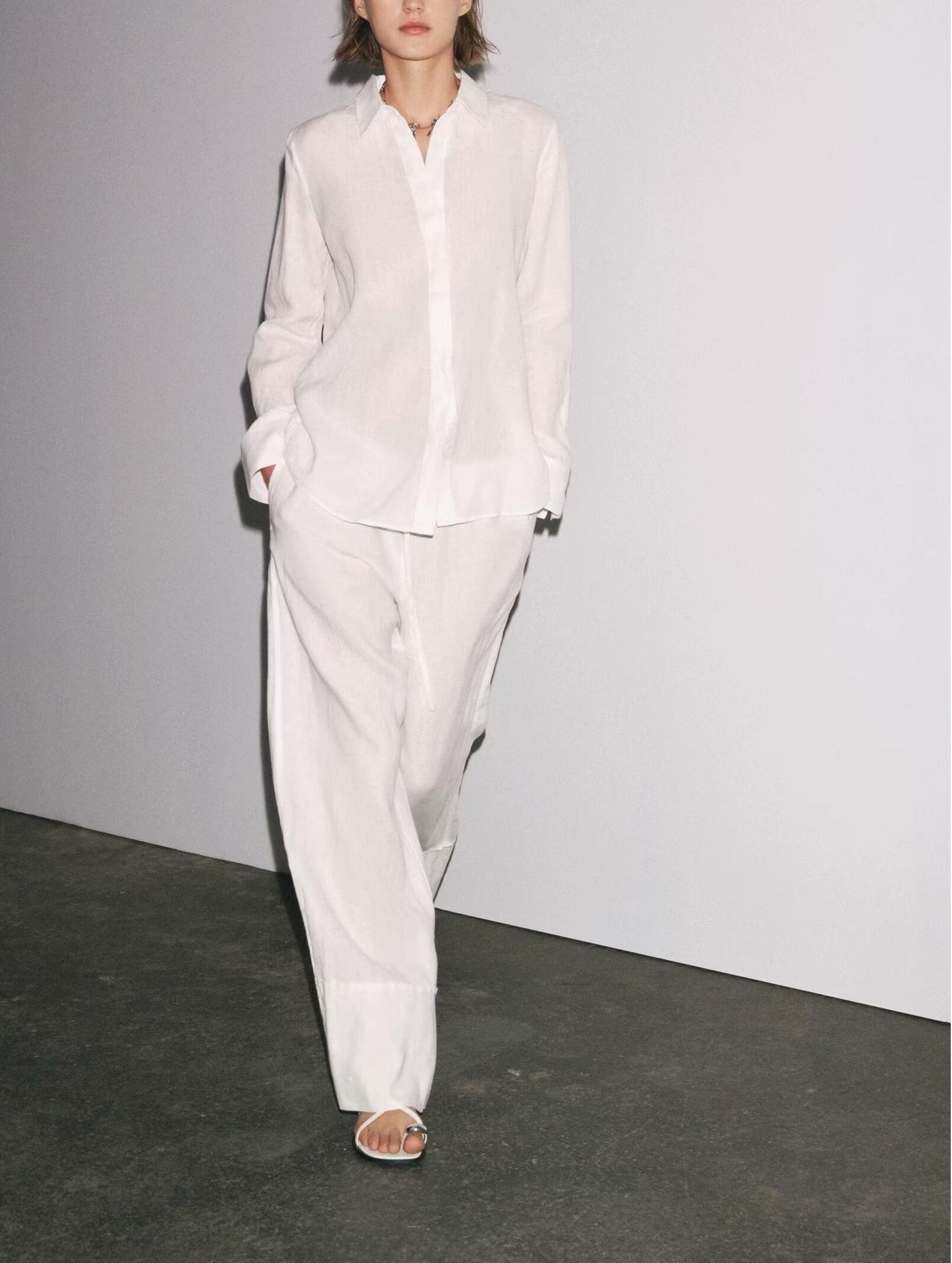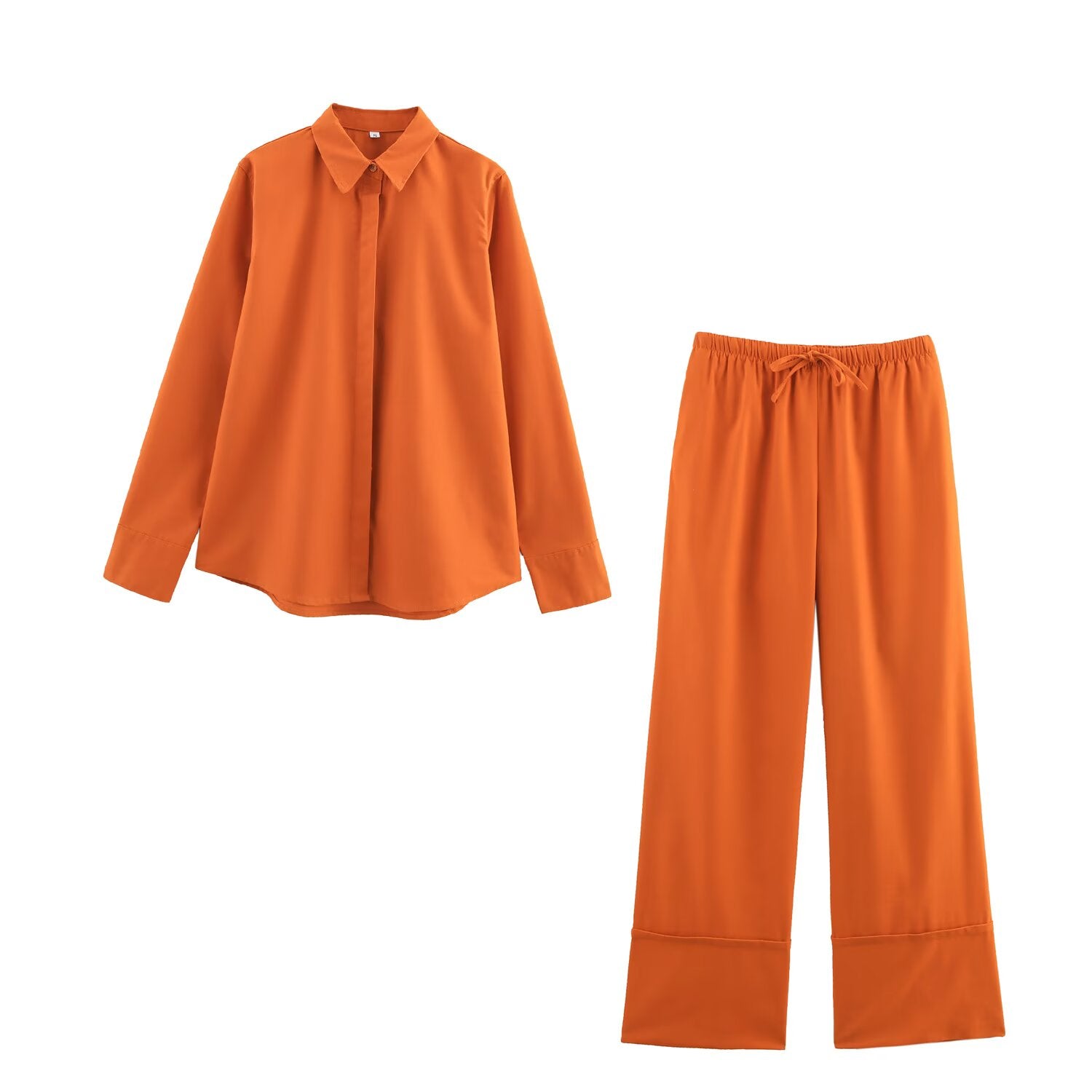 Summer Women Clothing Collared Single Breasted Long Sleeve Shirt Wide Leg Trousers Set Women