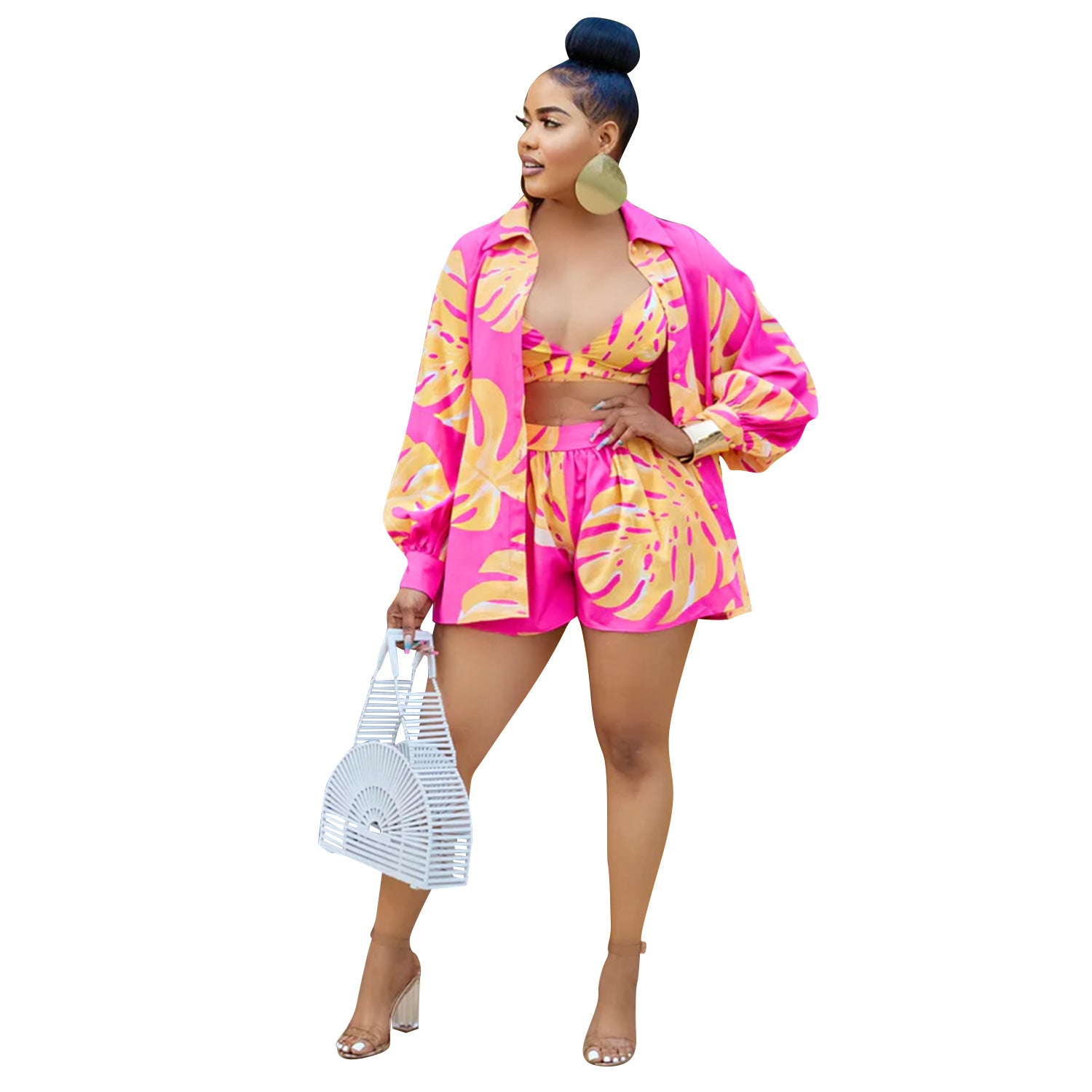 Summer Women Clothing Sexy Digital Printed Shirt Shorts Three Piece Set