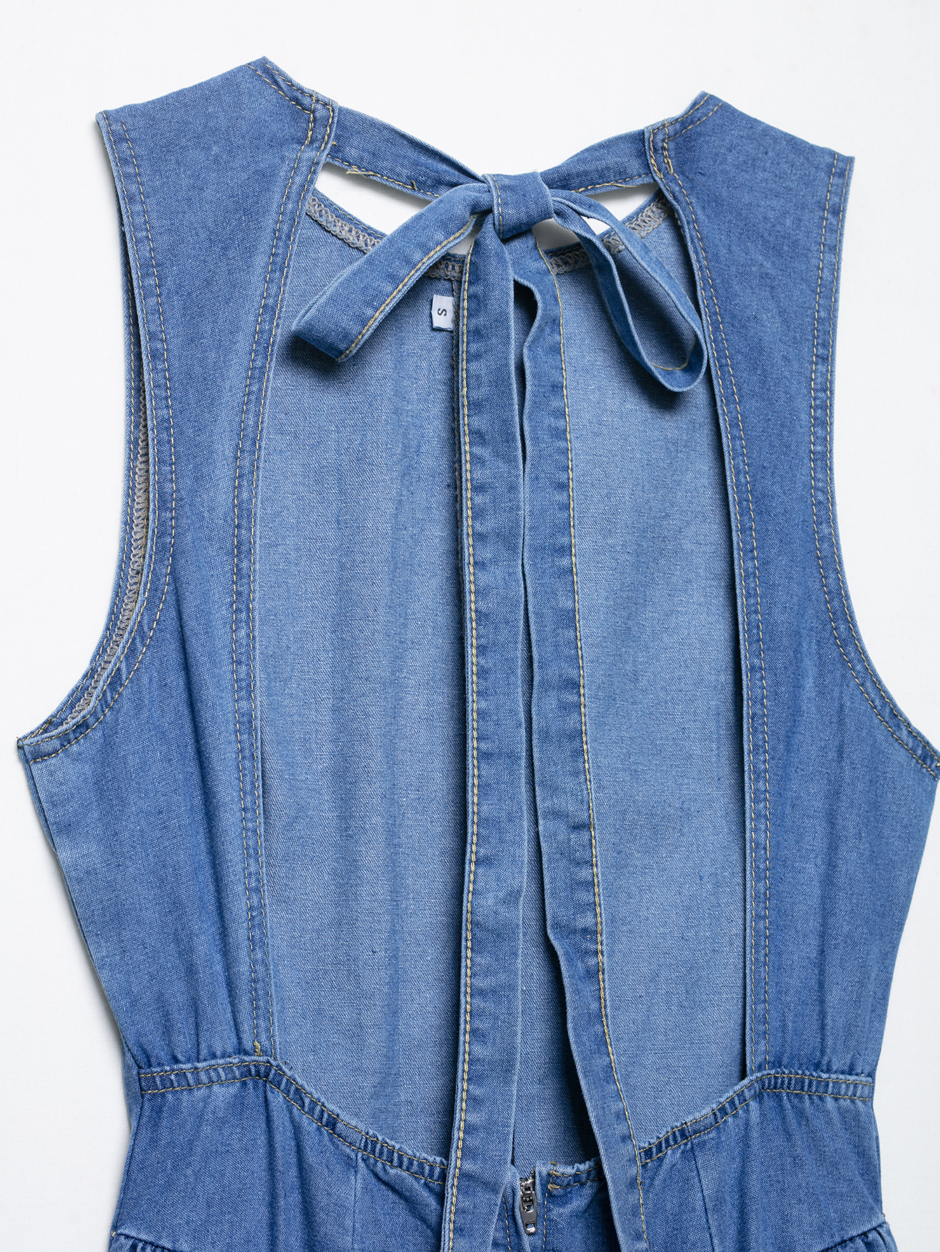 Summer Women Clothing Sexy Lacing High Waist Denim Dress Women