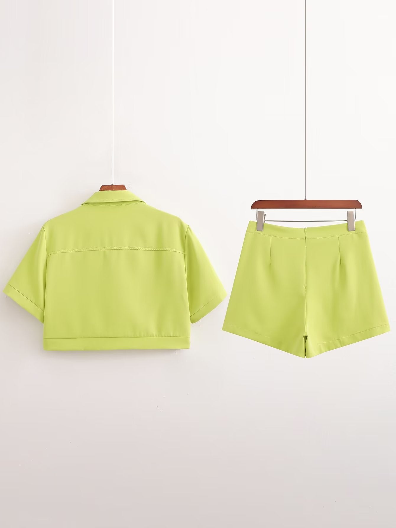 Summer Women Clothing Tuyere Pocket Decoration Shirt Short Coat High Waist Slimming All Matching Shorts