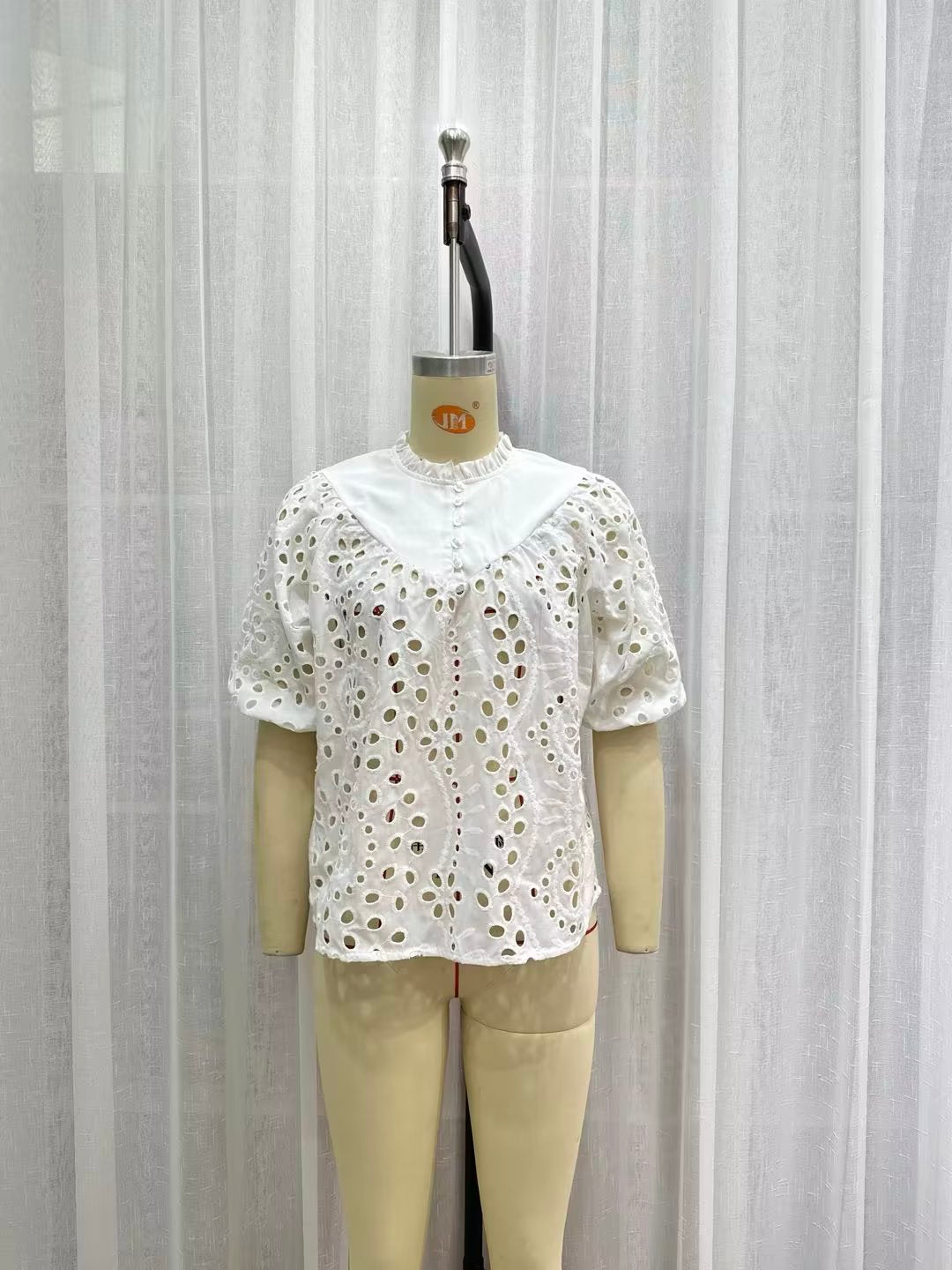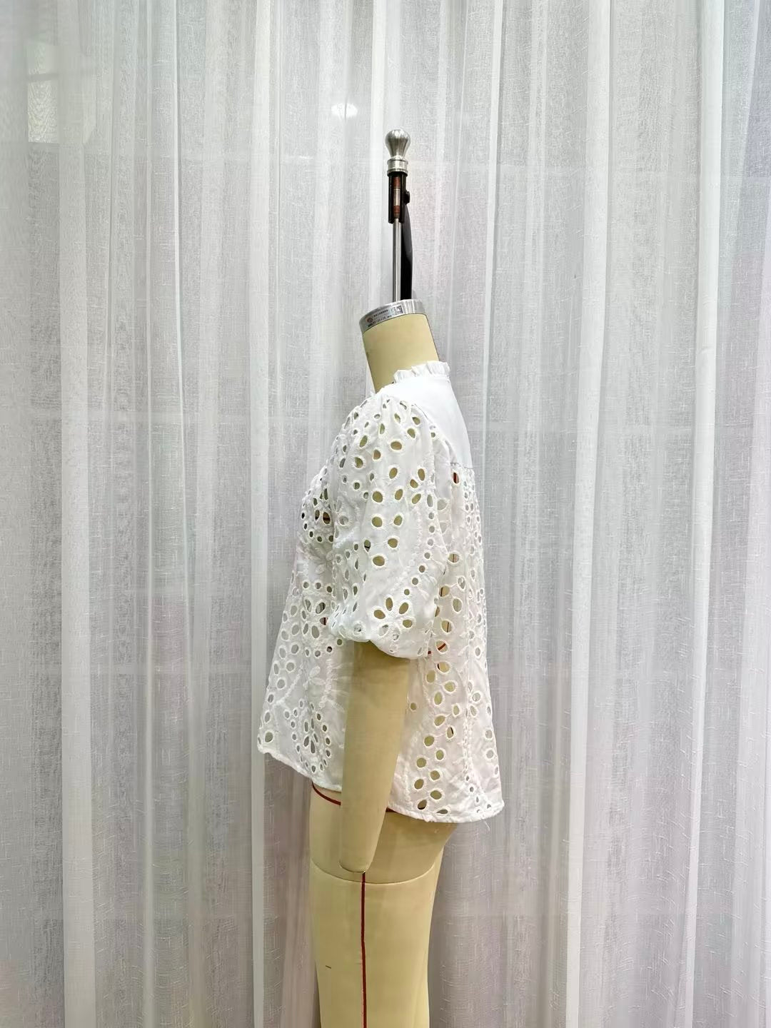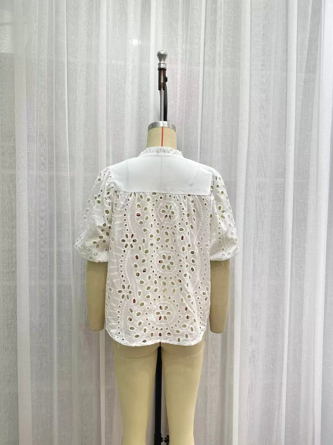 Summer Women Long Sleeve Hollow Out Cutout Embroidered White Shirt