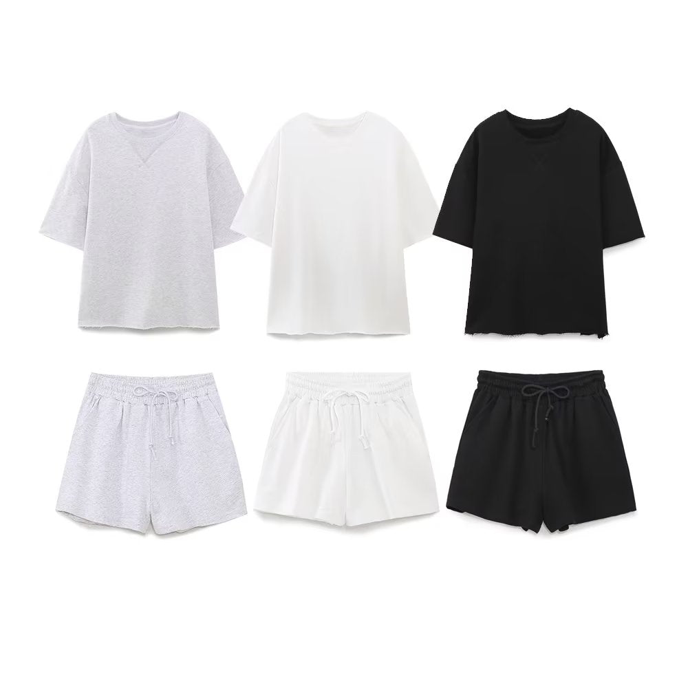 Summer Women Stretch High Waist Shorts Loose Cotton Short Sleeve T shirt
