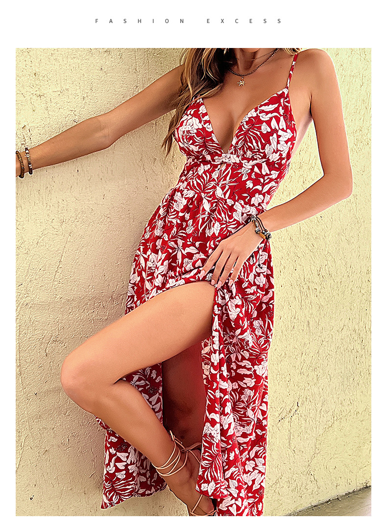 Summer Women Wear Red Slip Vacation Dress