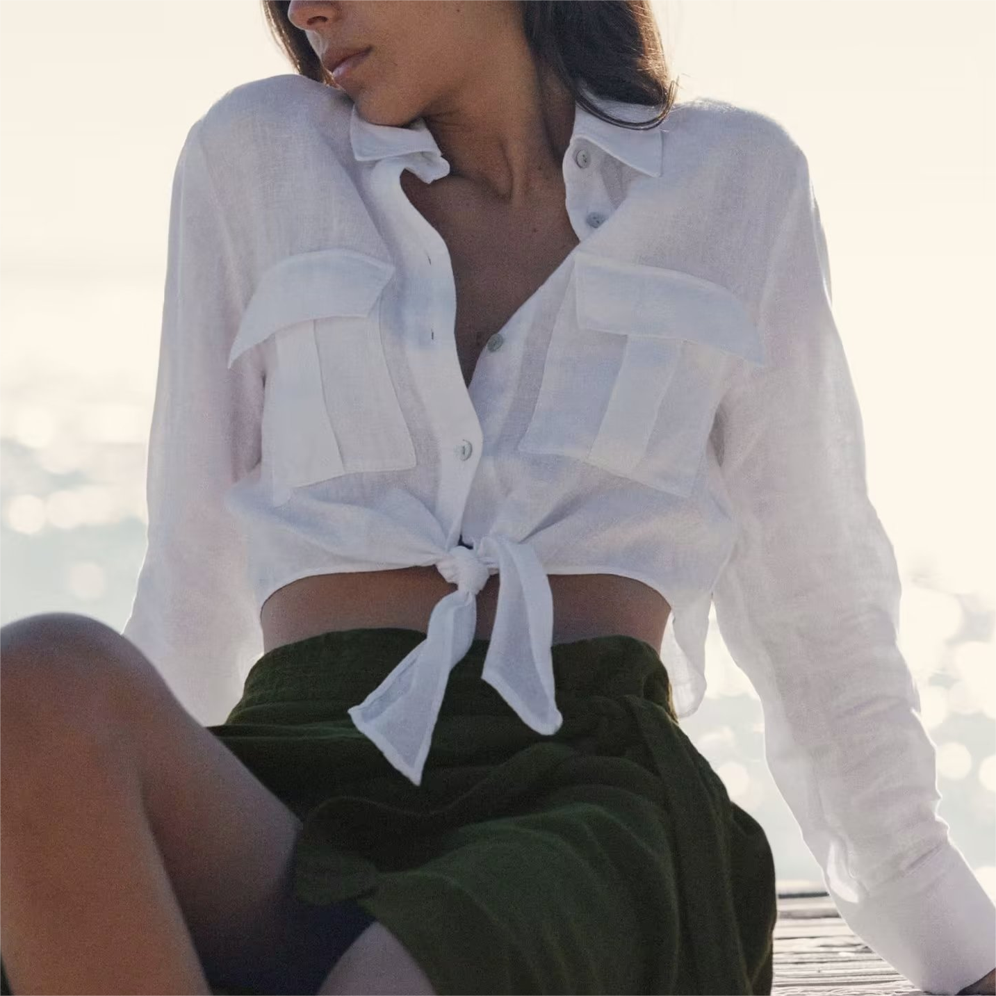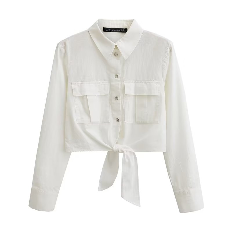 Summer Women White Long Sleeve Knot Shirt