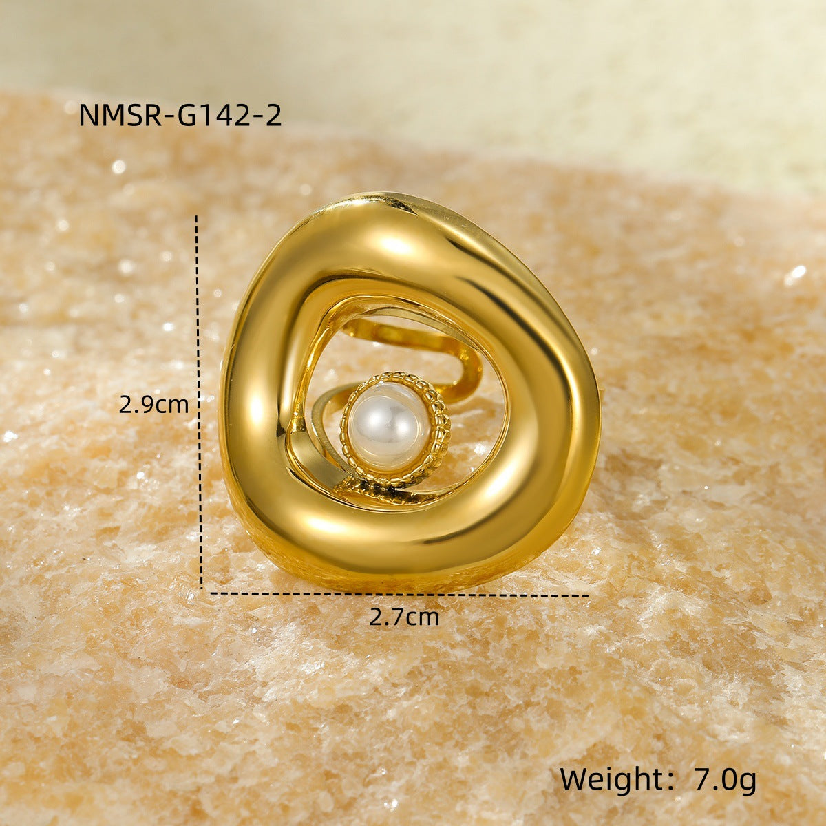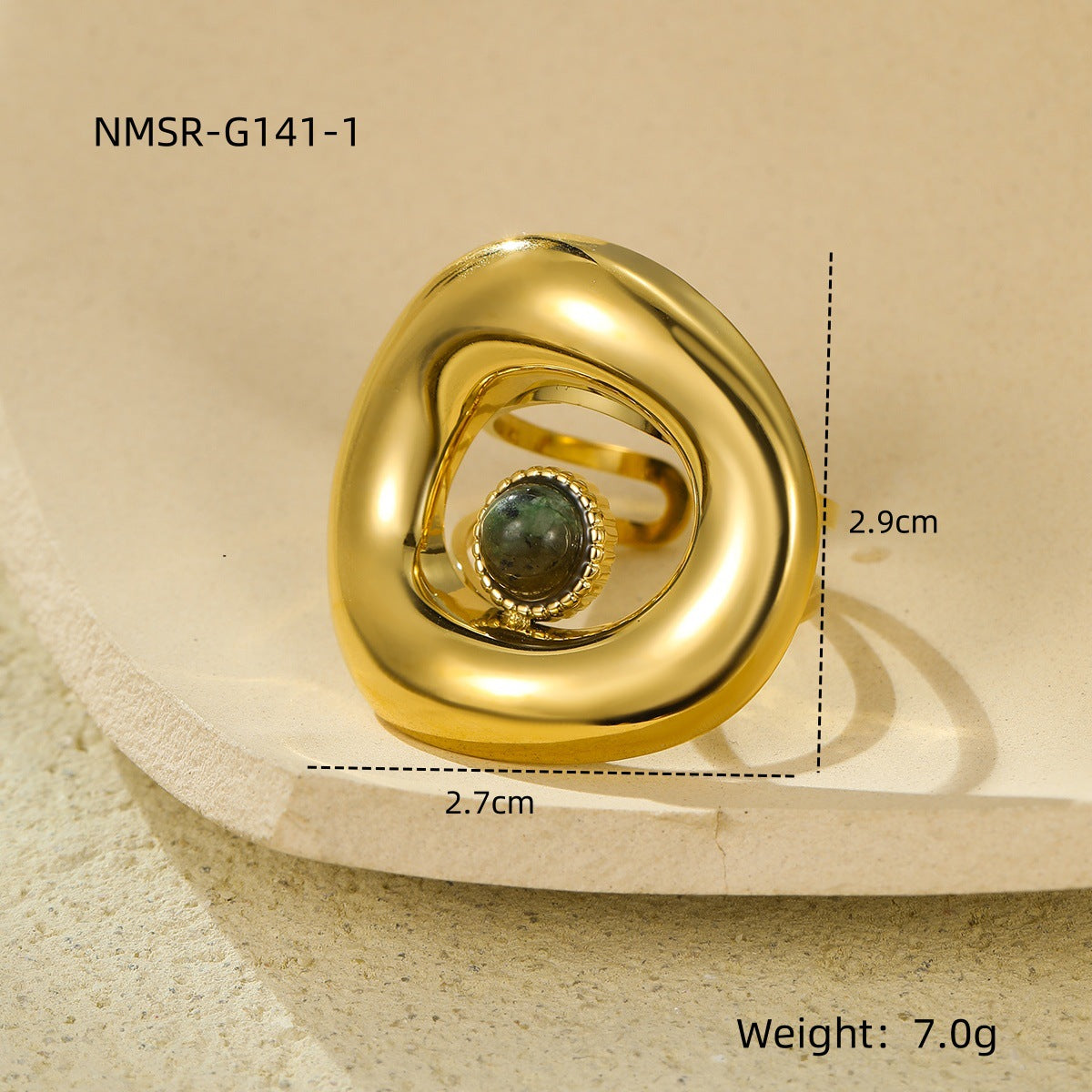 Titanium Steel 18K Gold Plating Geometric Abstract Inlaid Natural Stone Stainless Steel Ring