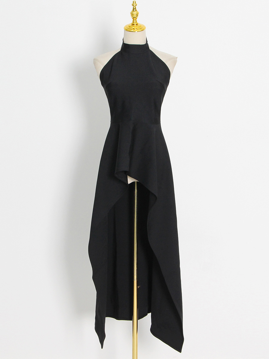 two piece set Autumn Round Neck Sleeveless Contrast Color Backless Irregularly Slimming Set