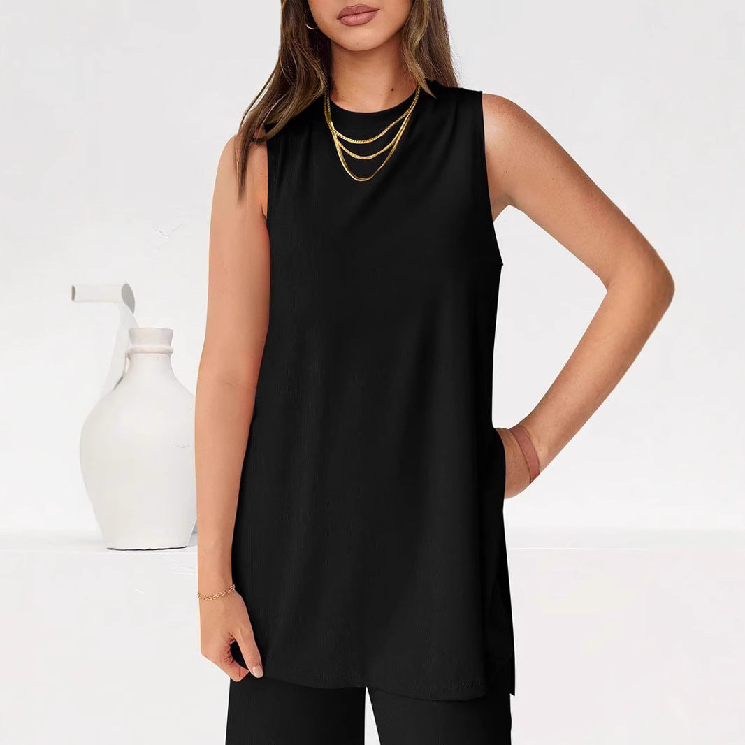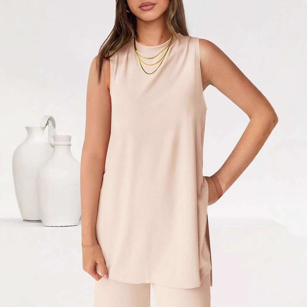Two Piece Set Casual Set Summer Casual Loose Vest Wide Leg Pants Matching Travel Set Sportswear