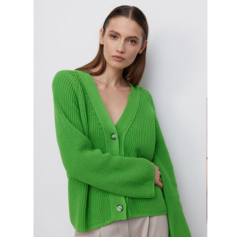 V neck Short Sweater Cardigan Autumn Winter Elegant Batwing Sleeve Button Solid Color Knitted Sweater