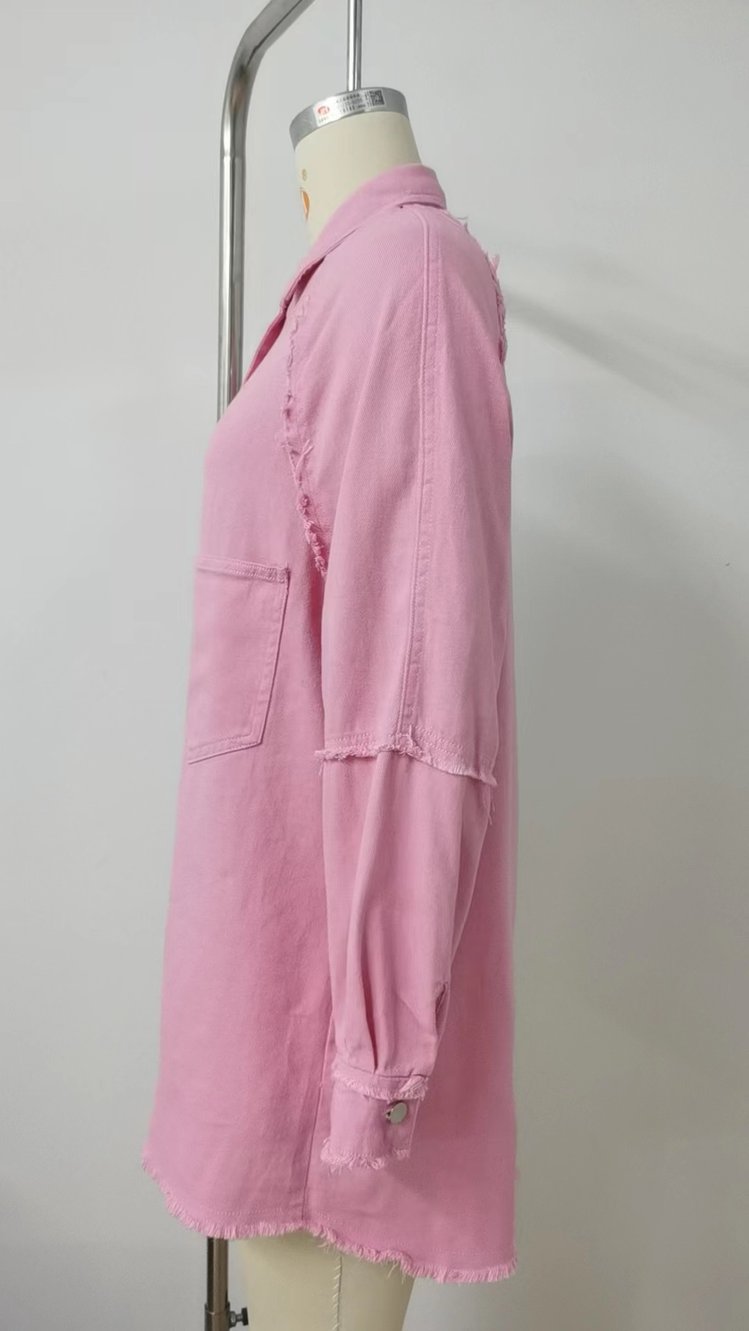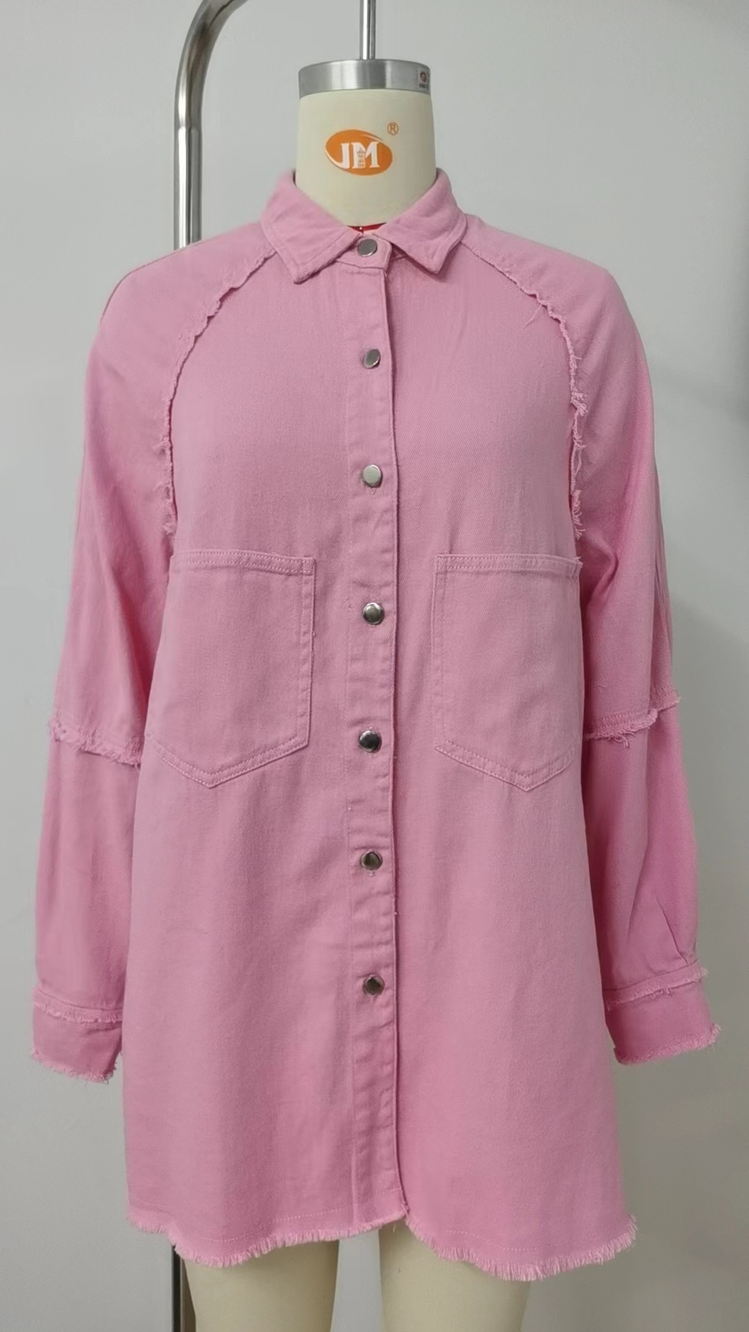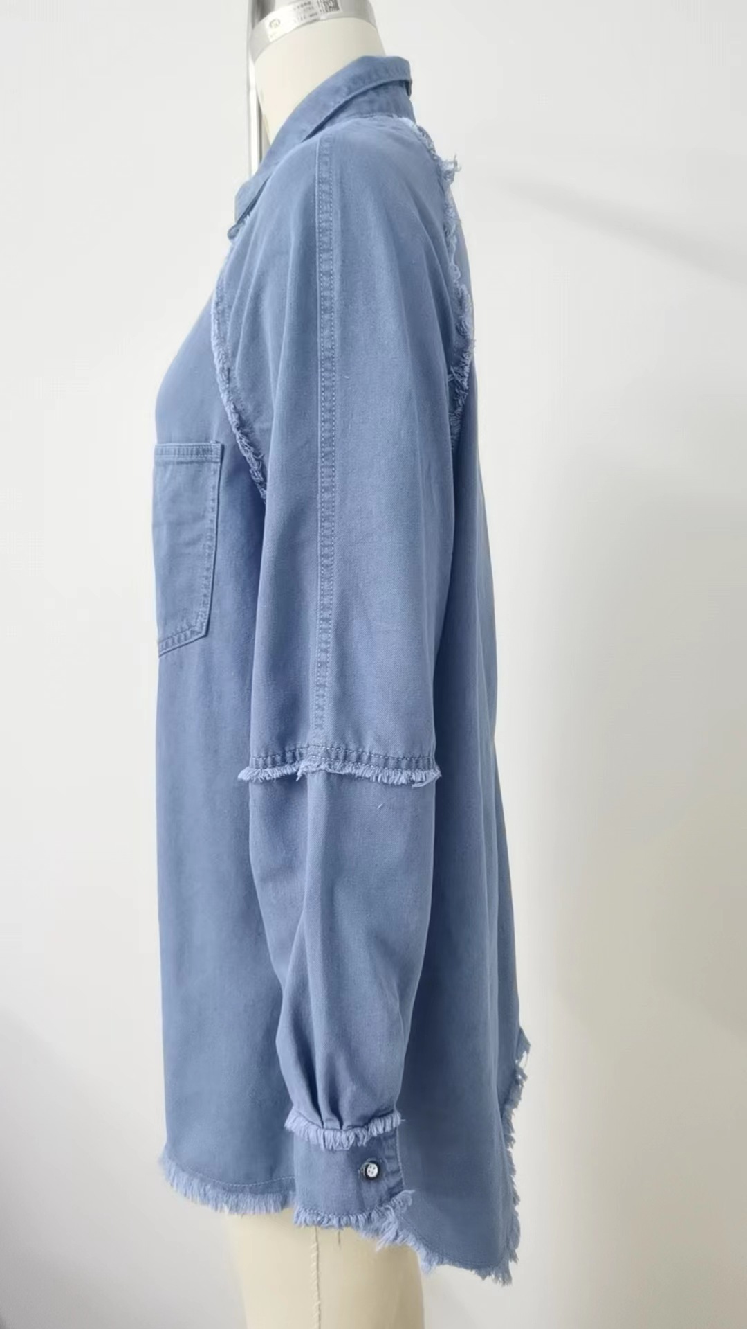 Wash Water Raw Edge Denim Dress Stitching Long Sleeve Cardigan for Women
