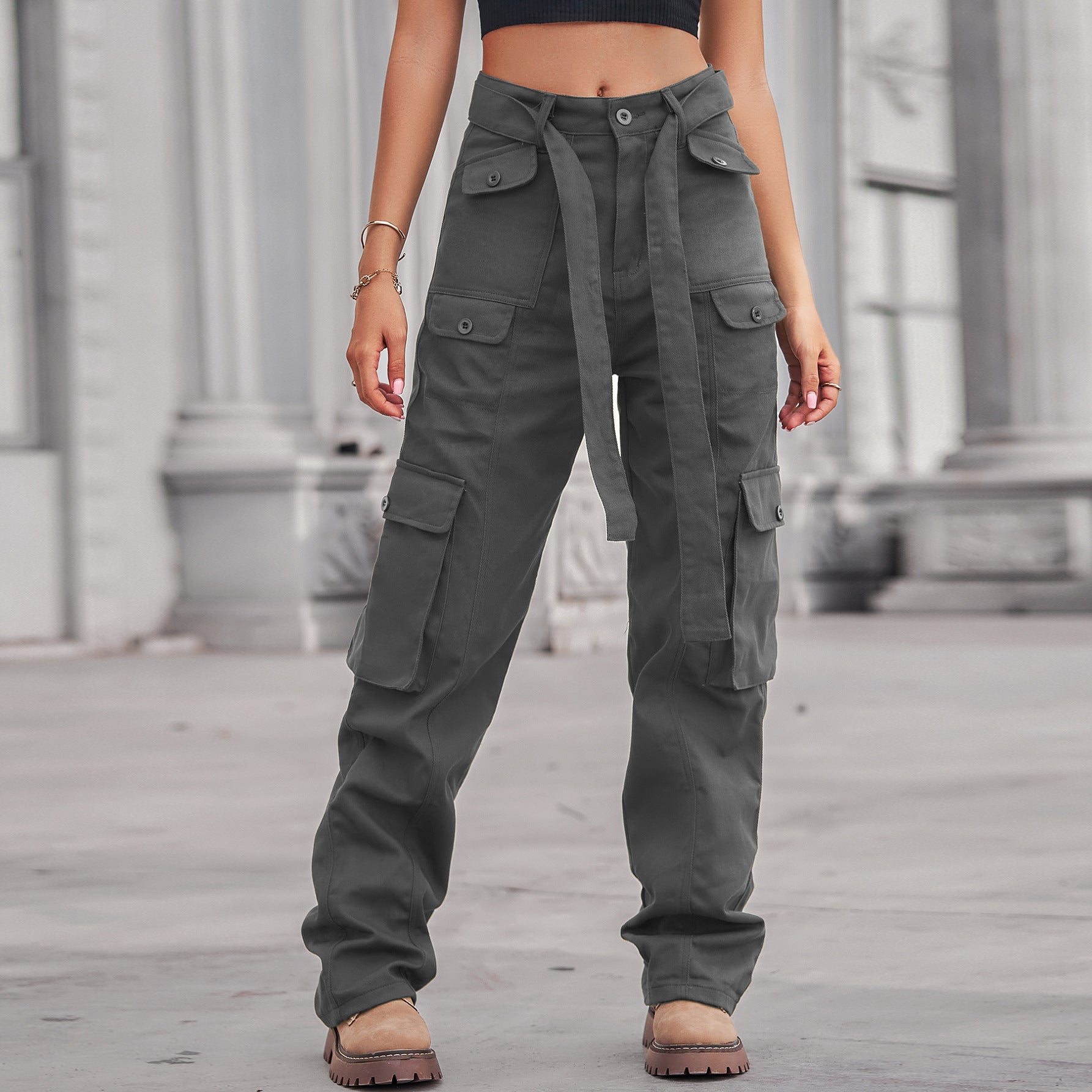 Washed Denim Multi-Pocket Heavy Industry Casual Working Pants Trousers