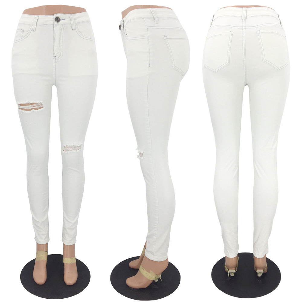Summer High Waist Water Washed Hole Casual Denim Trousers