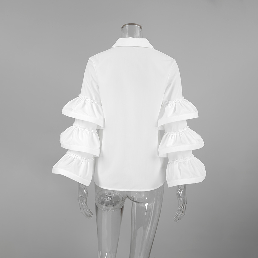 White Ruffled Long Sleeve Elegant Women Shirt Autumn