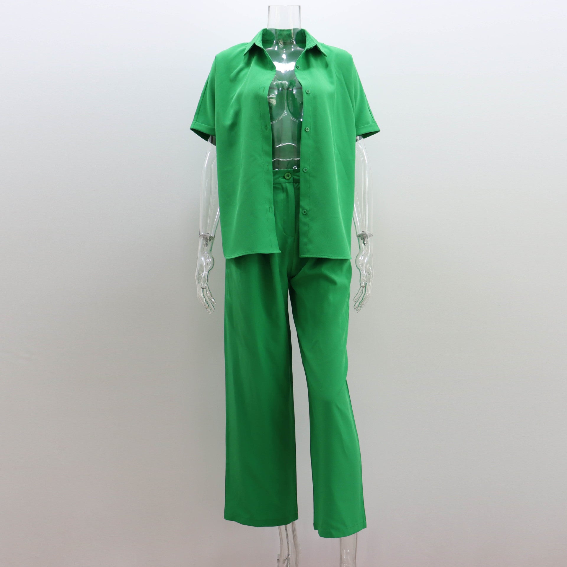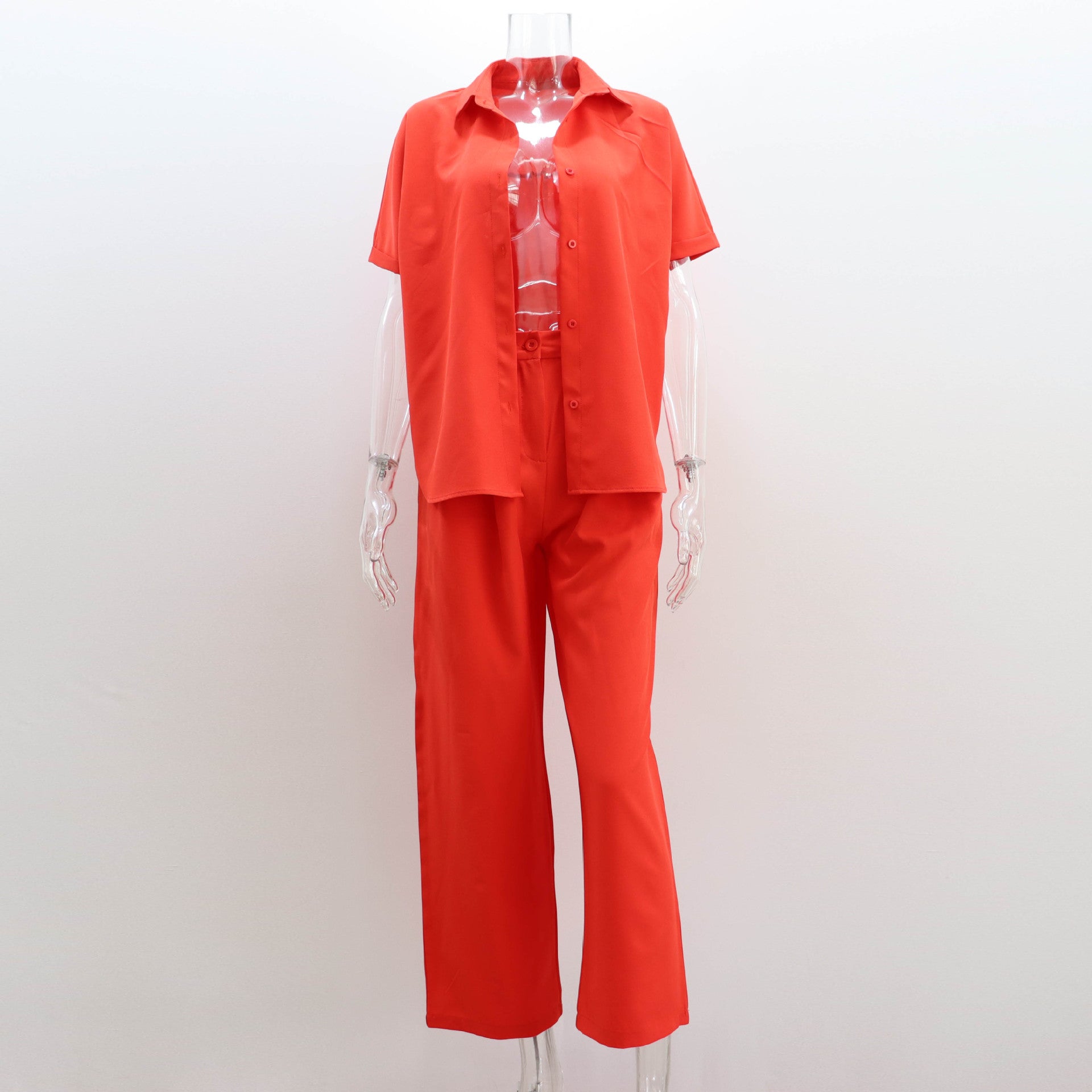Wide Leg Pants Suit Spring Summer Loose Sleeve Shirt Top Casual Trousers Two Piece Women Clothing