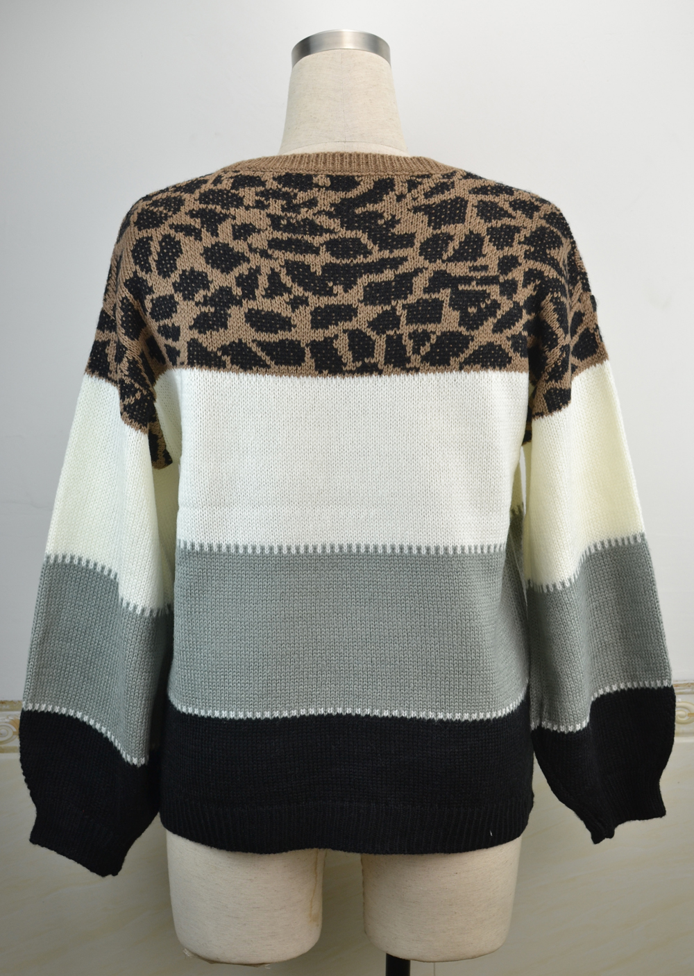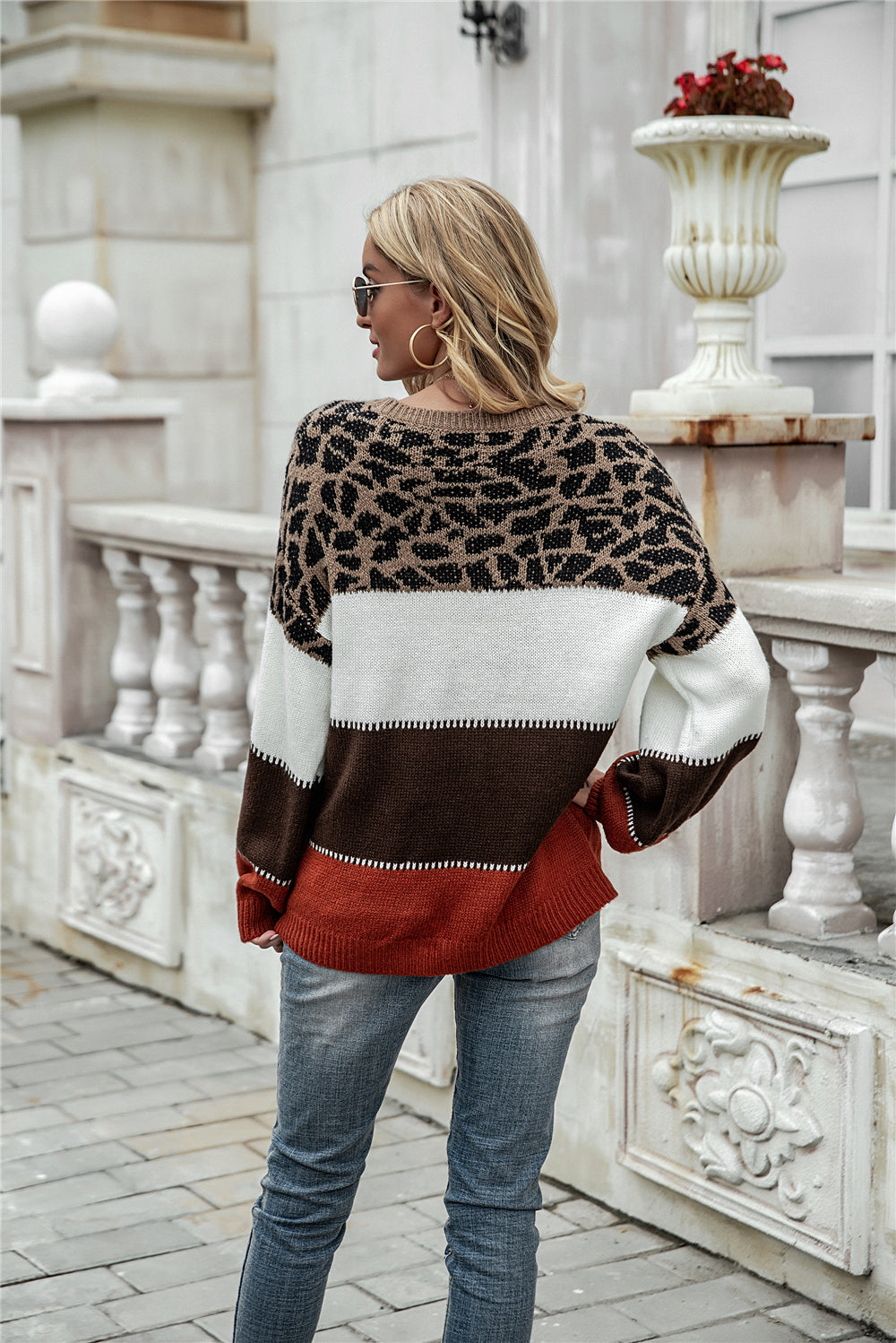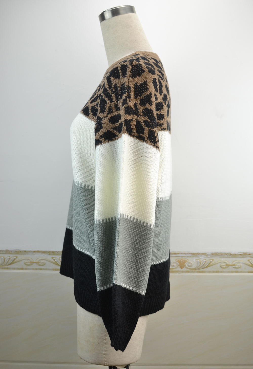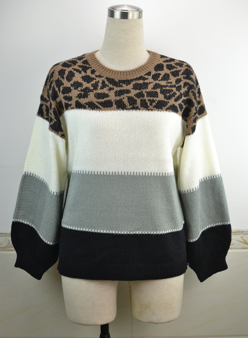 Winter Clothes Personality Sweater Women Color Block Crew Neck plus Size Pullover Loose Knit Sweater Thick