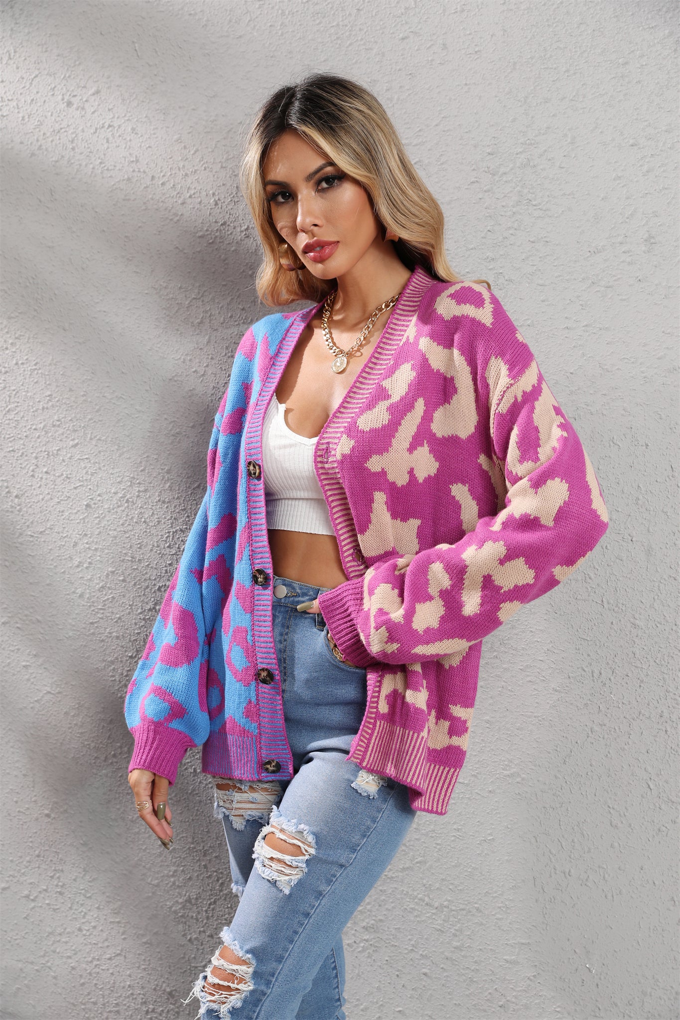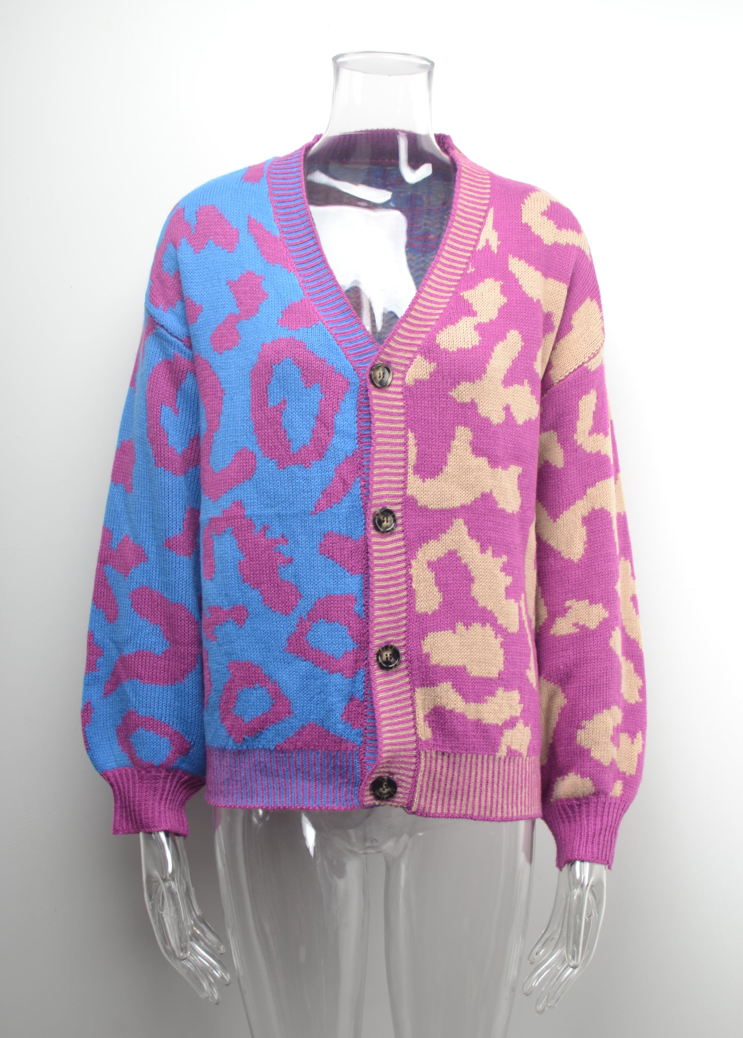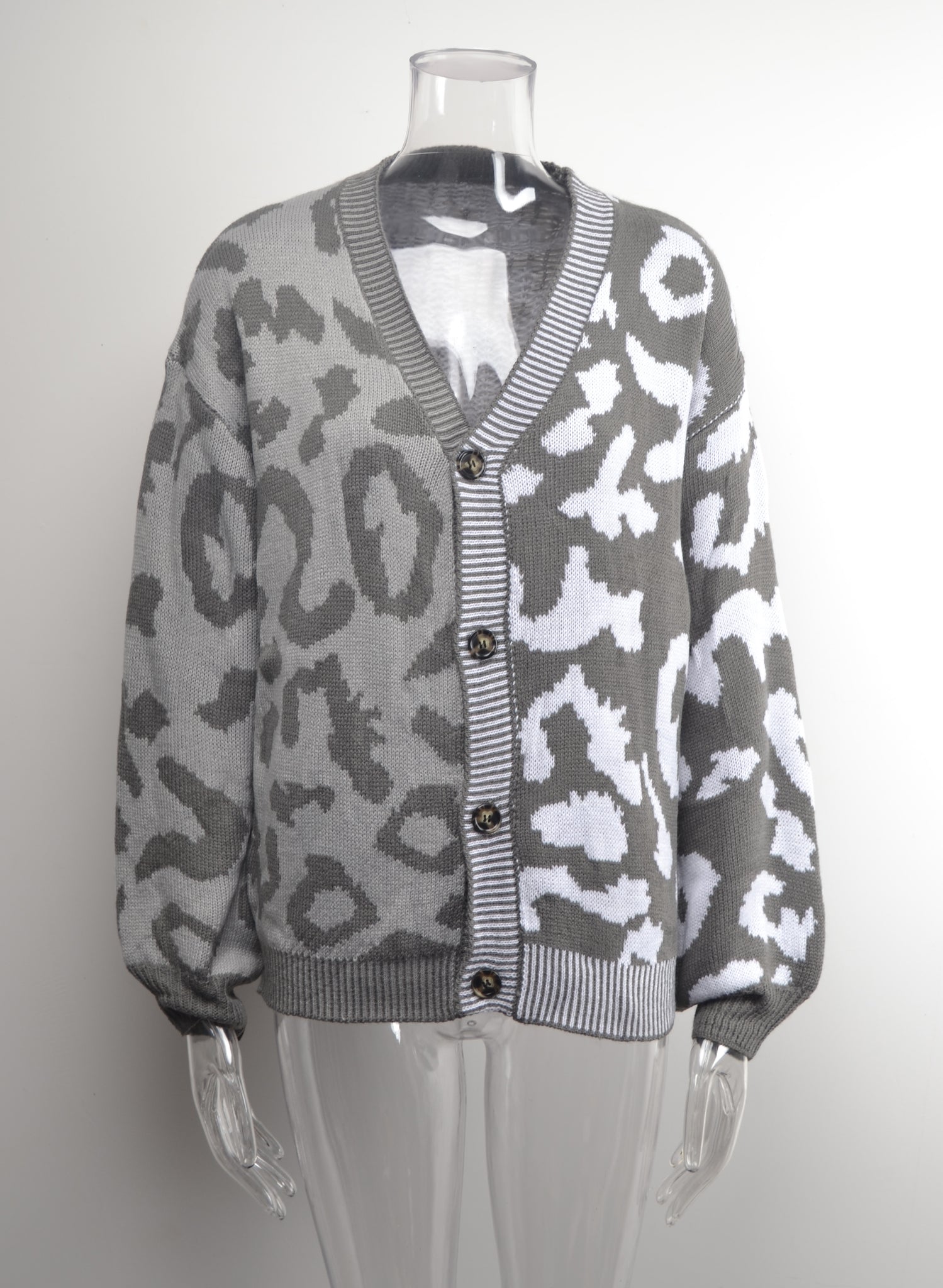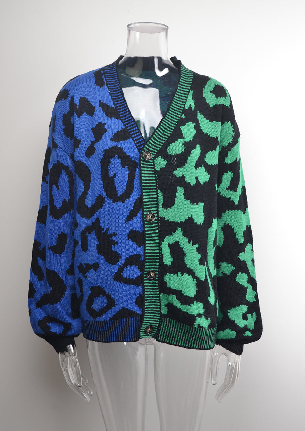 Winter Popular Sweater Leopard Splicing plus Size Cardigan Button Knitwear Sweater